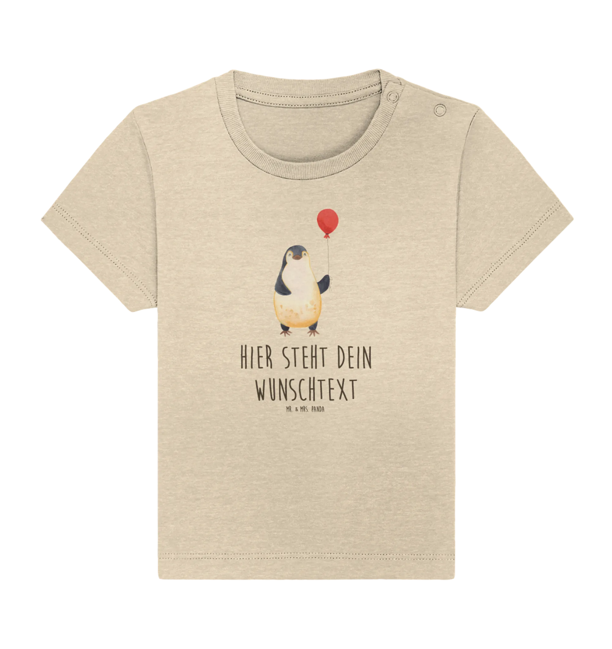 Das personalisierte Baby T-Shirt mit dem süßen Pinguin Luftballon ist der perfekte Begleiter für dein kleines Glück. Aus hochwertiger, weicher Öko-Baumwolle gefertigt, bietet es nicht nur höchsten Tragekomfort, sondern auch einen Hauch von Lebensfreude, denn das fröhliche Motiv ist handgezeichnet von Mr. & Mrs. Panda.