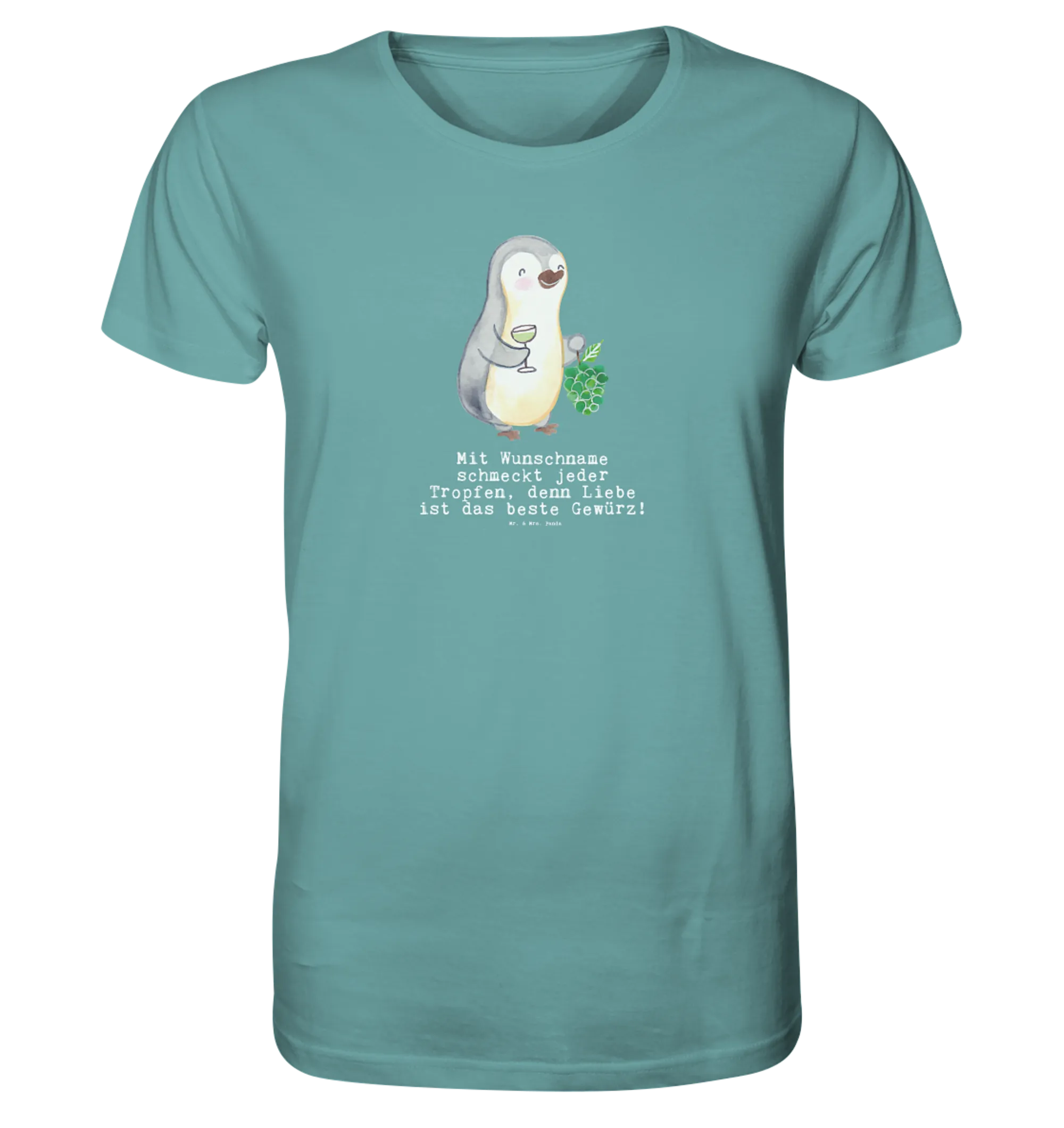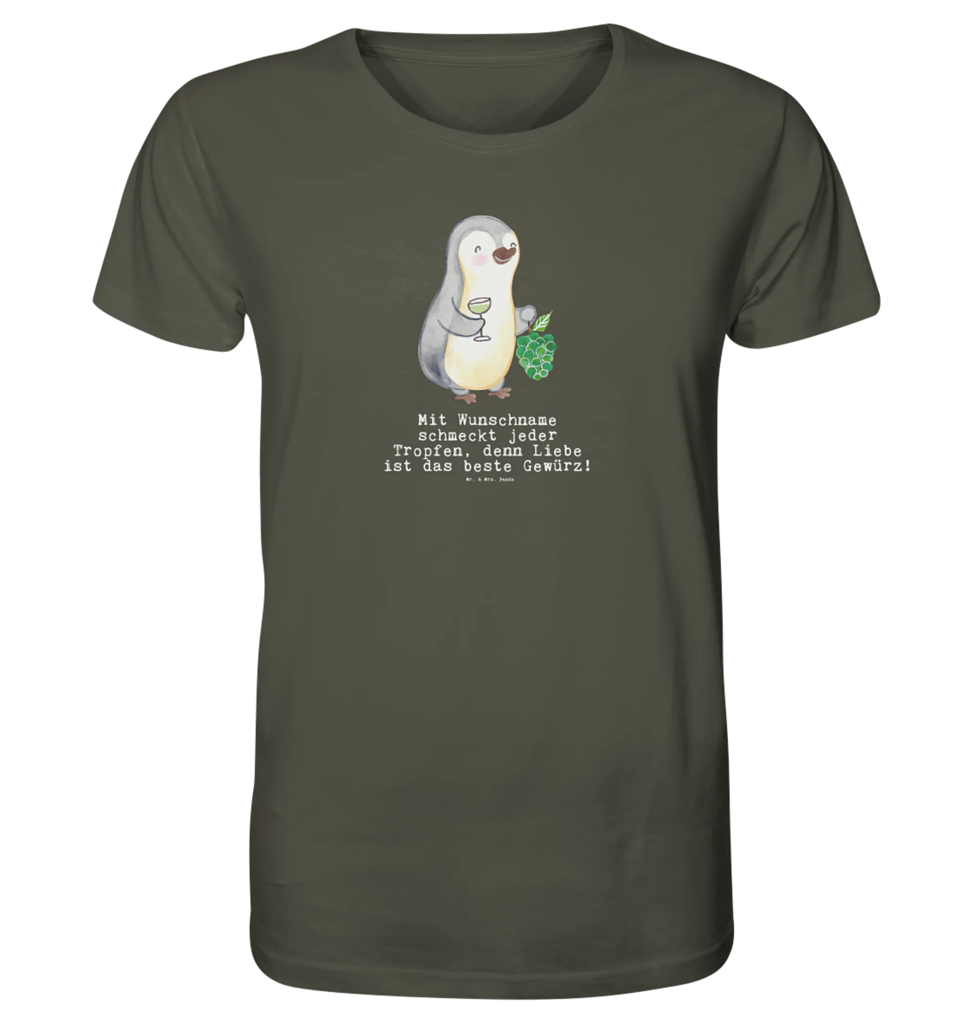 Unser personalisiertes Shirt Herren mit dem einzigartigen Motiv 'Sommelier mit Herz' ist nicht nur ein modisches Statement, sondern auch eine liebevolle Hommage an das Weinhandwerk. Das süße Design zeigt einen Pinguin, der in der einen Hand Weintrauben hält und in der anderen ein gefülltes Weinglas, und wird garantiert jedes Herz höher schlagen lassen.