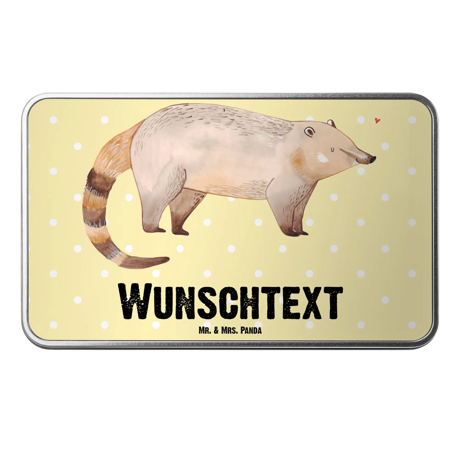 Spersonalizowana metalowa puszka Koati Motywy zwierzęce, dobra energia, zabawne powiedzonka, zwierzęta