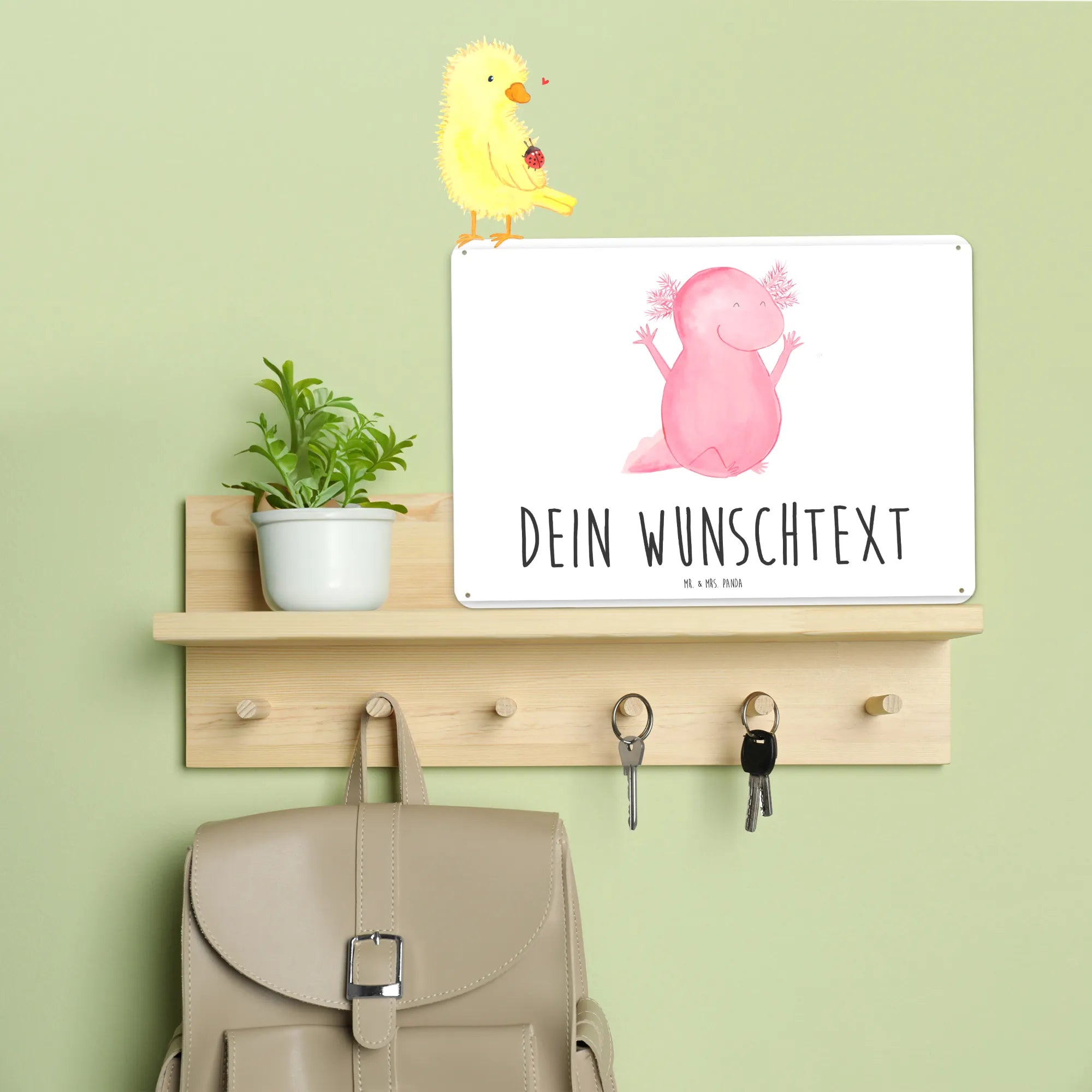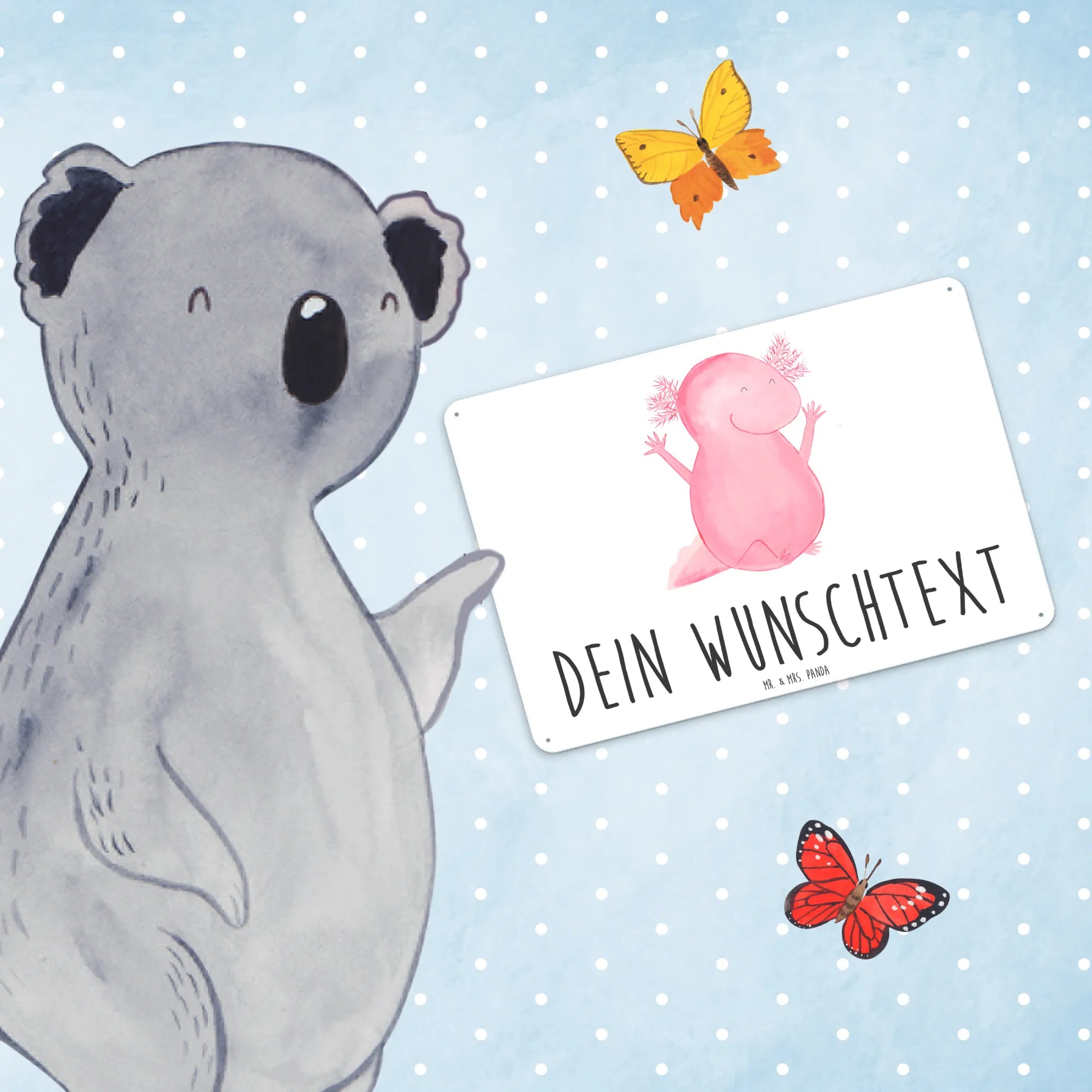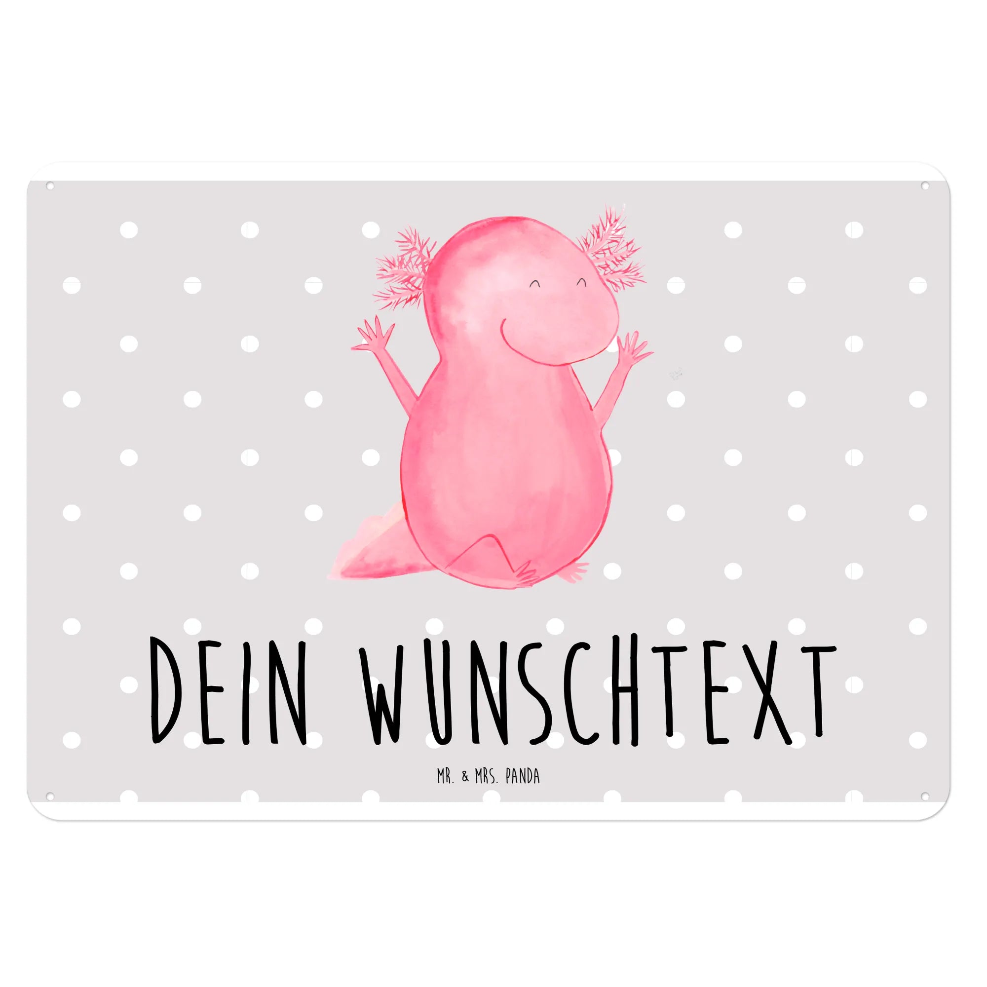 Spersonalizowana tabliczka z blachy Axolotl Hurra - DIN A6 - Pastelowy szary
