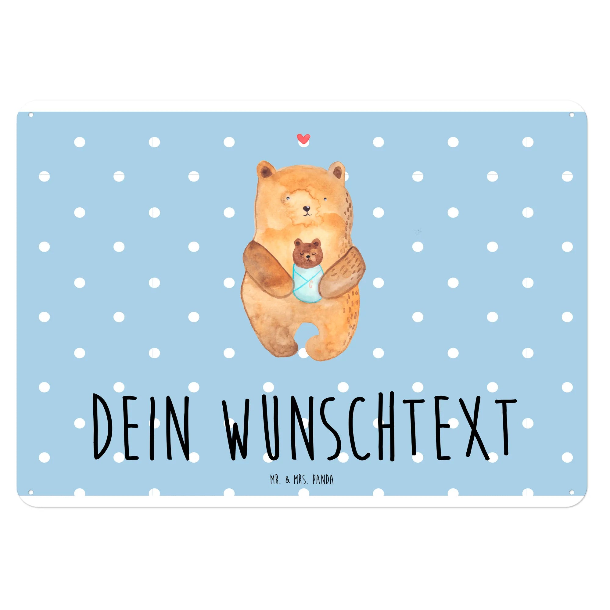 Spersonalizowana tabliczka z blachy Niedźwiedź Niemowlę - DIN A6 - biały