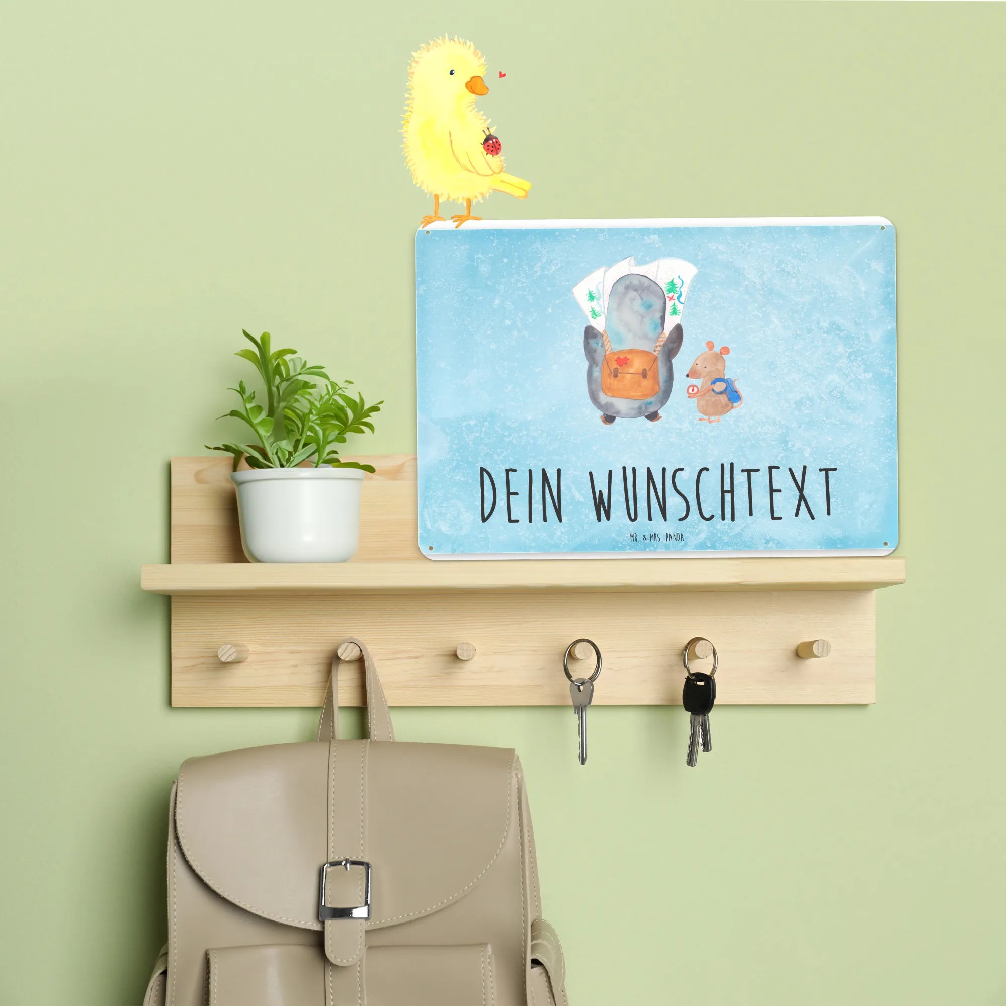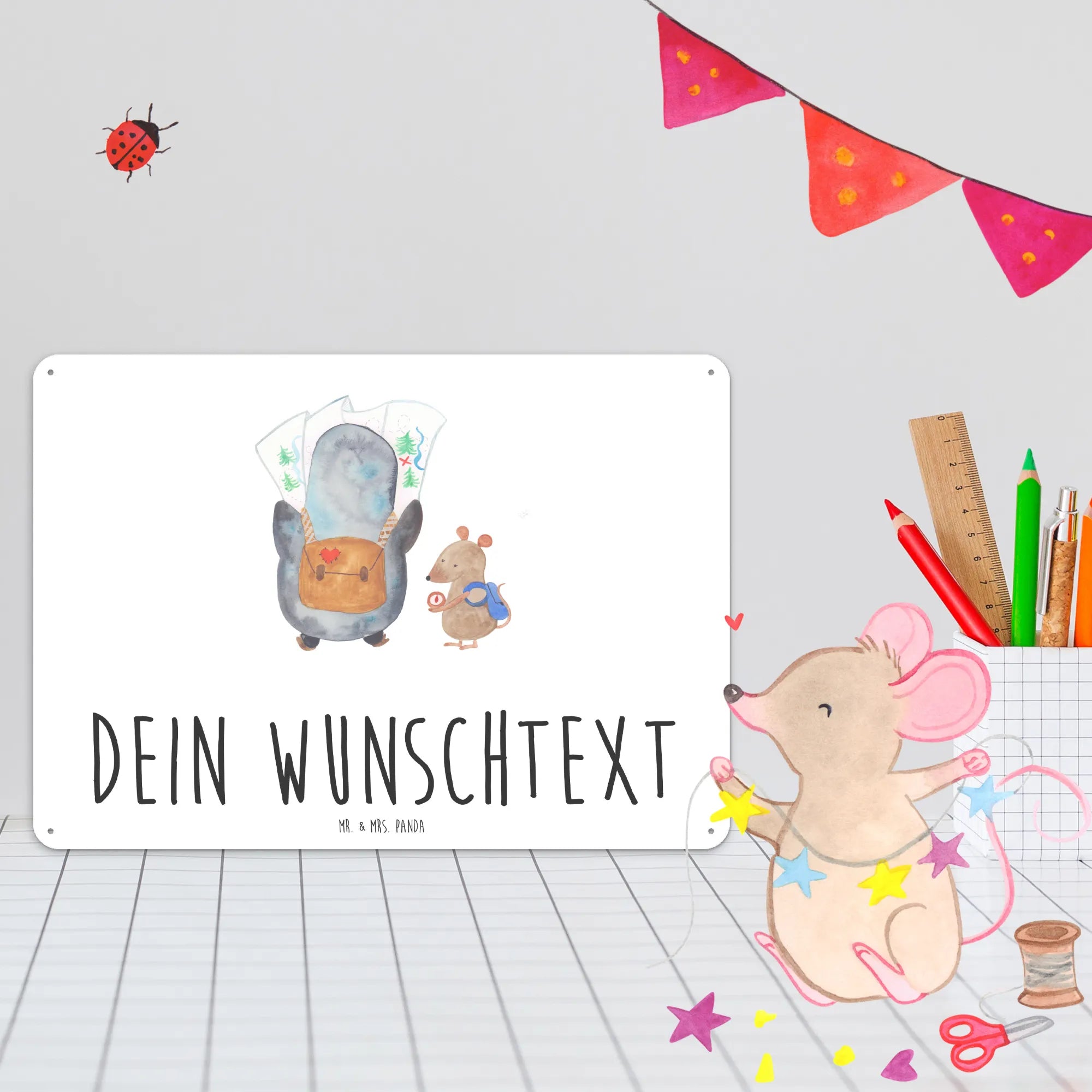 Spersonalizowana tabliczka z blachy Pingwin i Mysz Wędrowcy - DIN A6 - biały