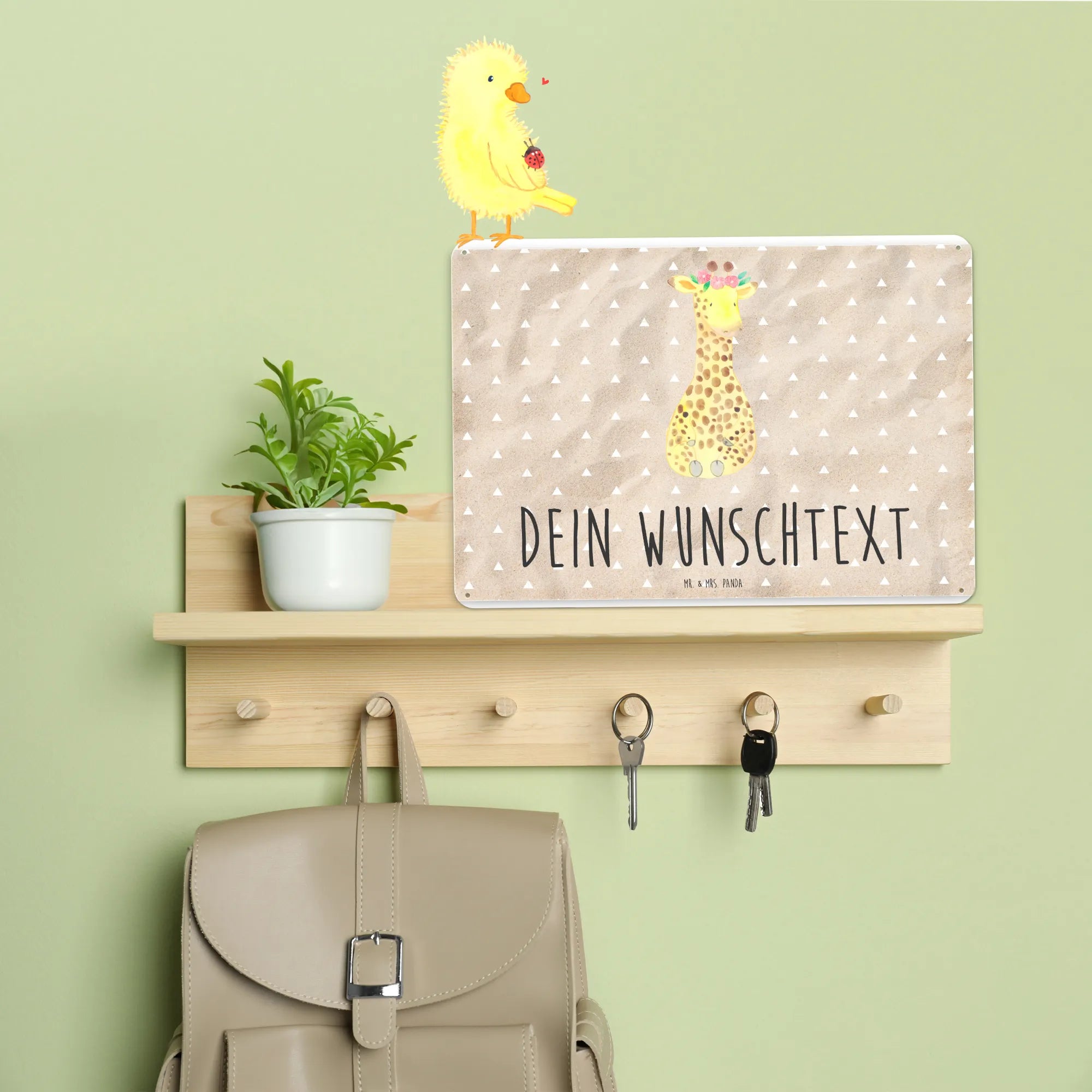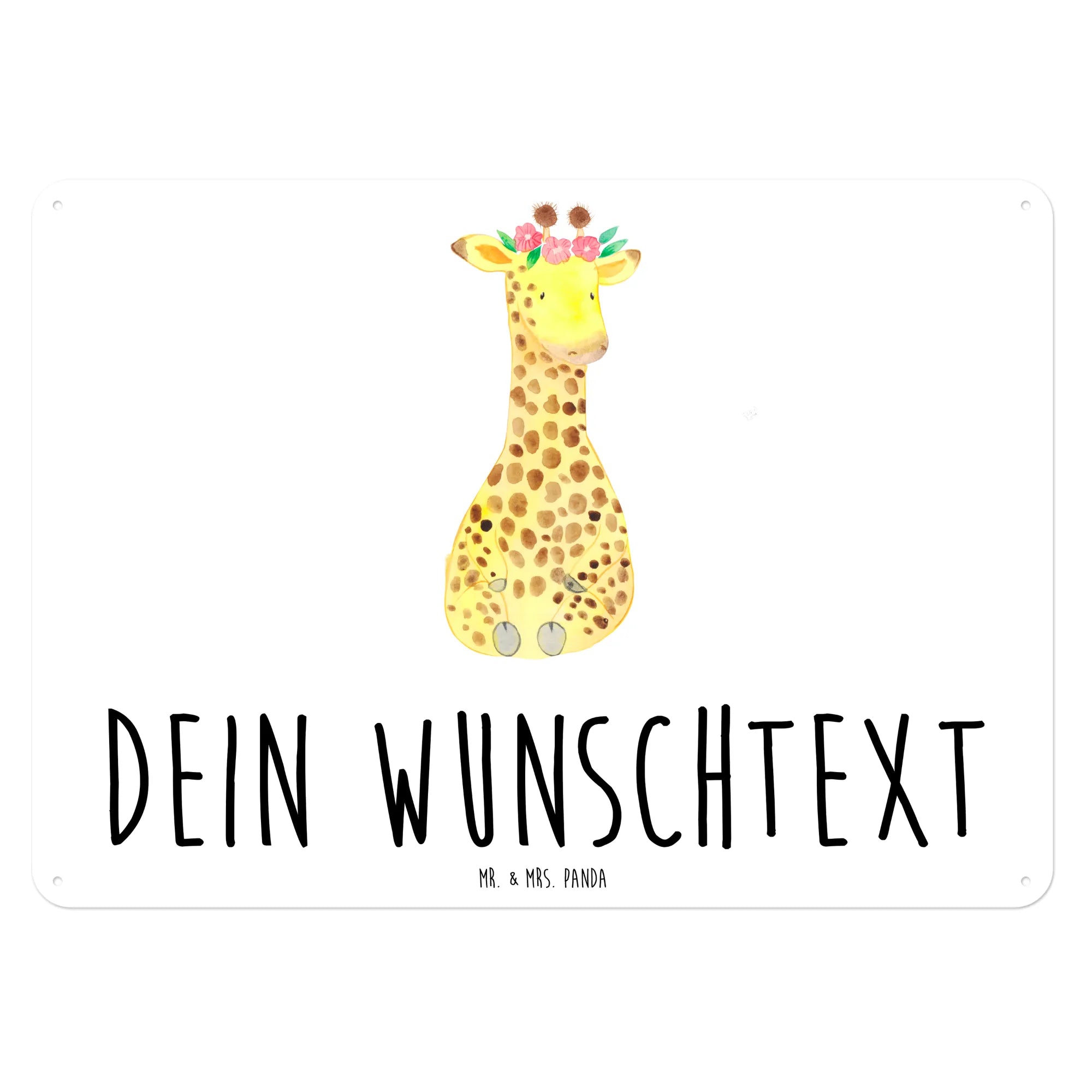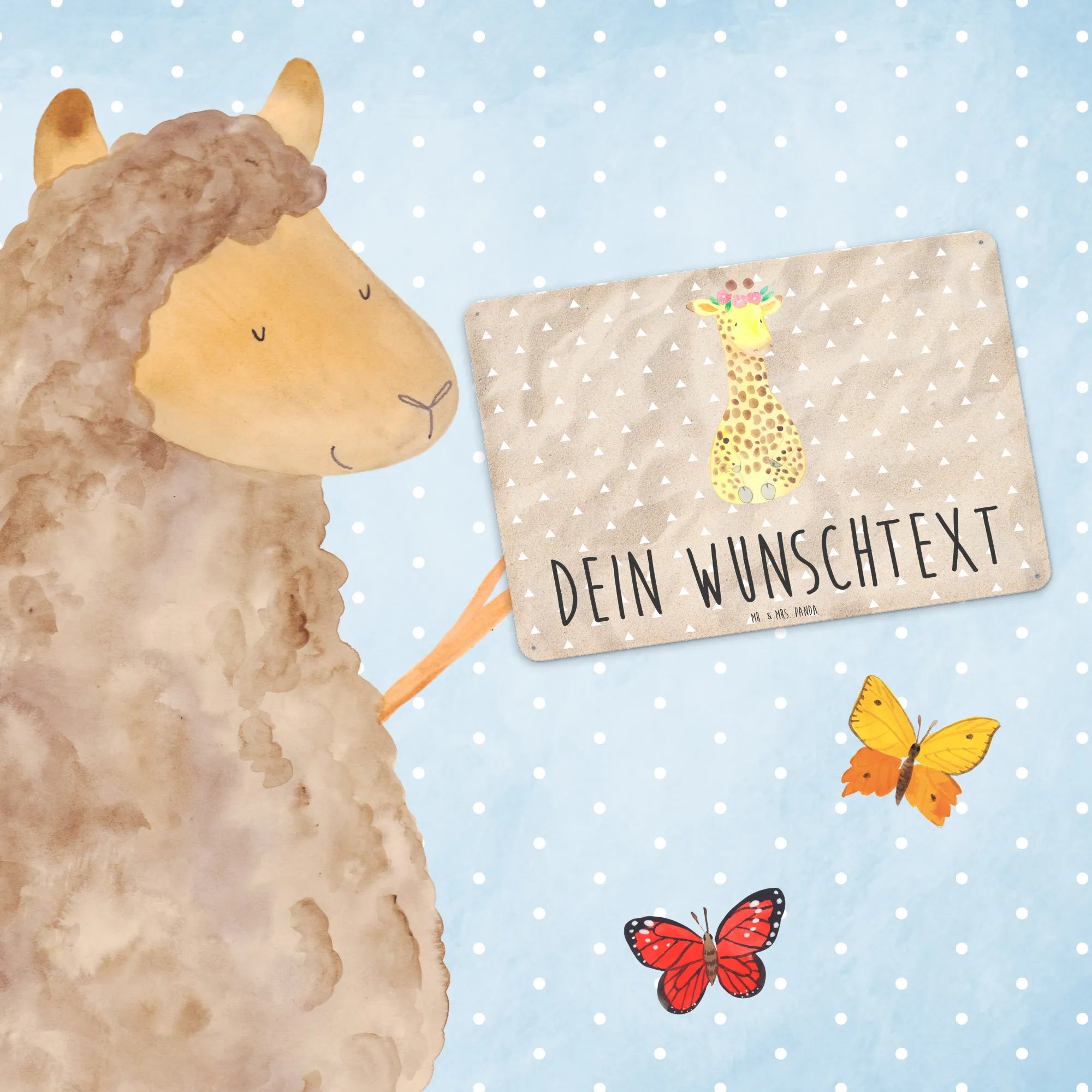 Spersonalizowana tabliczka z blachy żyrafa Wieniec kwiatów - DIN A6 - biały