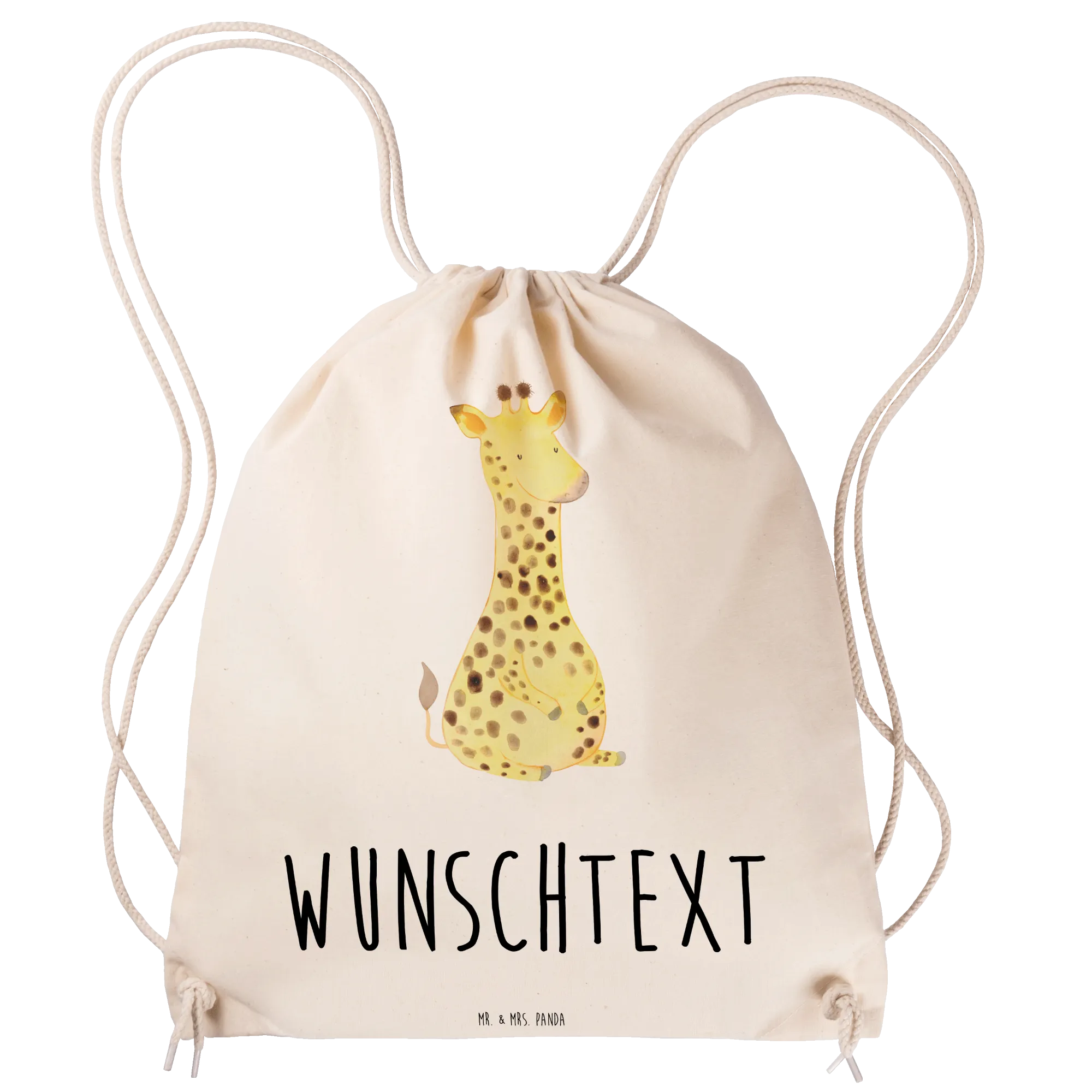 Personalisierter Sportbeutel „Giraffe Zufrieden“ – ein Freund fürs Leben und für jeden Tag. Die liebevoll von Mrs. Panda handgezeichnete Giraffe strahlt Ruhe und Glück aus und macht den Turnbeutel zu einem besonderen Begleiter für Schule, Sport, Festivals und Ausflüge. 😊