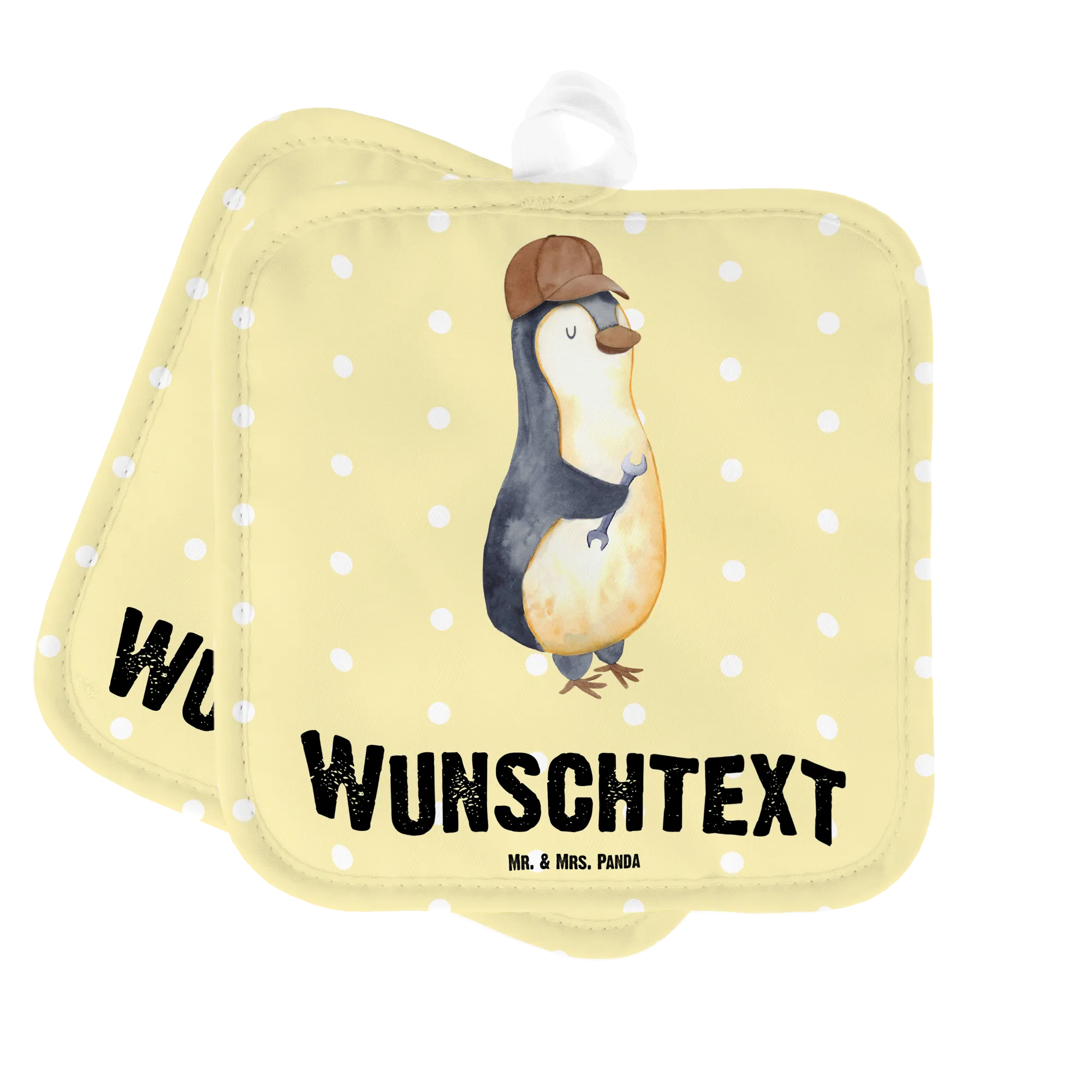 Die hochwertigen Topflappen sind einseitig bedruckt und mit niedlichen Motiven versehen, die durch ihre lebhaften Farben bestechen. Unser sympathischer Pinguin, der mit einem Schraubenschlüssel in der Flosse posiert, vermittelt Spaß und handwerkliches Geschick zugleich. Du kannst die Topflappen auch mit einem persönlichen Namen oder einem Wunschtext versehen lassen – so wird das Geschenk noch individueller und einzigartiger!