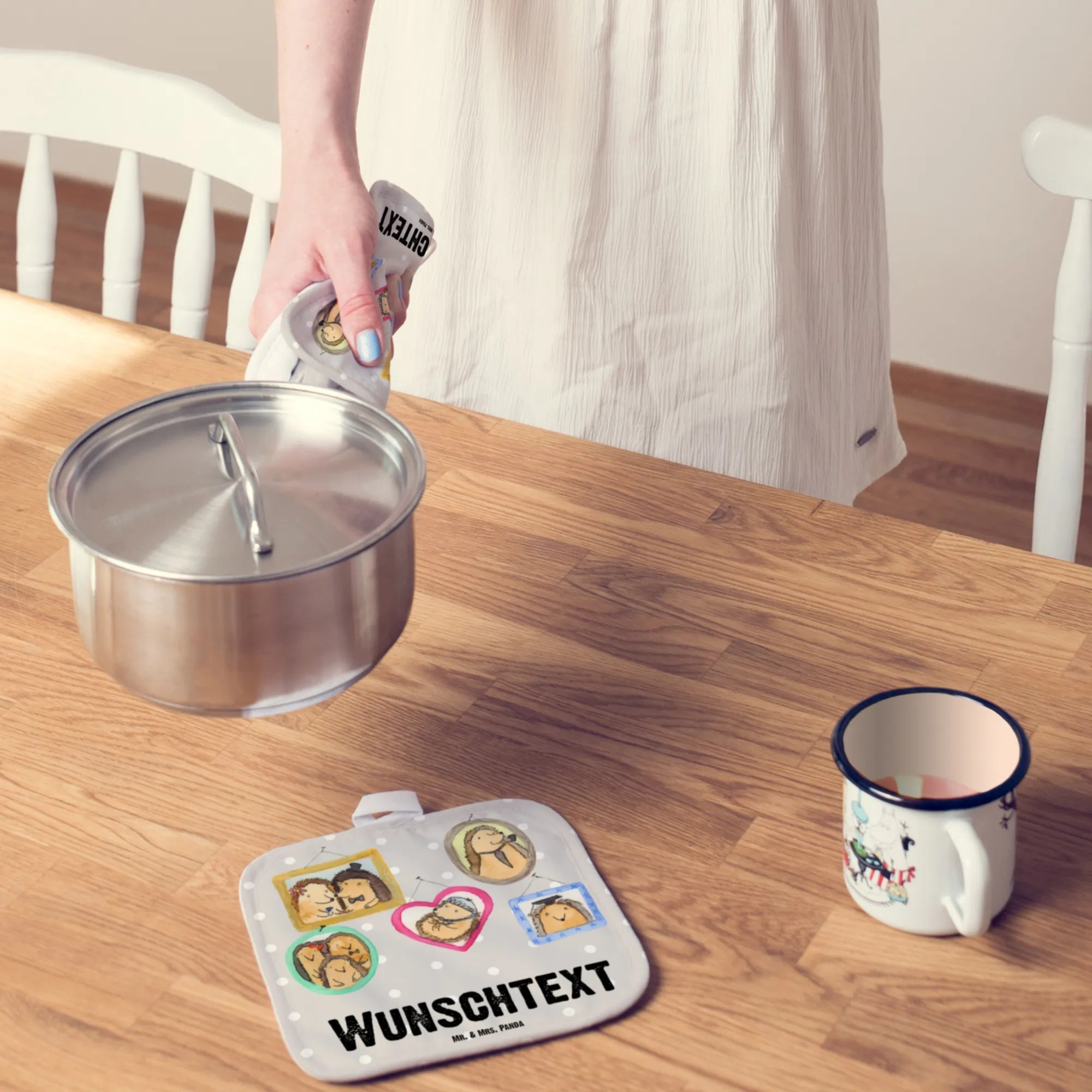 Du kannst die Topflappen ganz einfach mit deinem Wunschtext oder einem Namen personalisieren und so ein einzigartiges Geschenk schaffen. Denn Familie bedeutet für uns ganz viel Liebe, manchmal Abenteuer und Chaos, aber vor allem, füreinander da zu sein. Die liebevollen Sprüche und Motive von Mr. & Mrs. Panda wurden mit viel Liebe zum Detail entworfen und laden dazu ein, die alltäglichen Koch- und Backmomente zu einem besonderen Erlebnis zu machen.