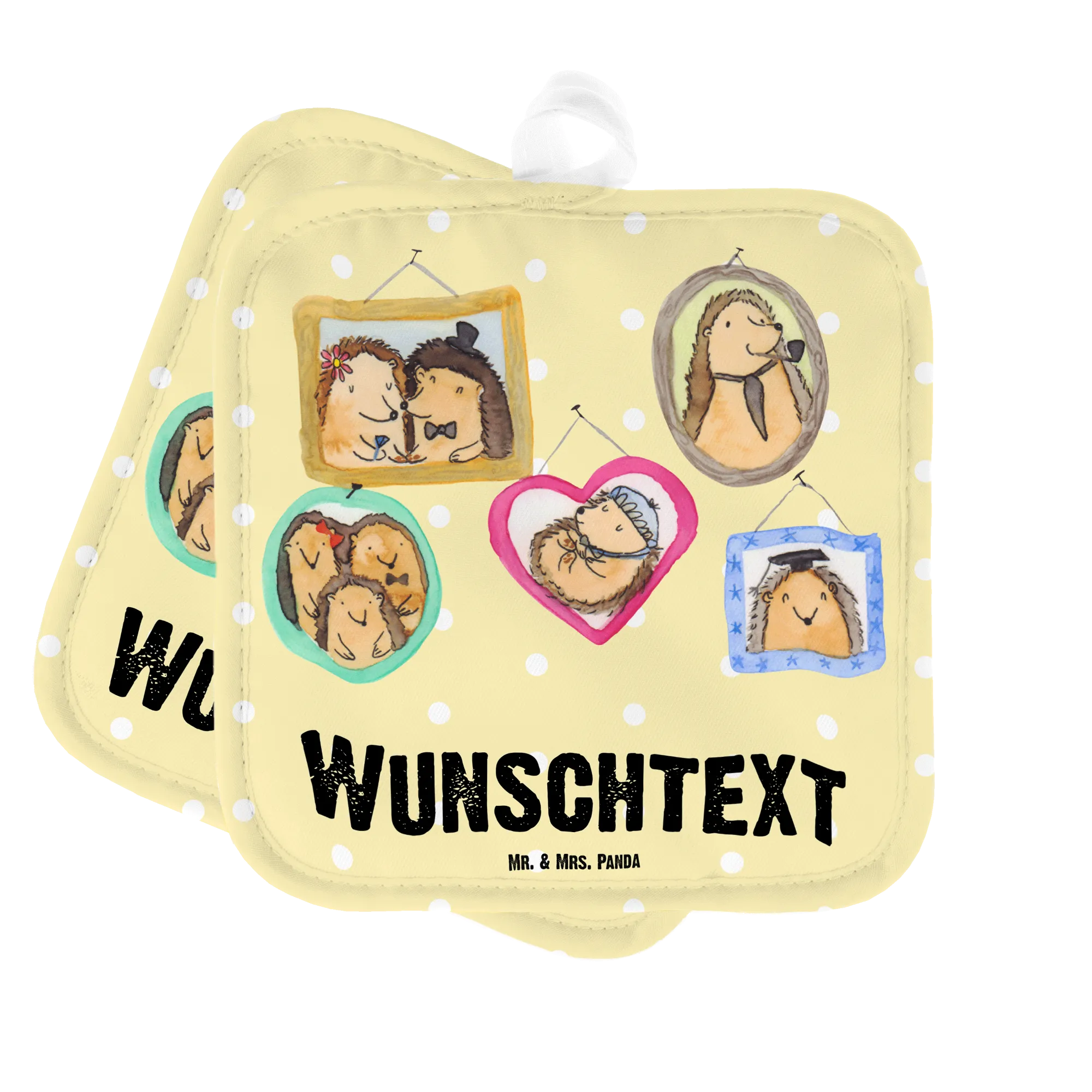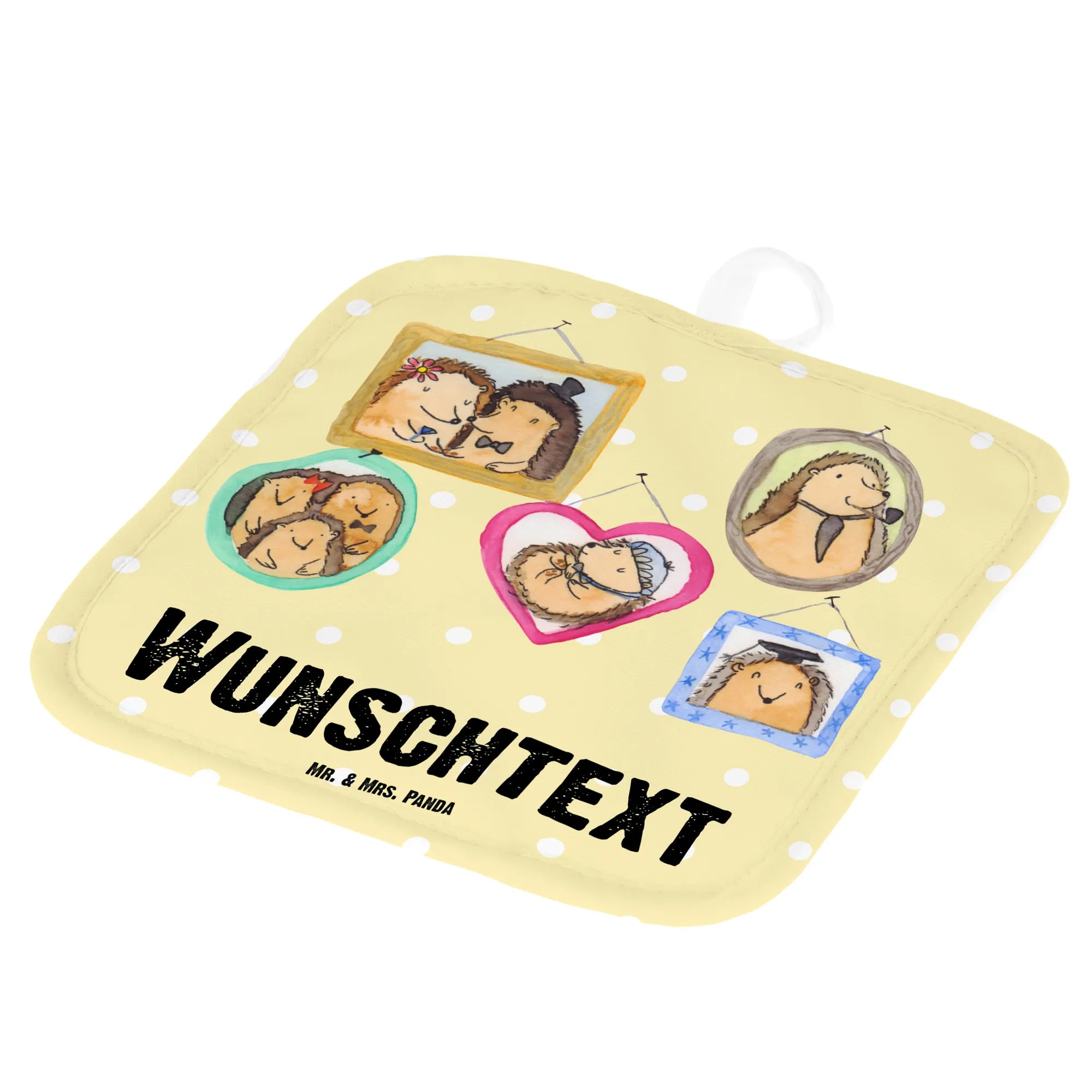 Die personalisierten Topflappen "Igel Familie" sind das Geschenk, das von Herzen kommt und das eine besondere Botschaft vermittelt. Lauft zur nächsten Feier mit einem Lächeln im Gesicht und den tollen Topflappen in der Hand – denn richtig gefragt: Was gibt es Schöneres, als ein bisschen Chaos in der Küche, wenn die Liebe niemals endet? Mit diesen Topflappen von Mr. & Mrs. Panda wirst Du ganz sicher viele Herzen erfreuen!