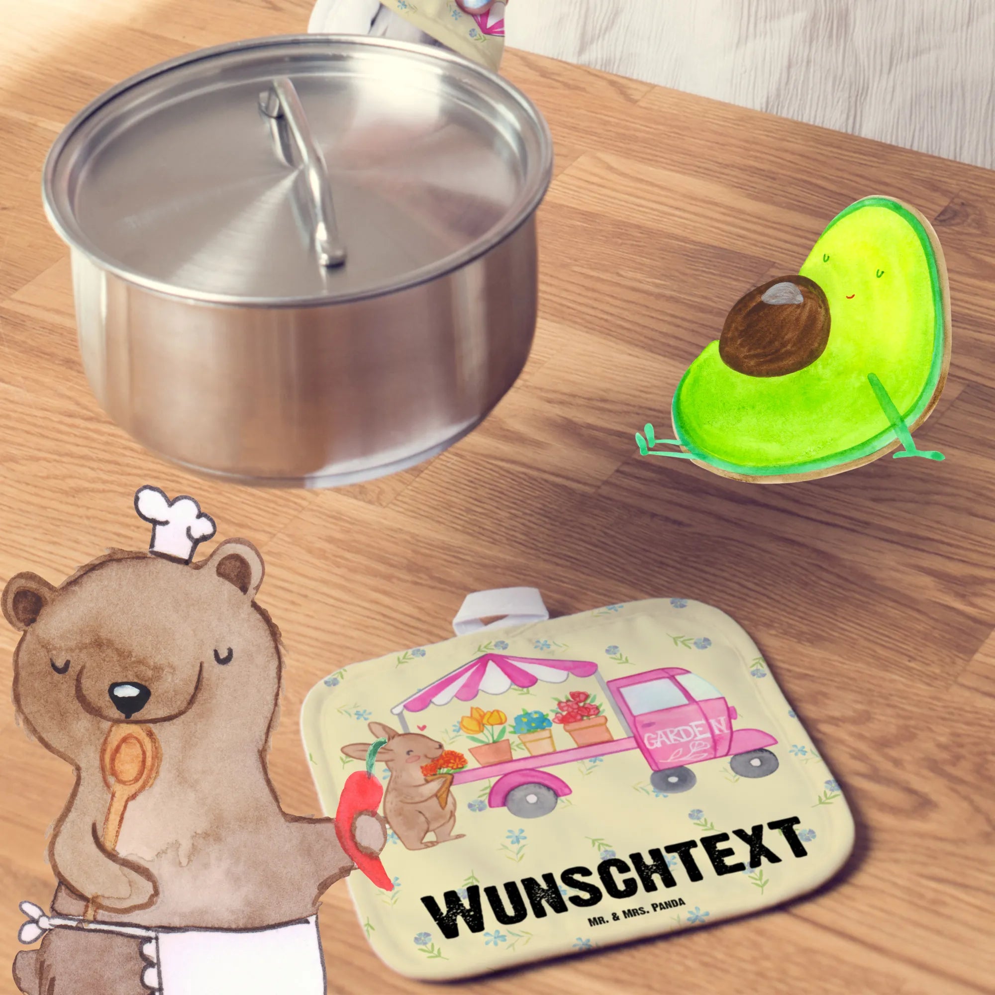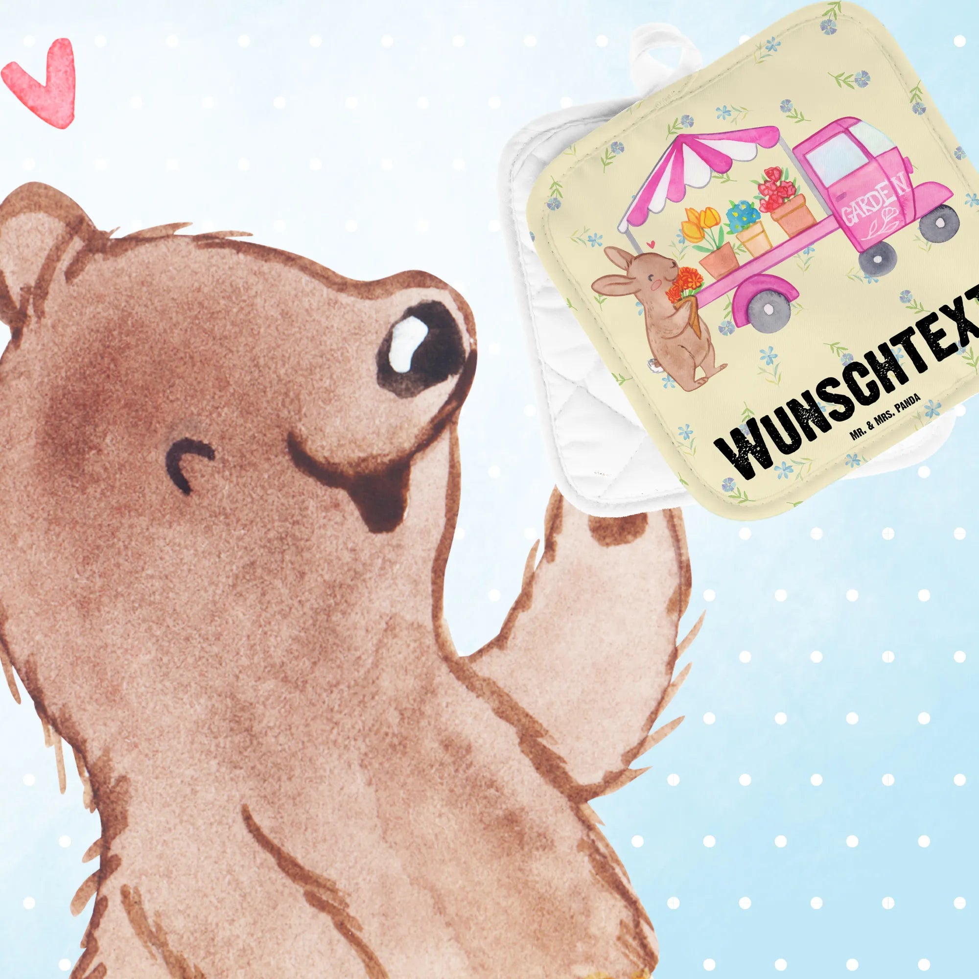 Spersonalizowane rękawice kuchenne Zajączek wielkanocny Wózek kwiatowy