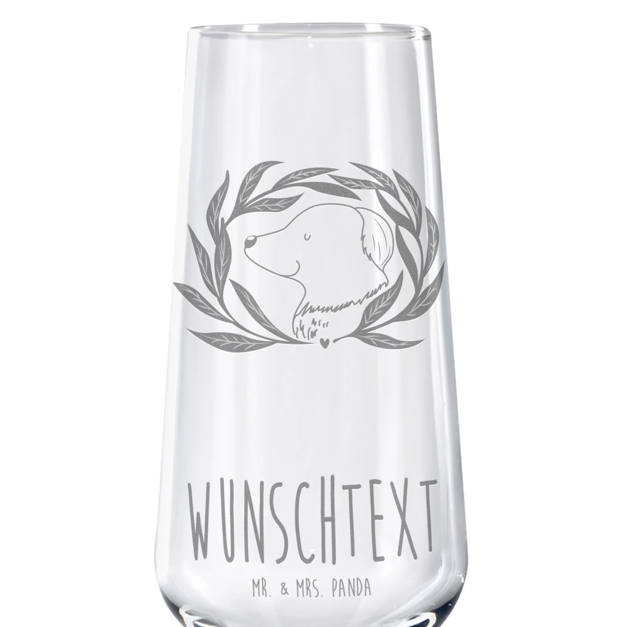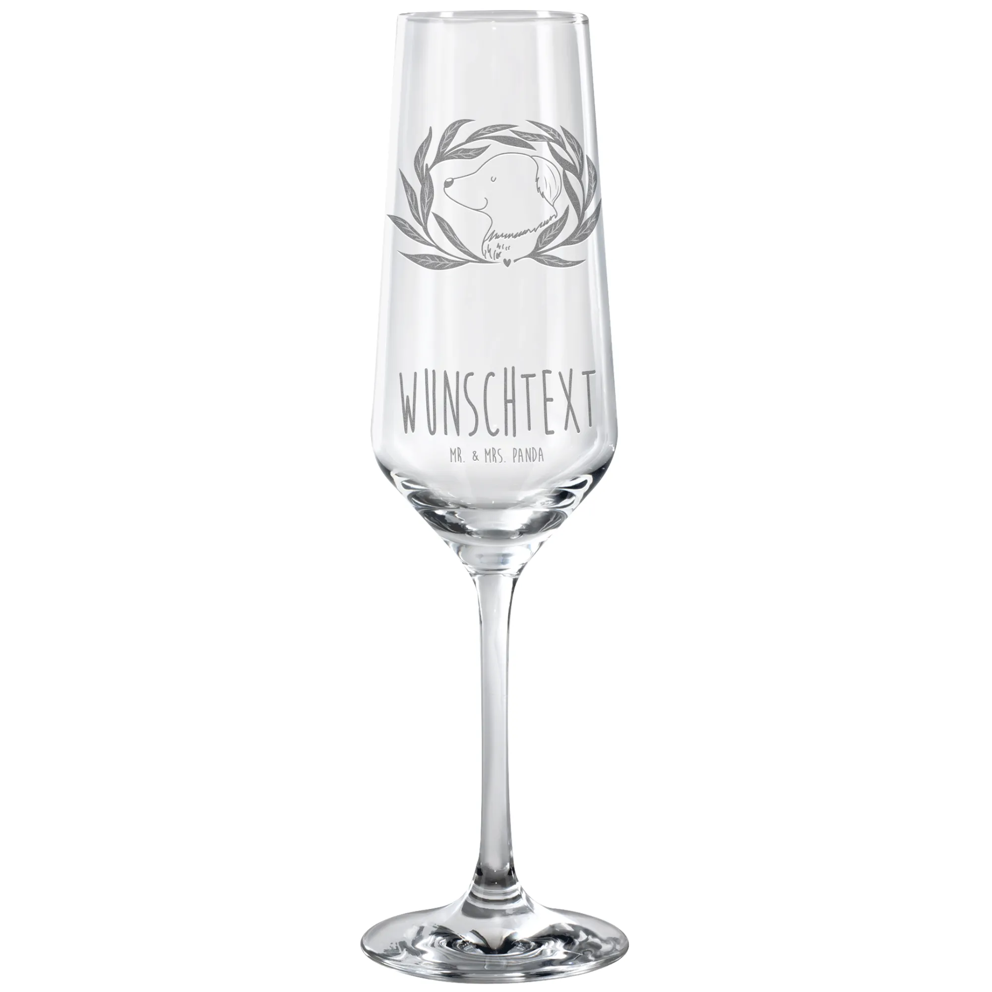 Spersonalizowany kieliszek do szampana pies kwiaty – Mr. & Mrs. Panda