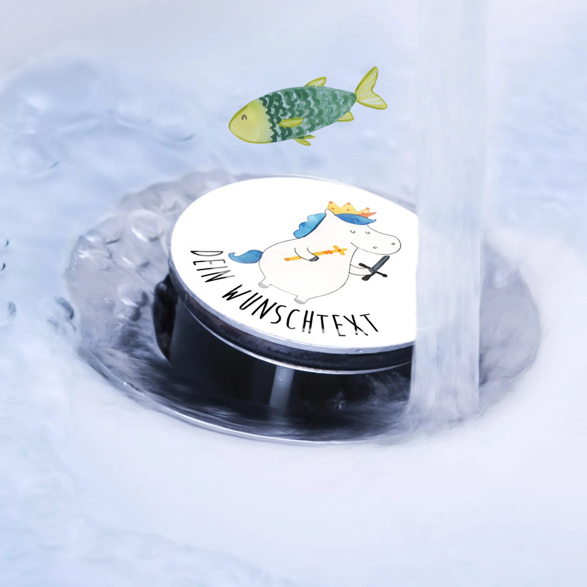 Spersonalizowany korek do umywalki jednorożec Król z mieczem