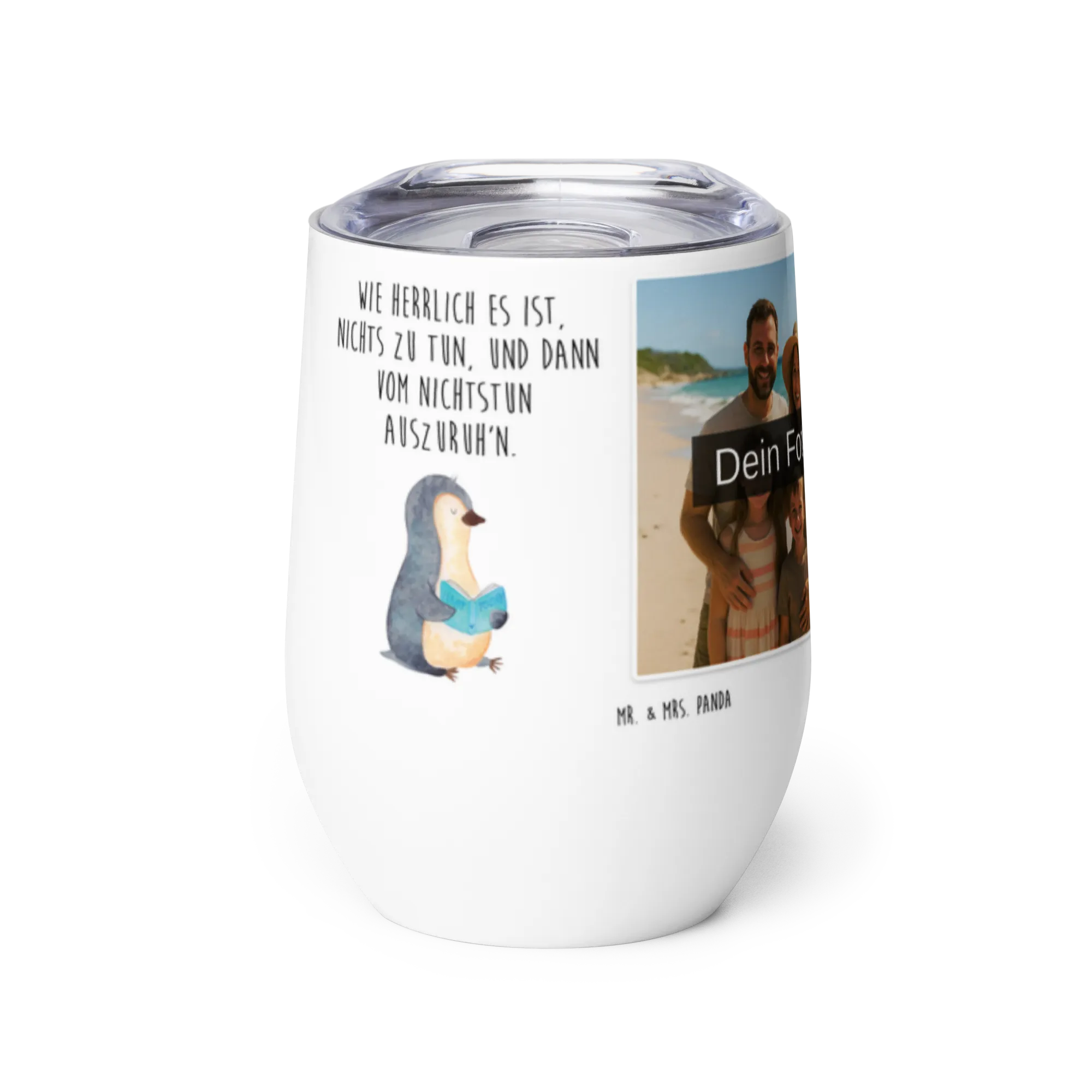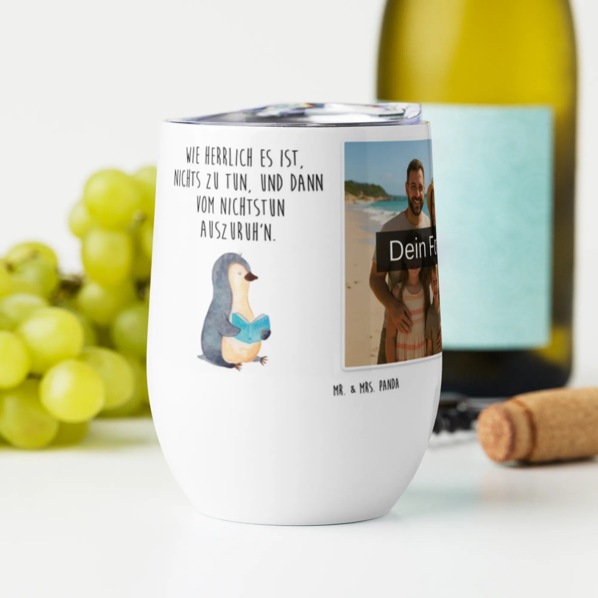 Spersonalizowany kubek do wina ze zdjęciem pingwin książka