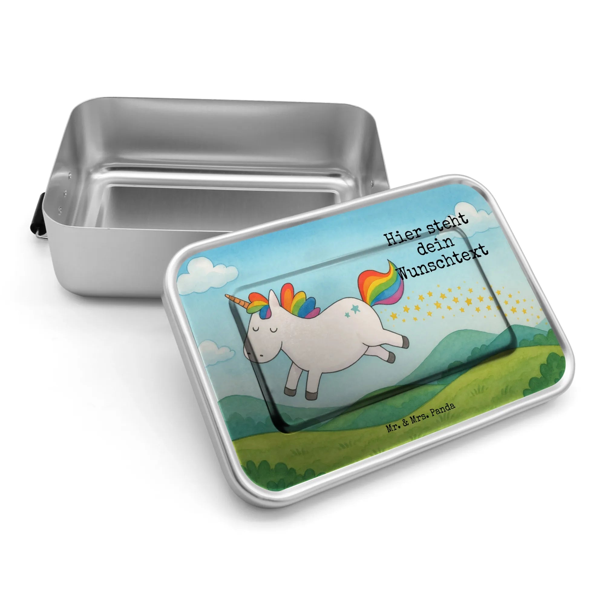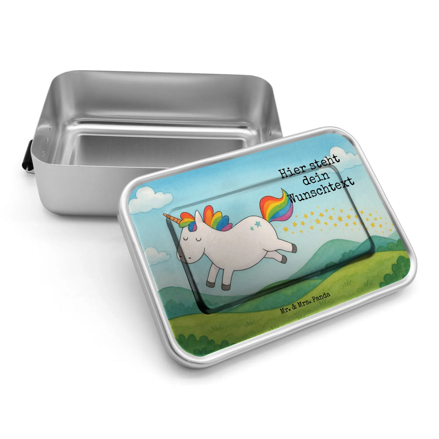 Spersonalizowany metalowy pojemnik na lunch Jednorożec Szczęśliwy Design