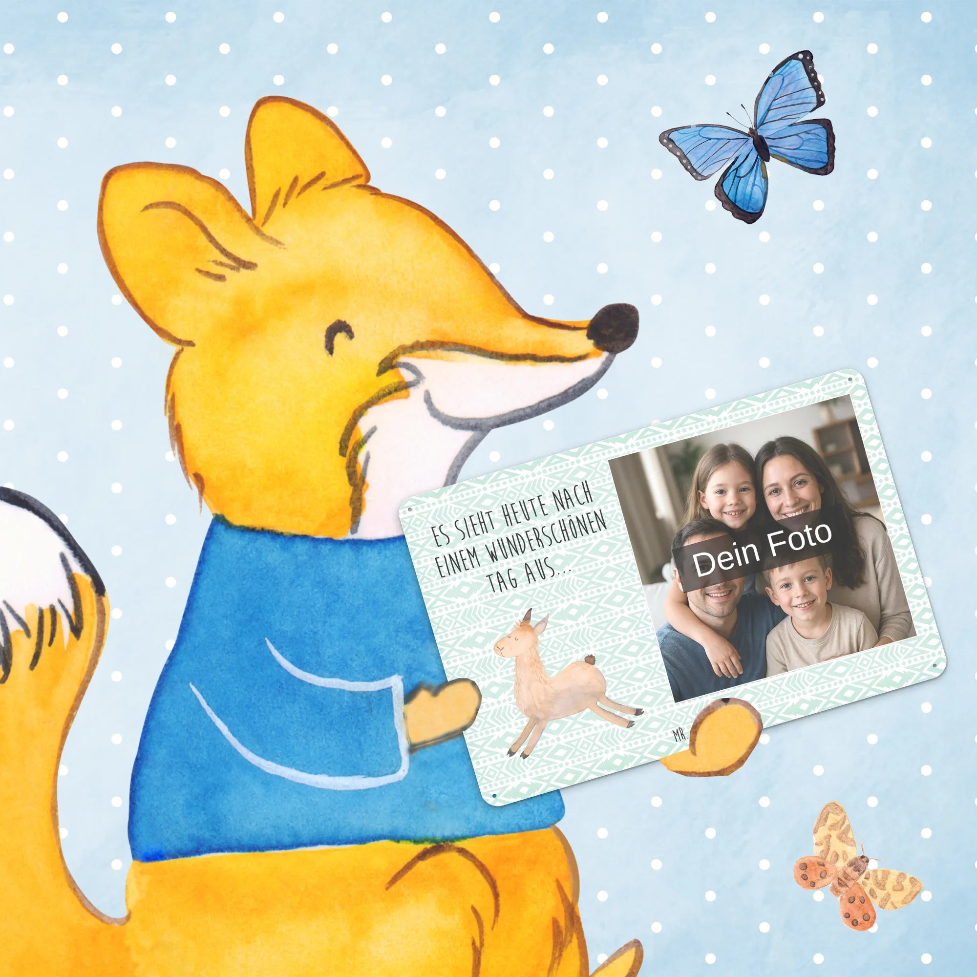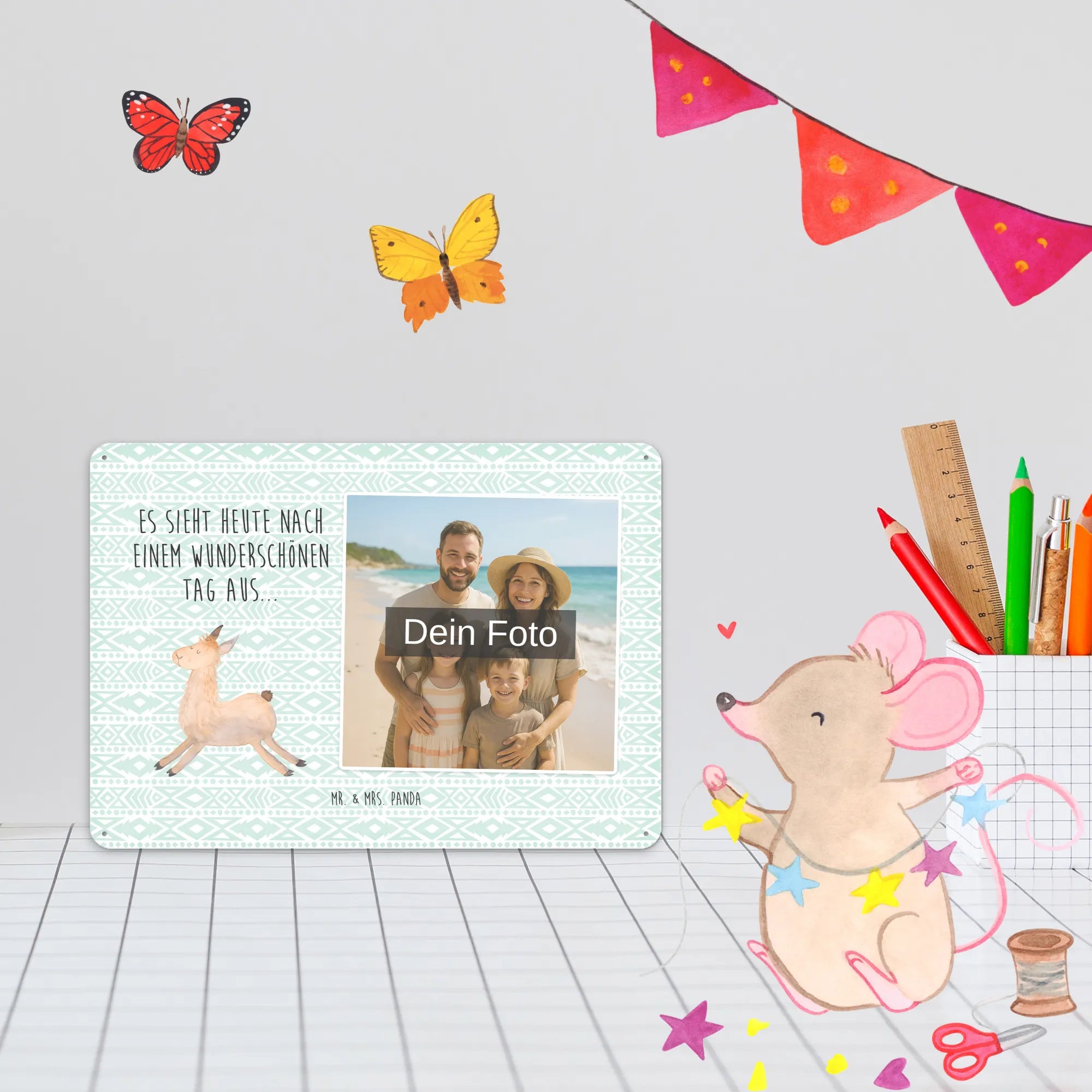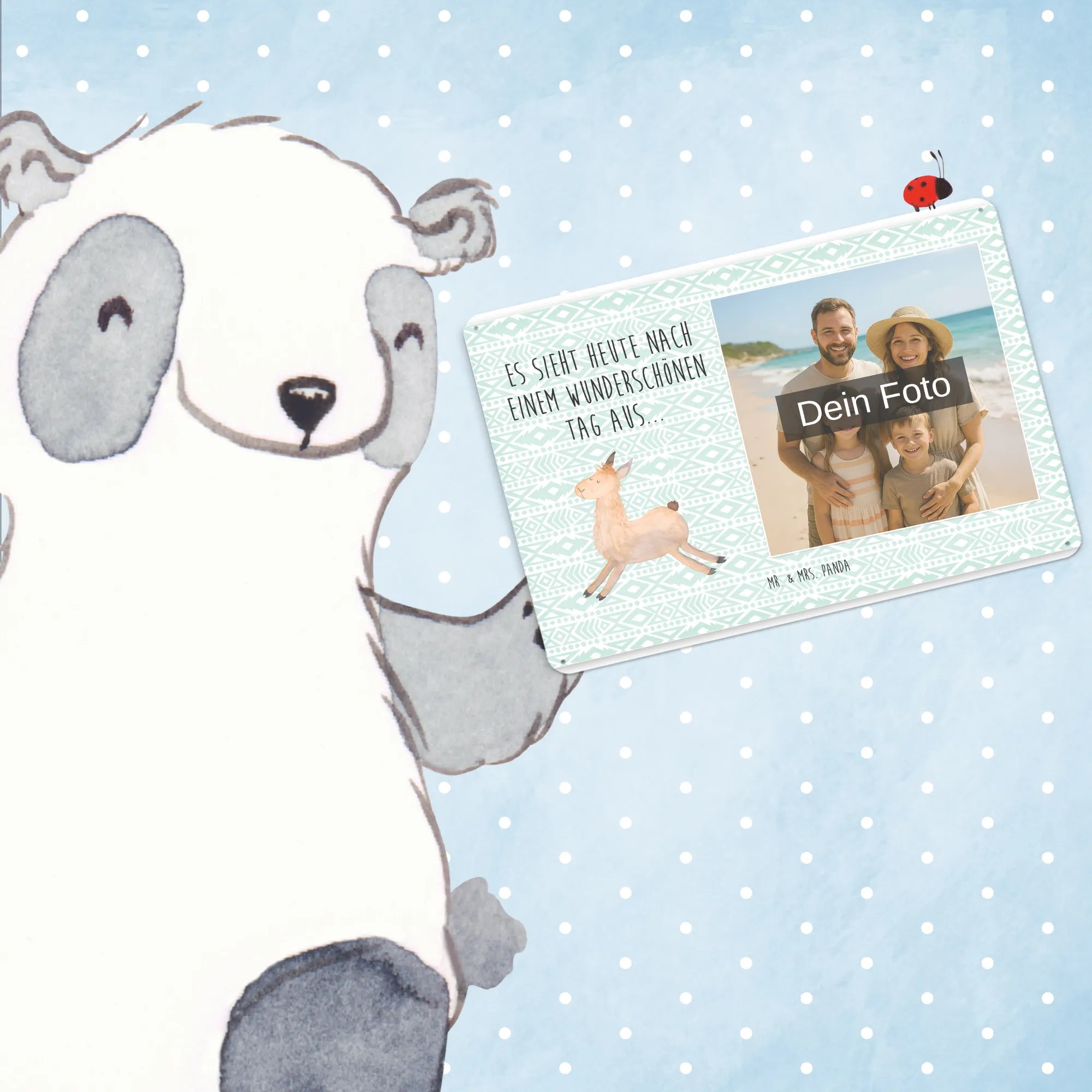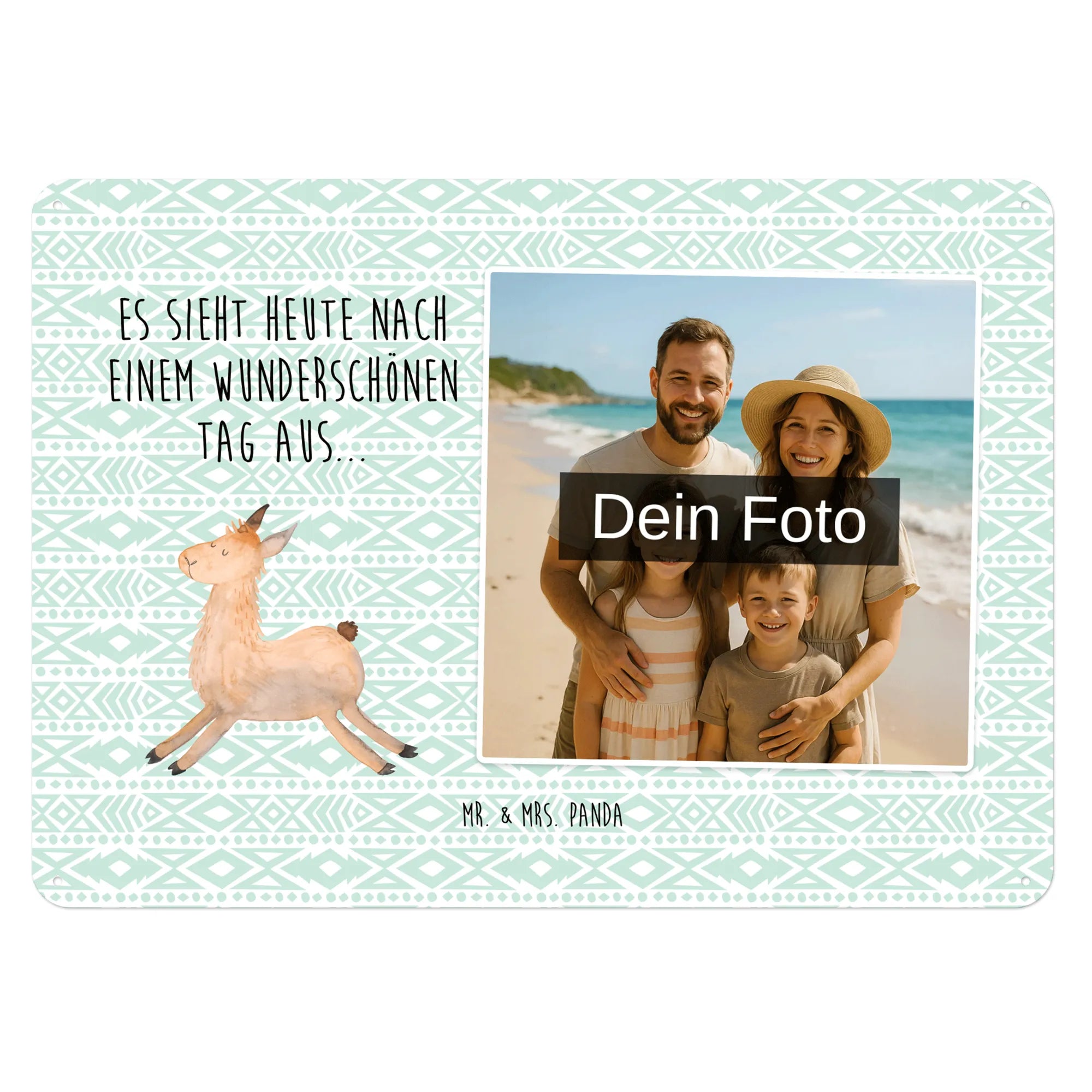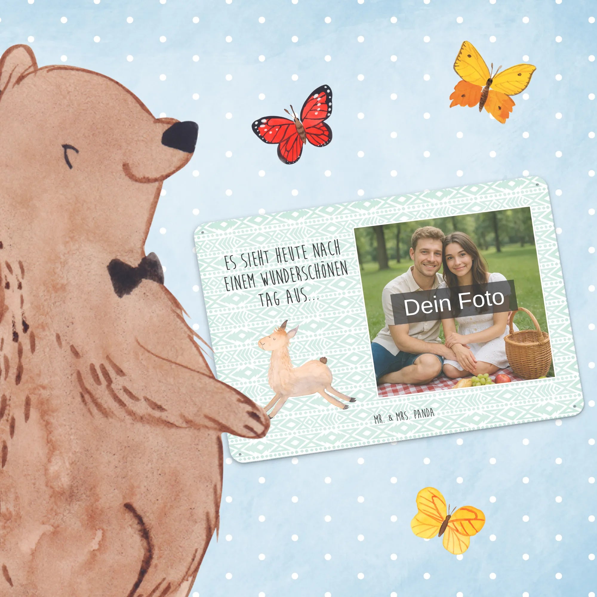 Spersonalizowany metalowy szyld ze zdjęciem lama Skakanie – Mr. & Mrs. Panda