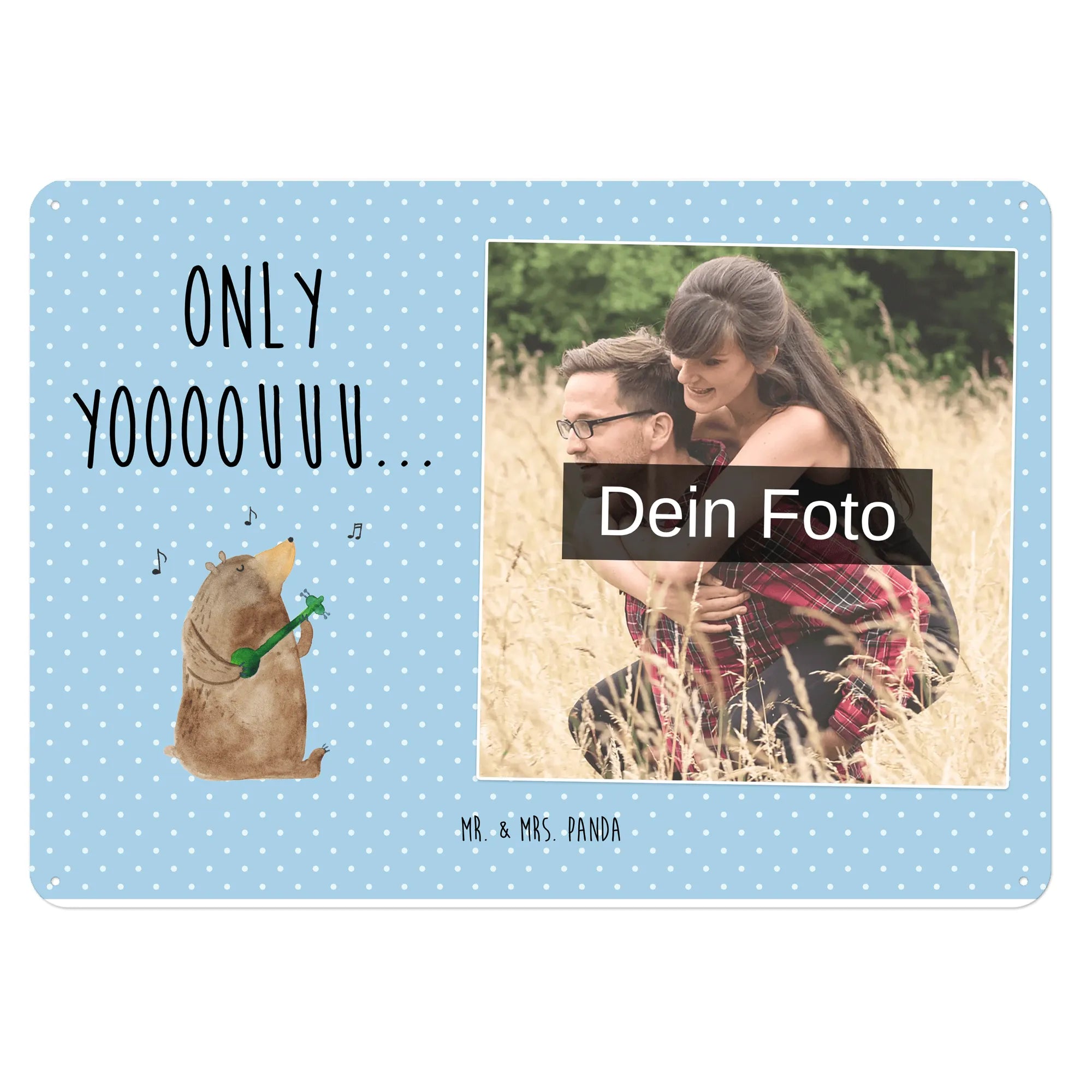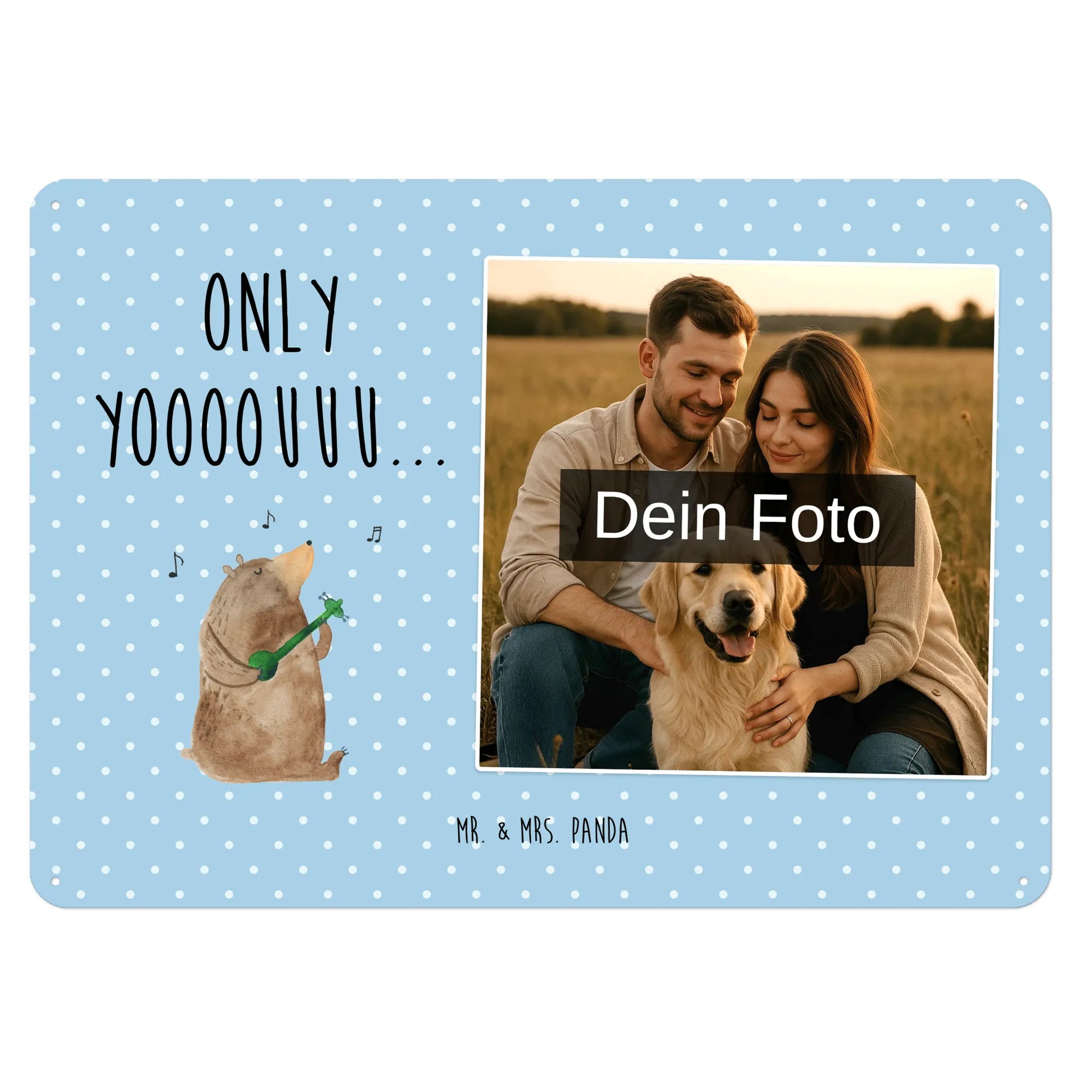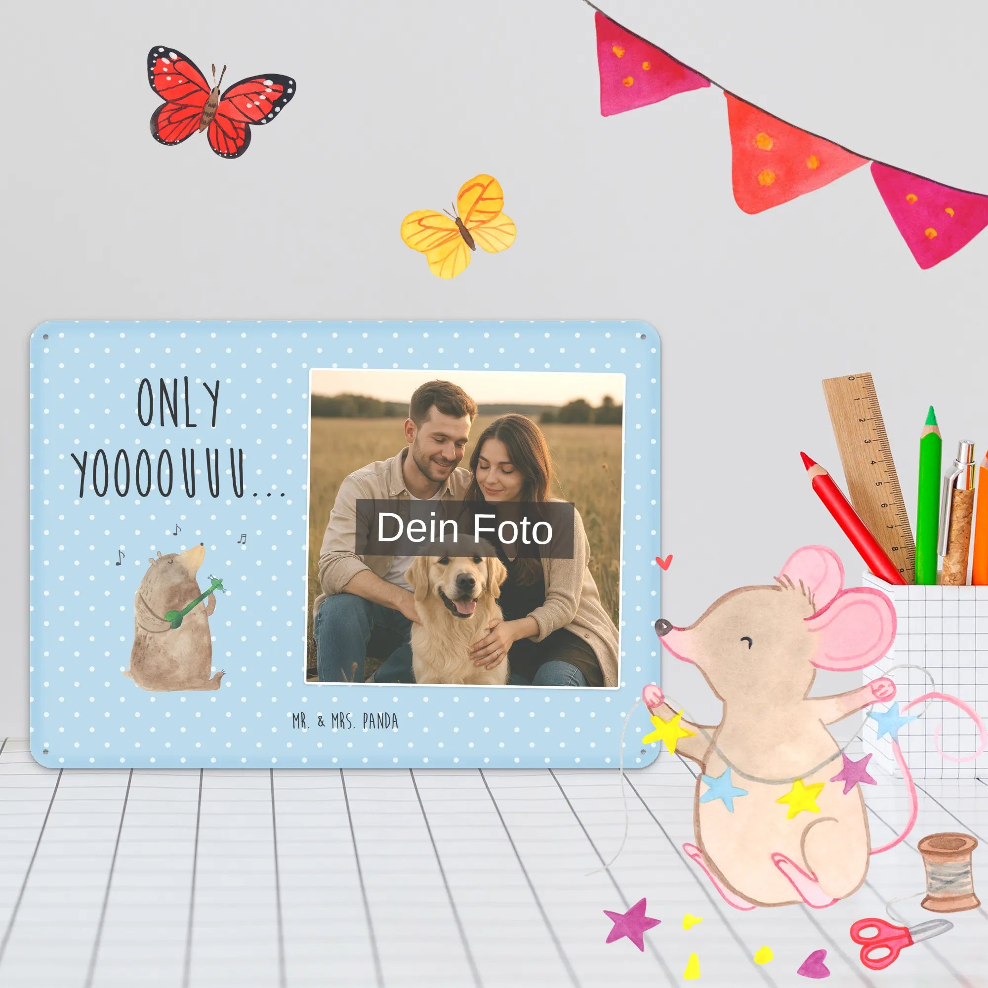 Ein Geschenk, das ins Herz trifft: Unser personalisiertes Foto-Blechschild mit dem süßen Motiv „Bär Gitarre“ aus der Bär-Kollektion von Mr. & Mrs. Panda verbindet kuschelige Niedlichkeit mit rockigem Flair. Der liebevolle Slogan „Only yoooouuu..." macht das Schild besonders persönlich und eignet sich perfekt für Musiker, Musikfans und alle Bären-Liebhaber. 🎸🧸