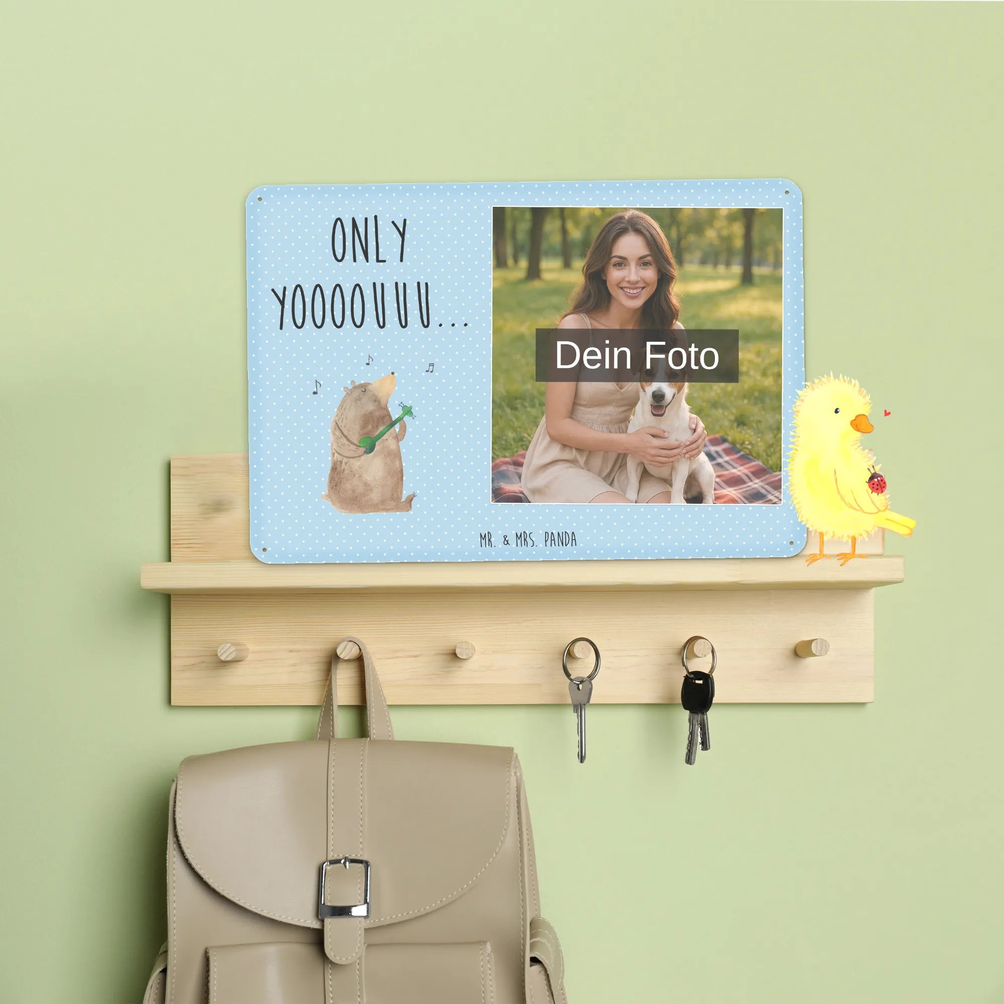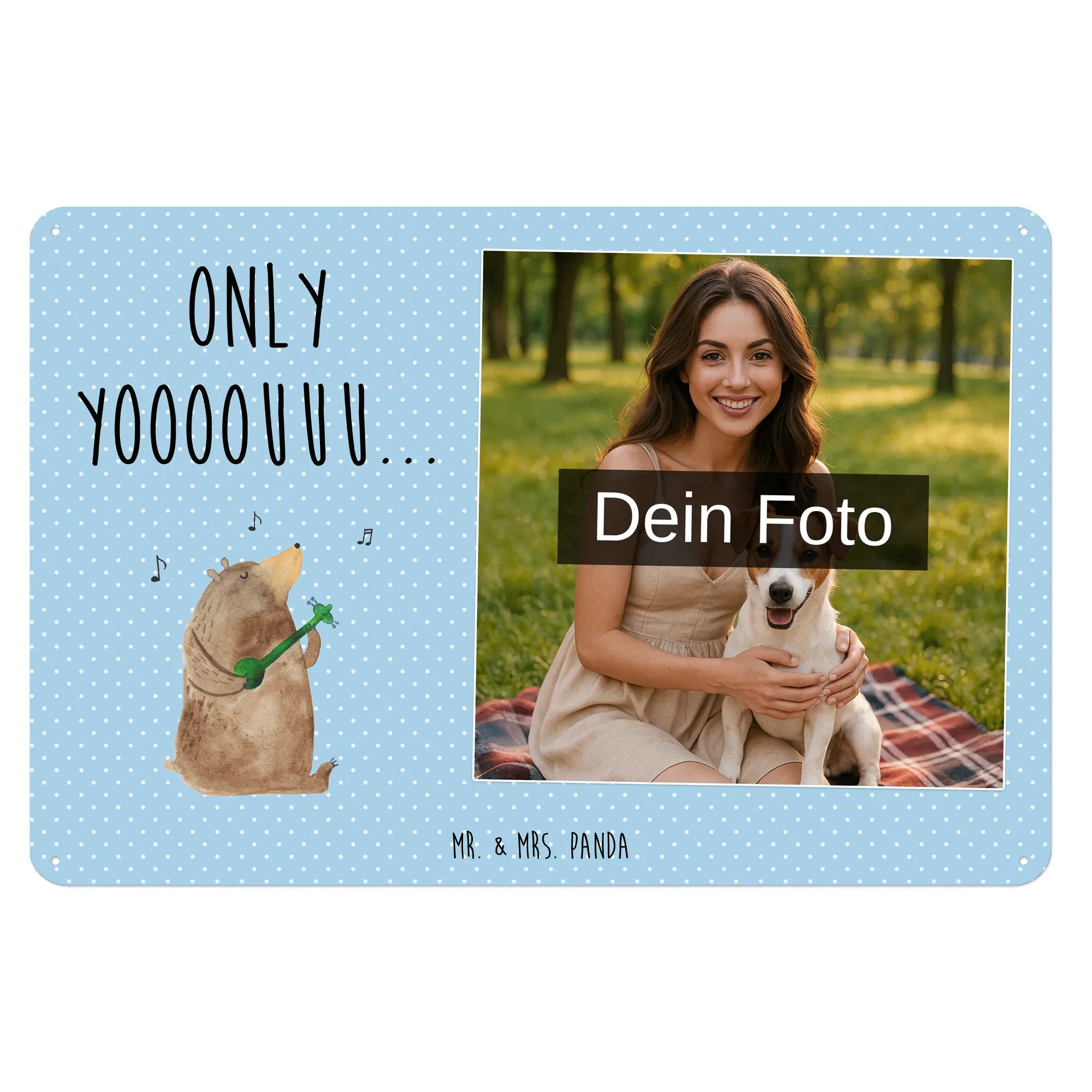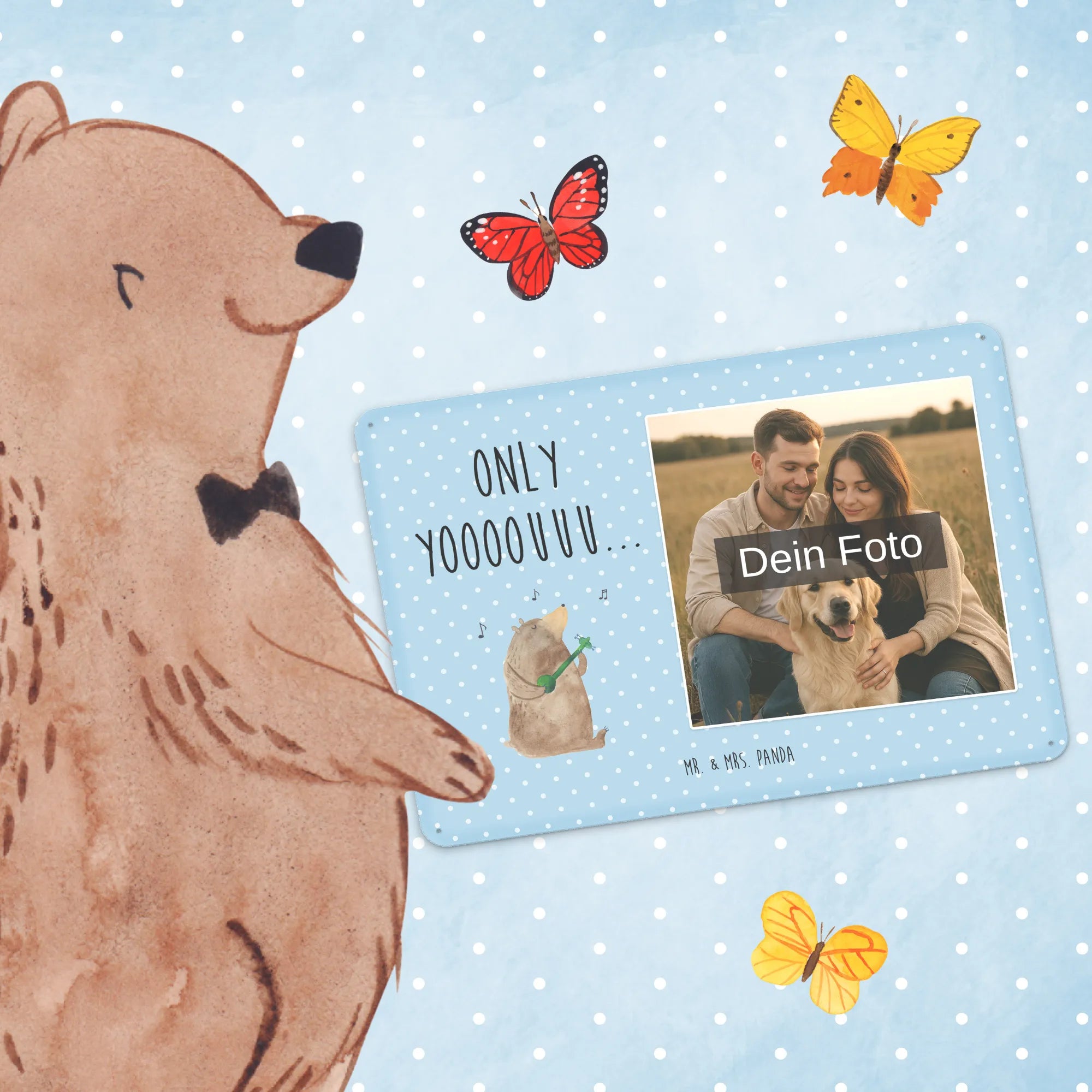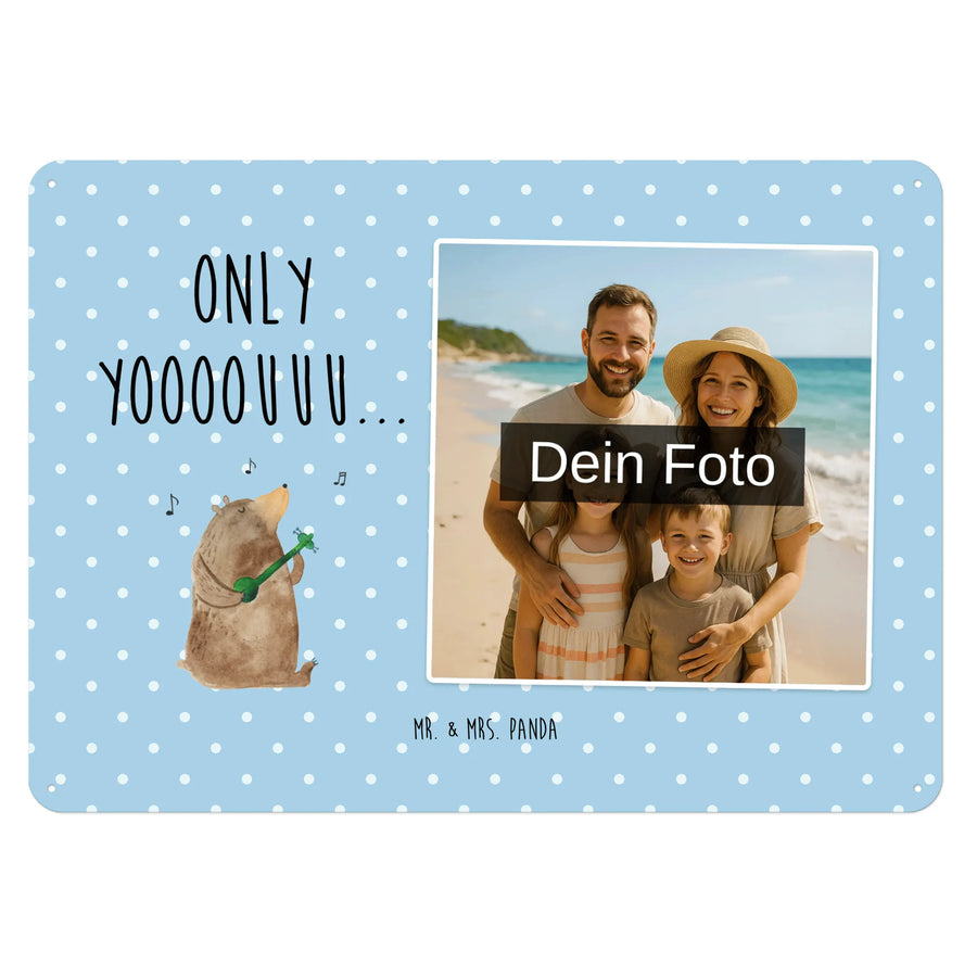 Ein Geschenk, das ins Herz trifft: Unser personalisiertes Foto-Blechschild mit dem süßen Motiv „Bär Gitarre“ aus der Bär-Kollektion von Mr. & Mrs. Panda verbindet kuschelige Niedlichkeit mit rockigem Flair. Der liebevolle Slogan „Only yoooouuu..." macht das Schild besonders persönlich und eignet sich perfekt für Musiker, Musikfans und alle Bären-Liebhaber. 🎸🧸