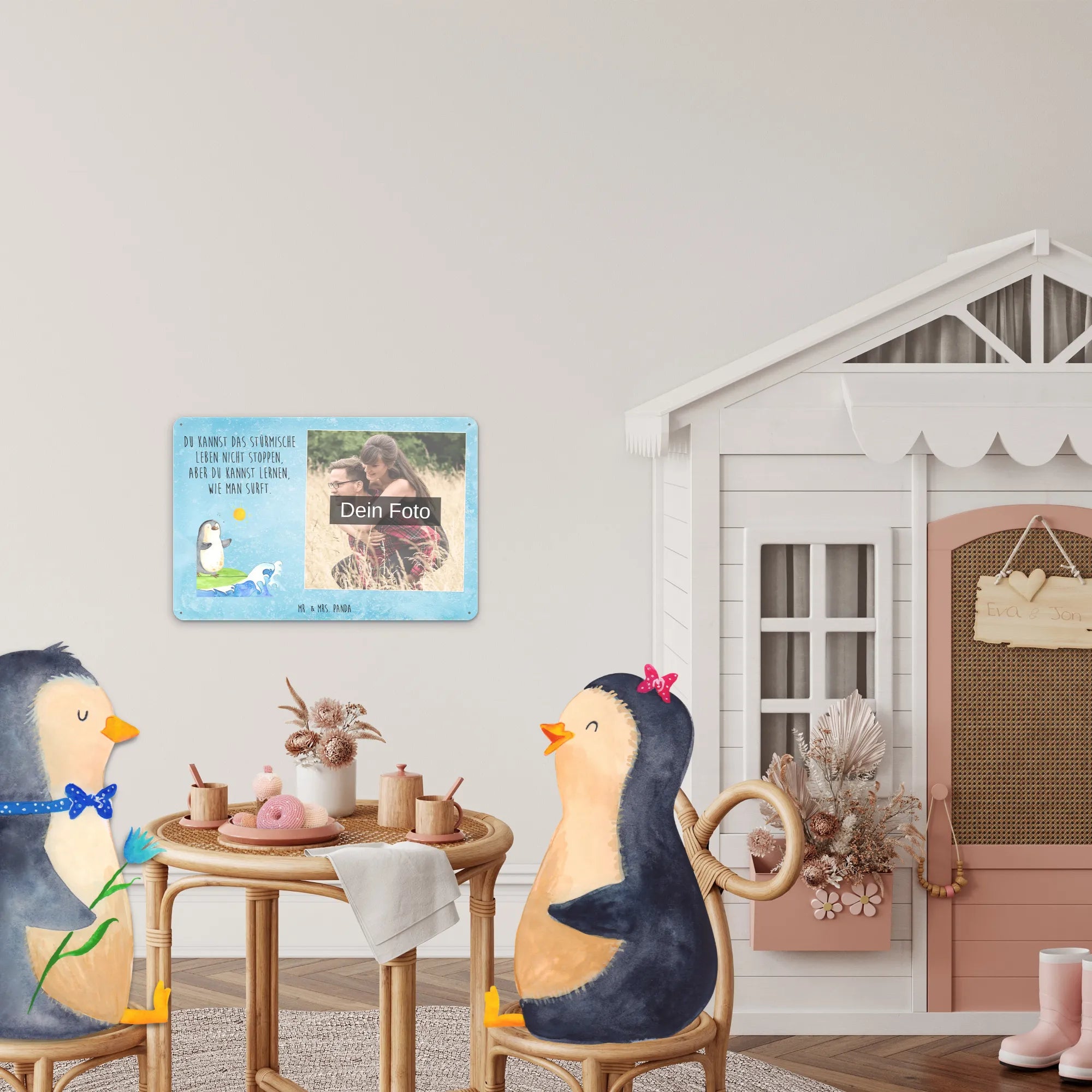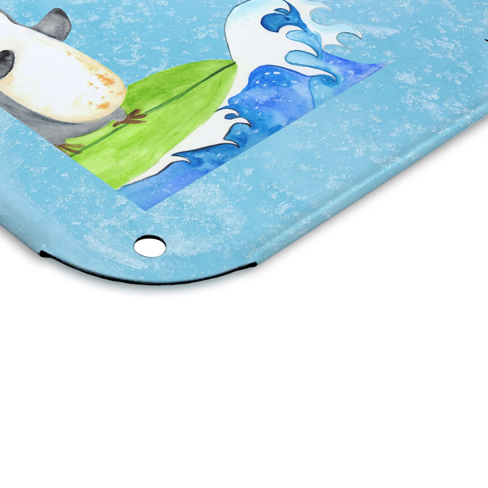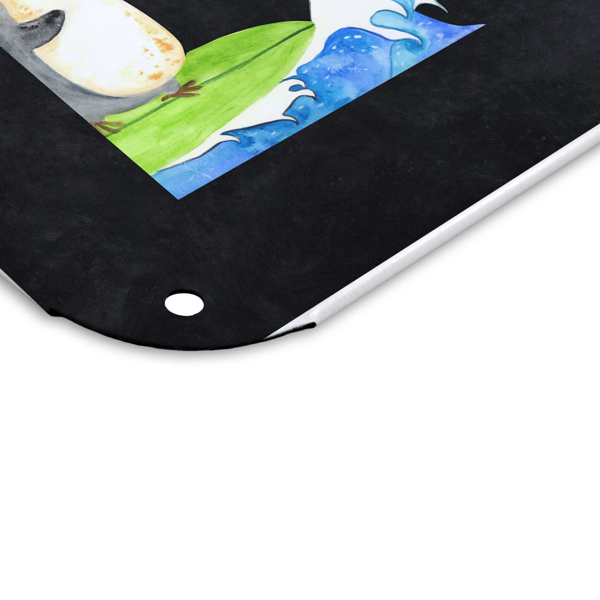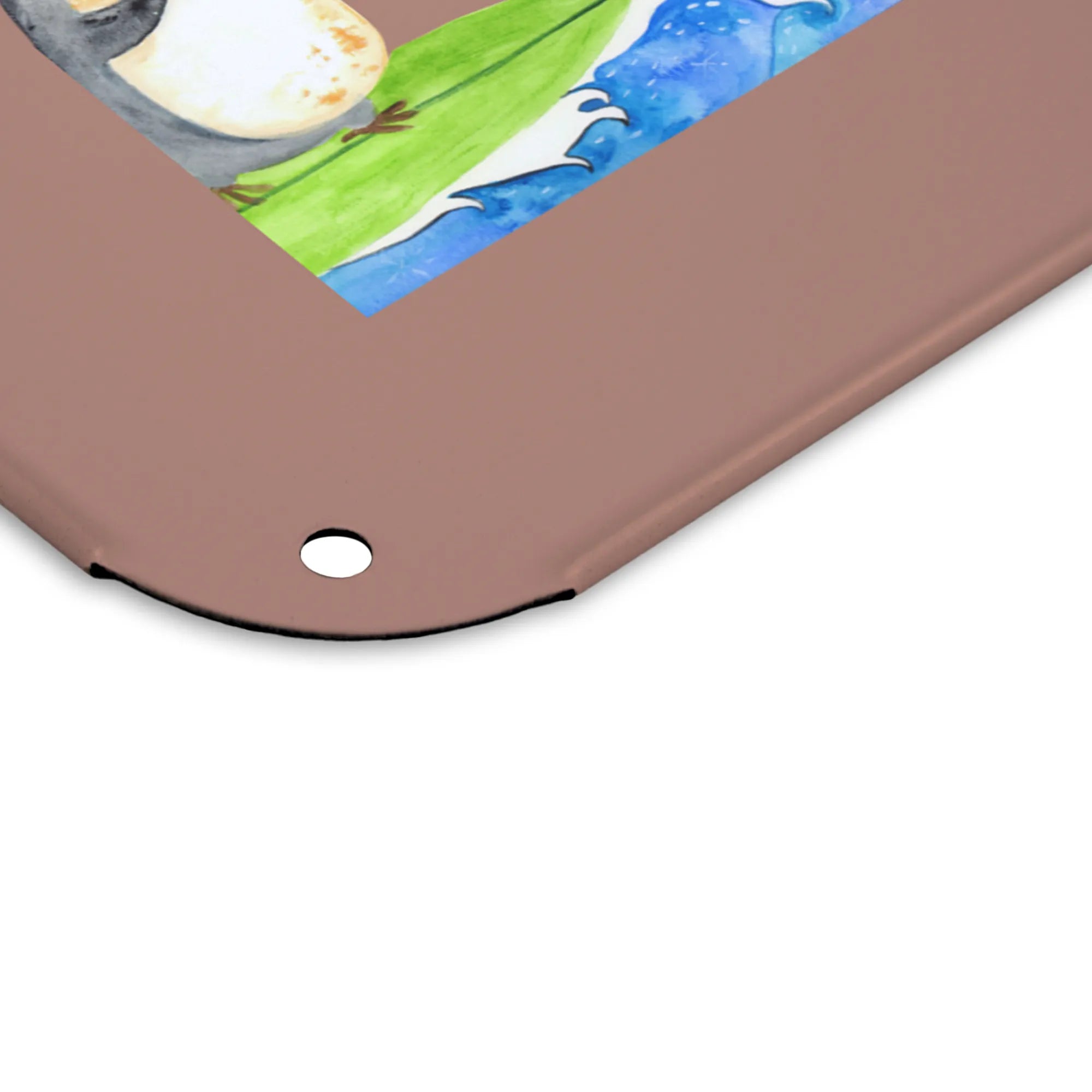 Spersonalizowany metalowy szyld ze zdjęciem Pingwin surfista - DIN A6 - lodowoniebieski