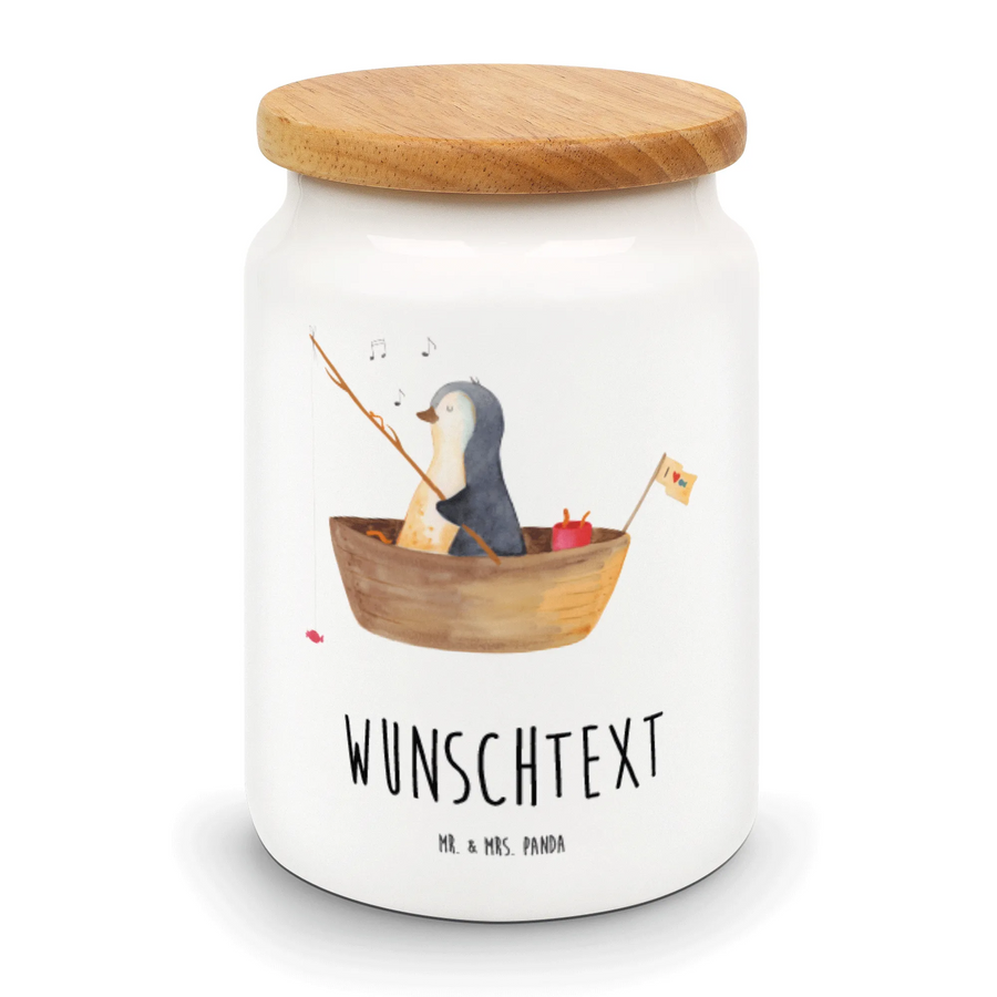 Spersonalizowany pojemnik na zapasy pingwin łódka wędkarska