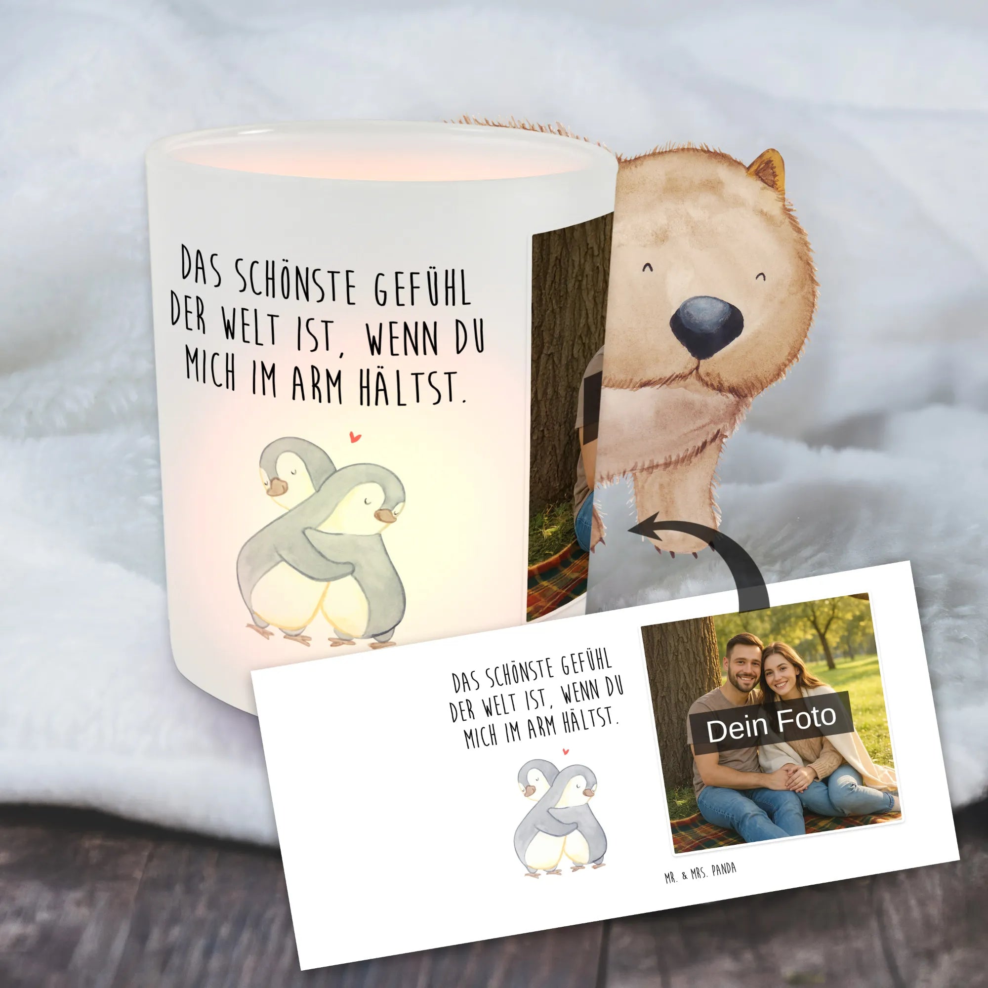 Spersonalizowany świecznik ze zdjęciem Pingwiny przytulanie