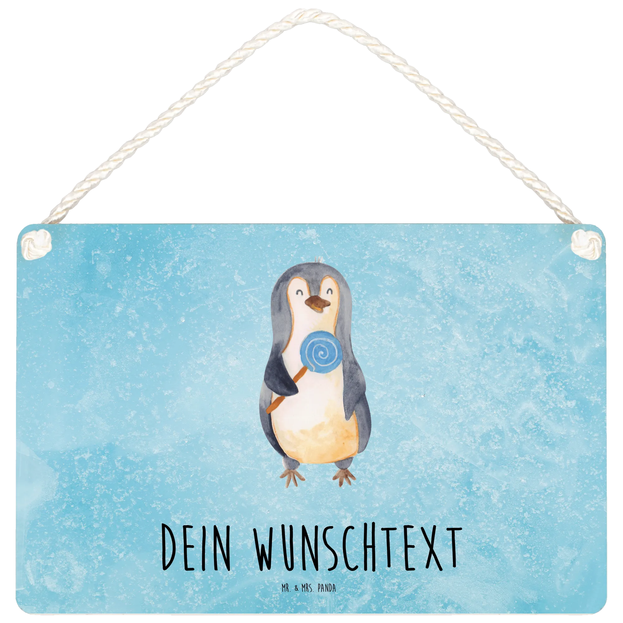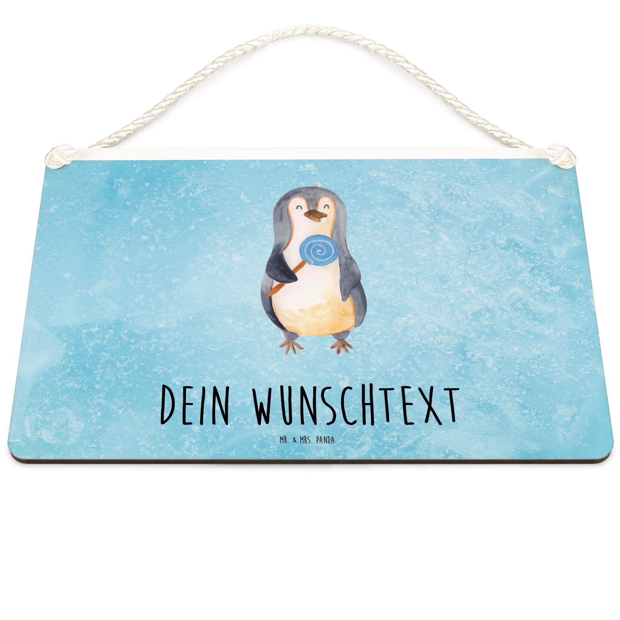 Spersonalizowany szyld dekoracyjny pingwin lizak - DIN A6 - biały