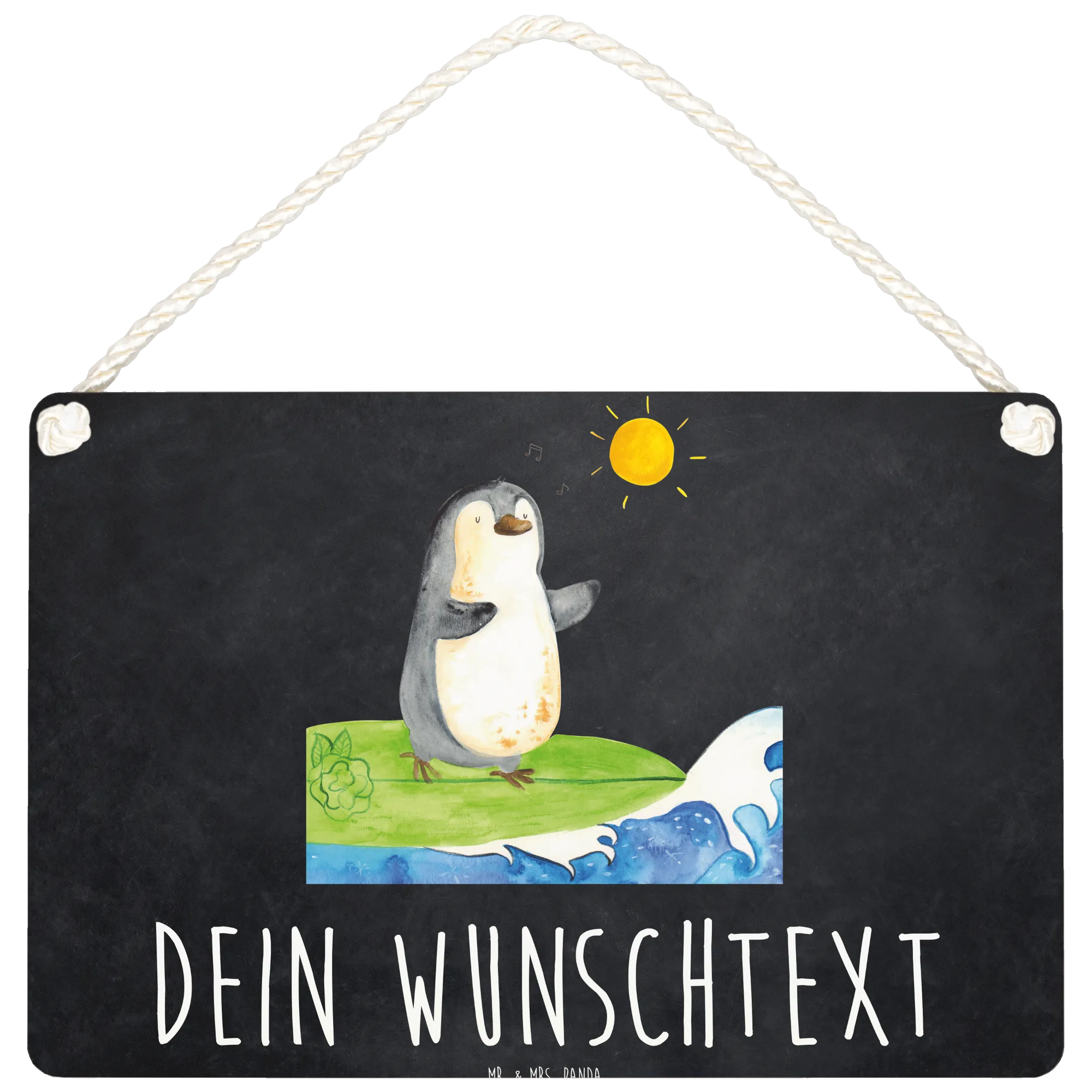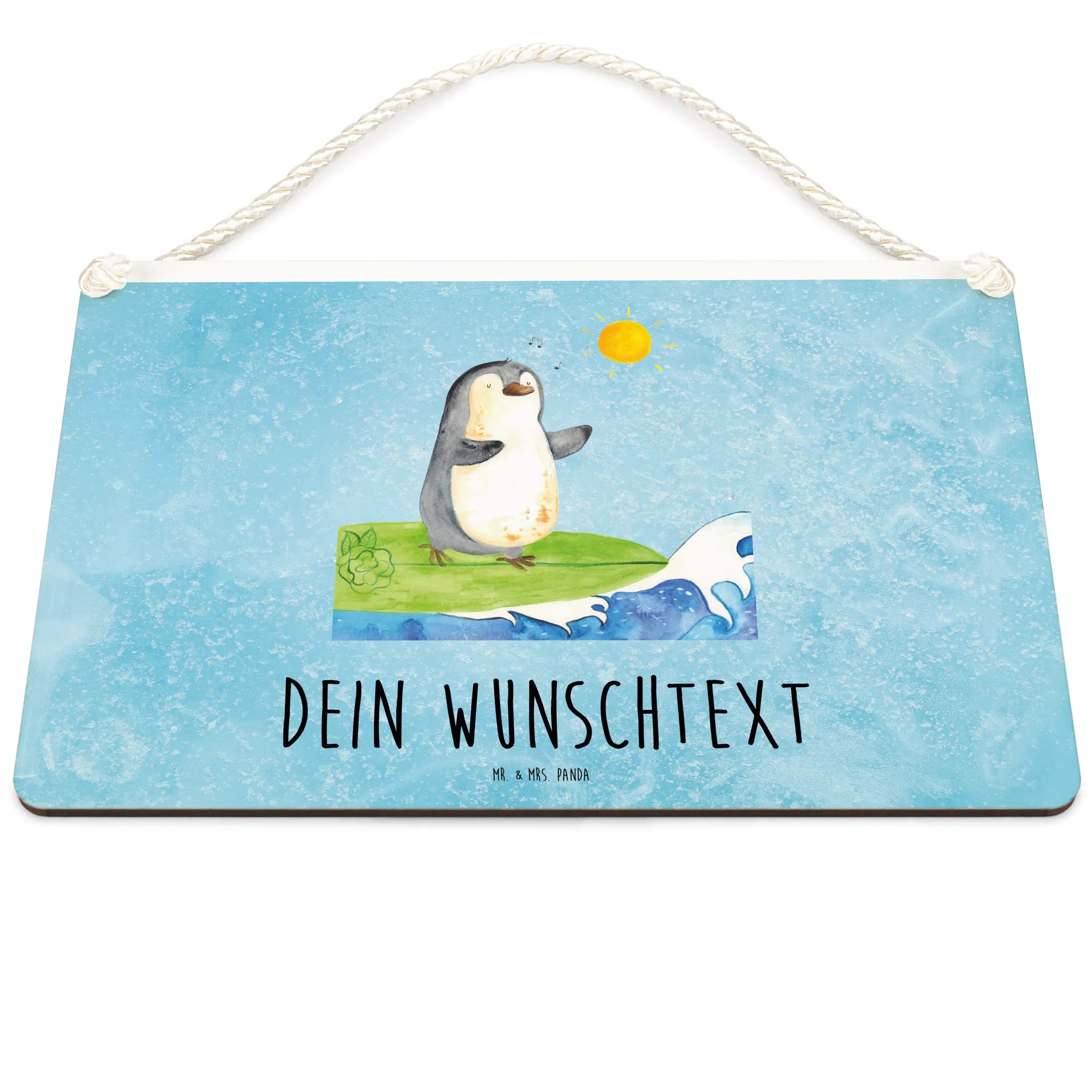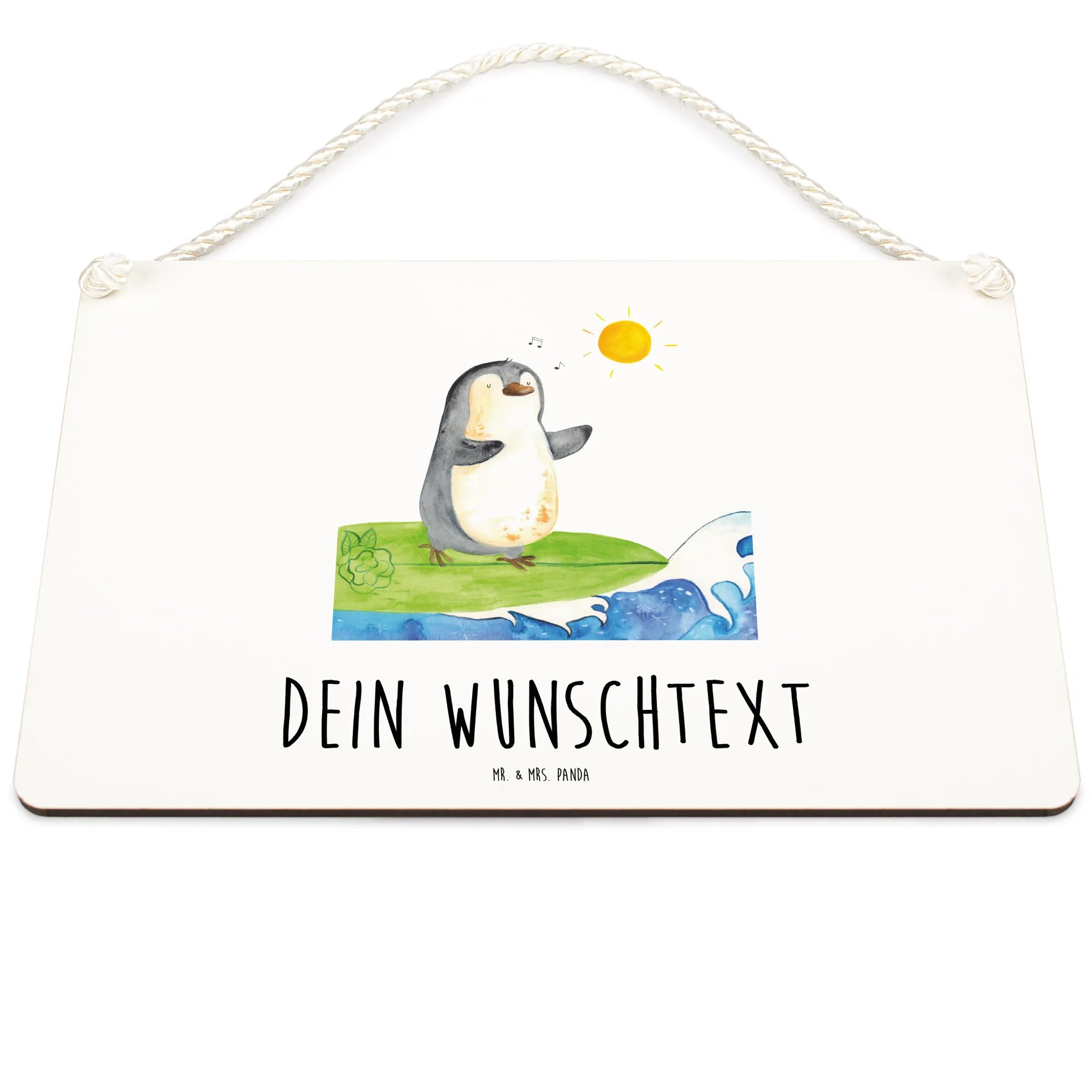 Spersonalizowany szyld dekoracyjny Pingwin surfista - DIN A6 - biały