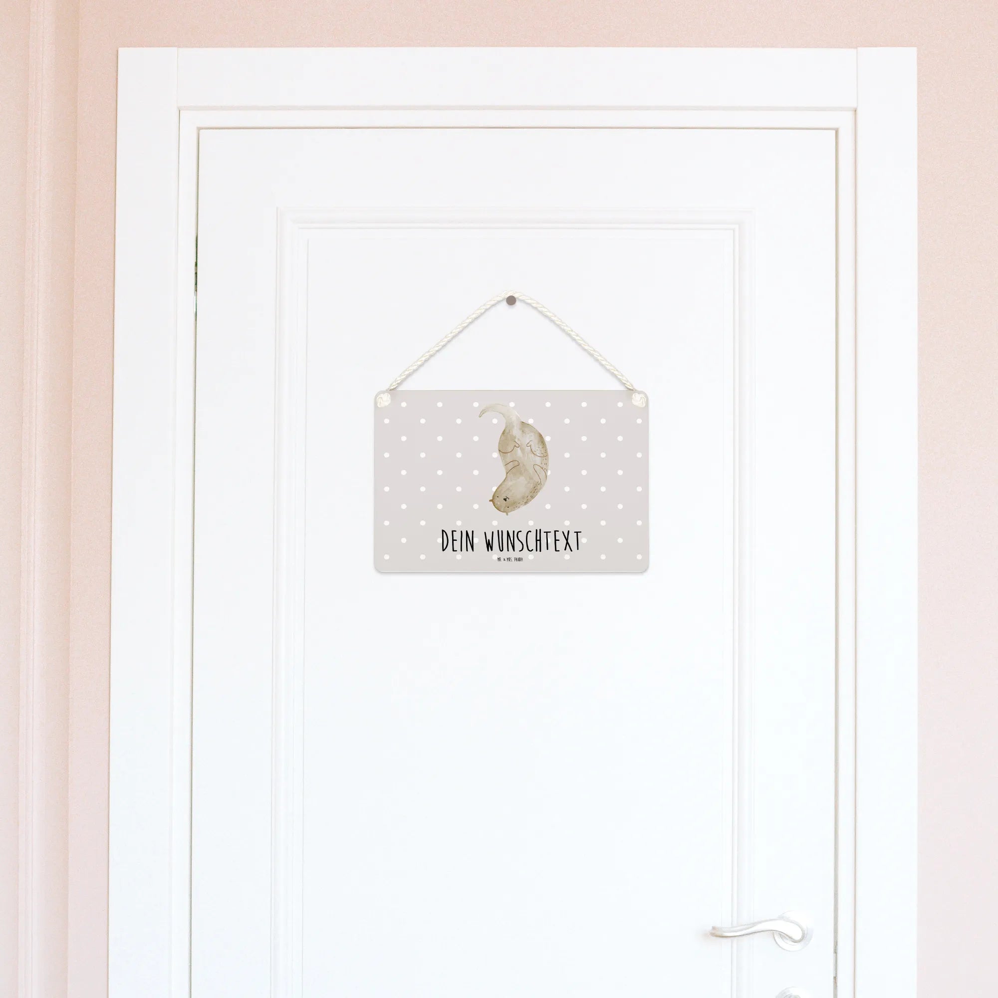 Spersonalizowany szyld dekoracyjny wydra Do góry nogami - DIN A6 - Pastelowy szary