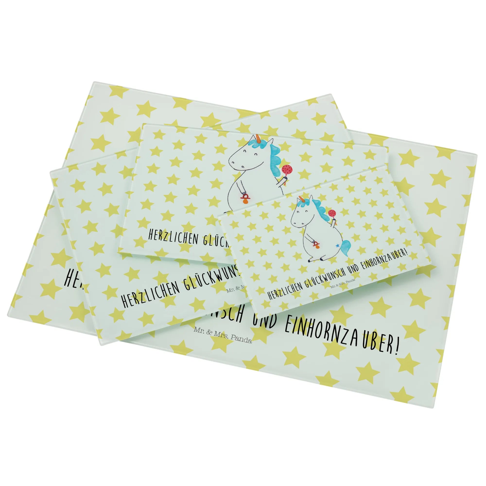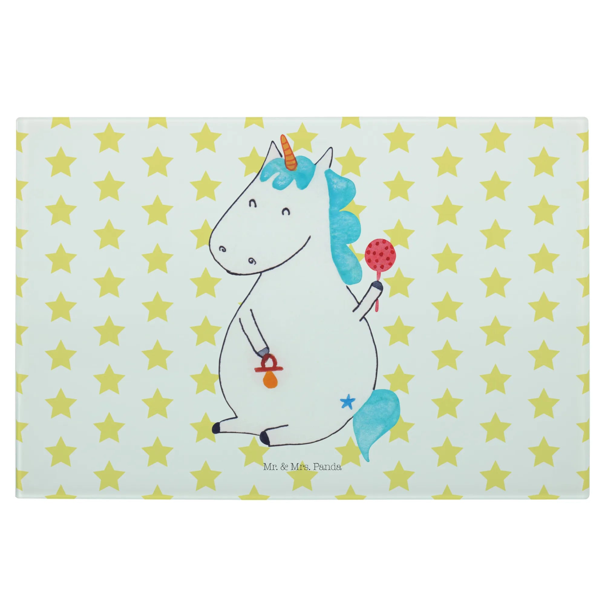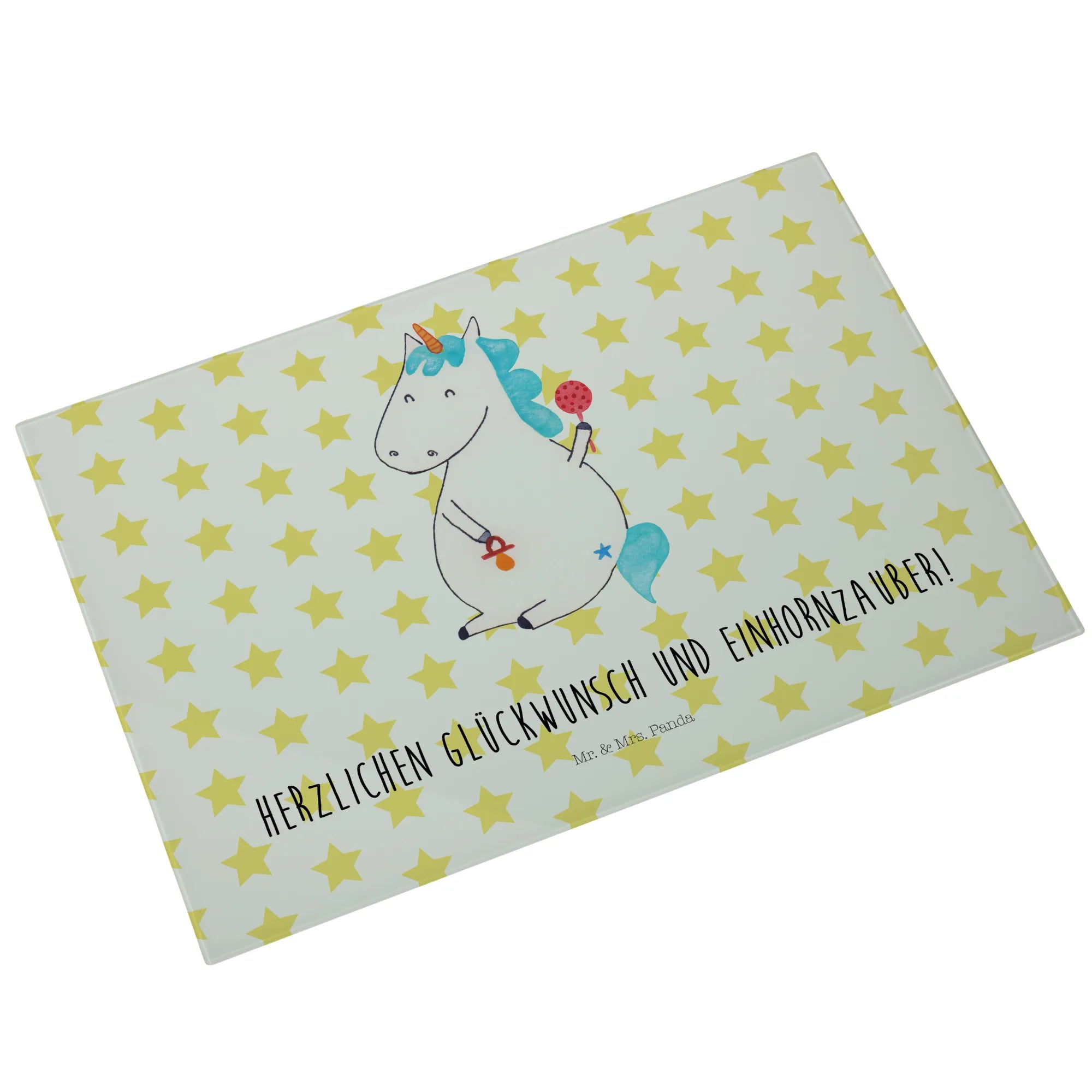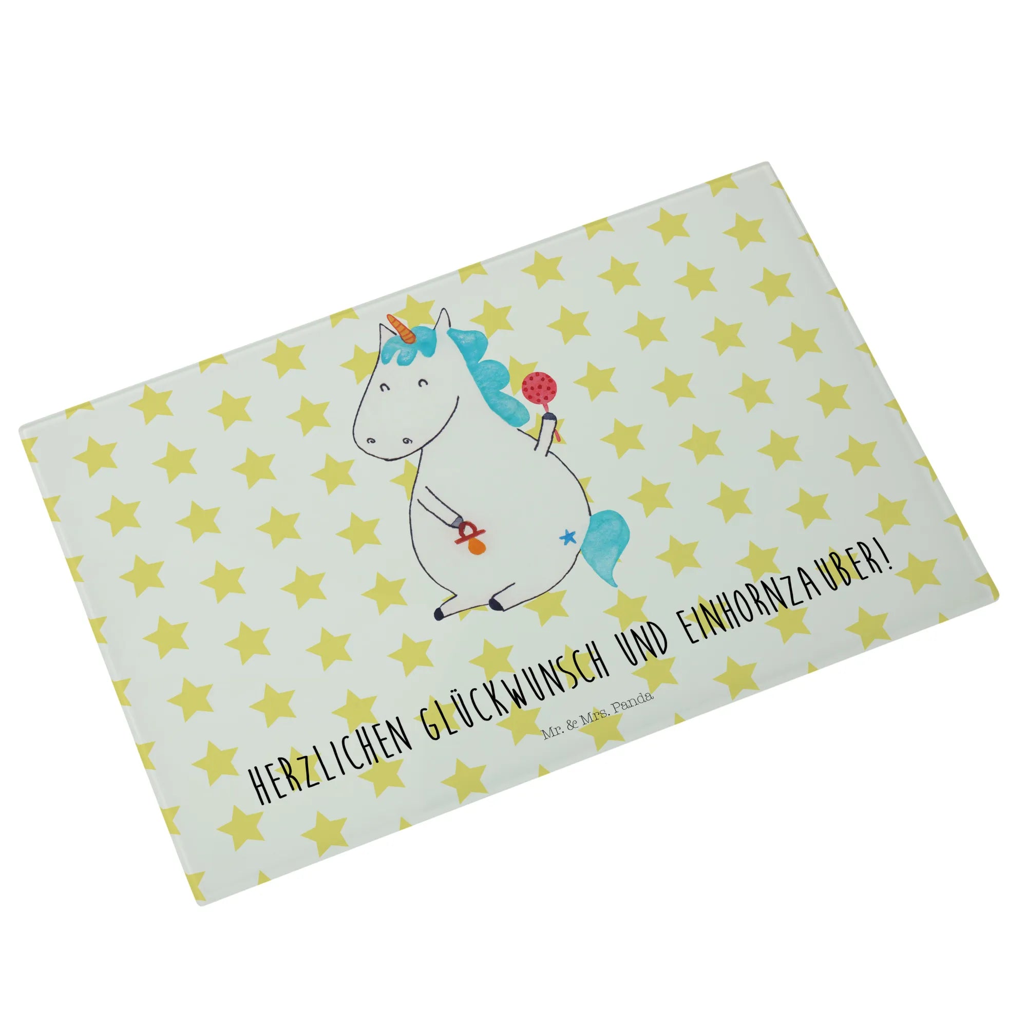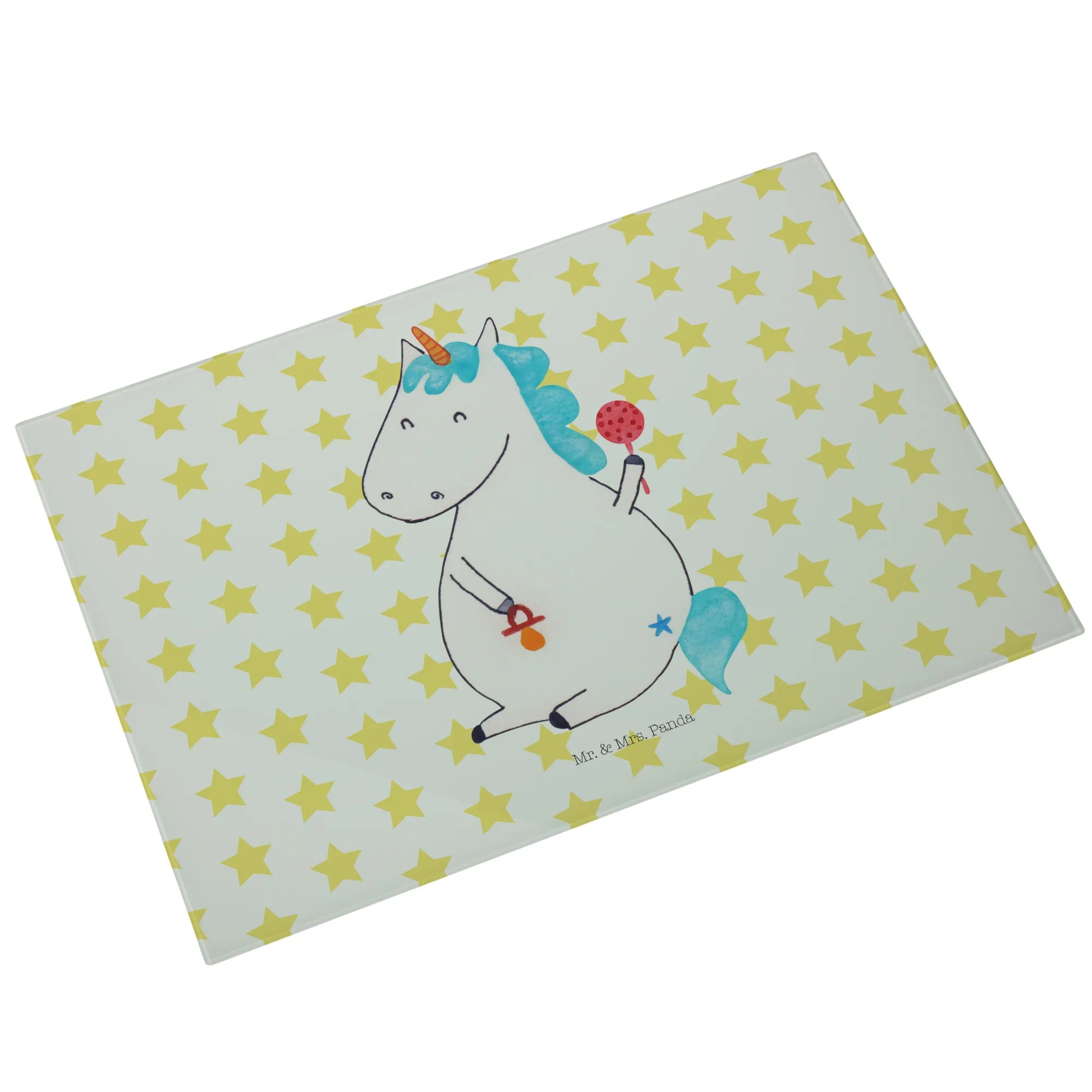 Średnia szklana deska do krojenia jednorożec Dziecko - Medium Glas Schneidbrett - z napisem - biały