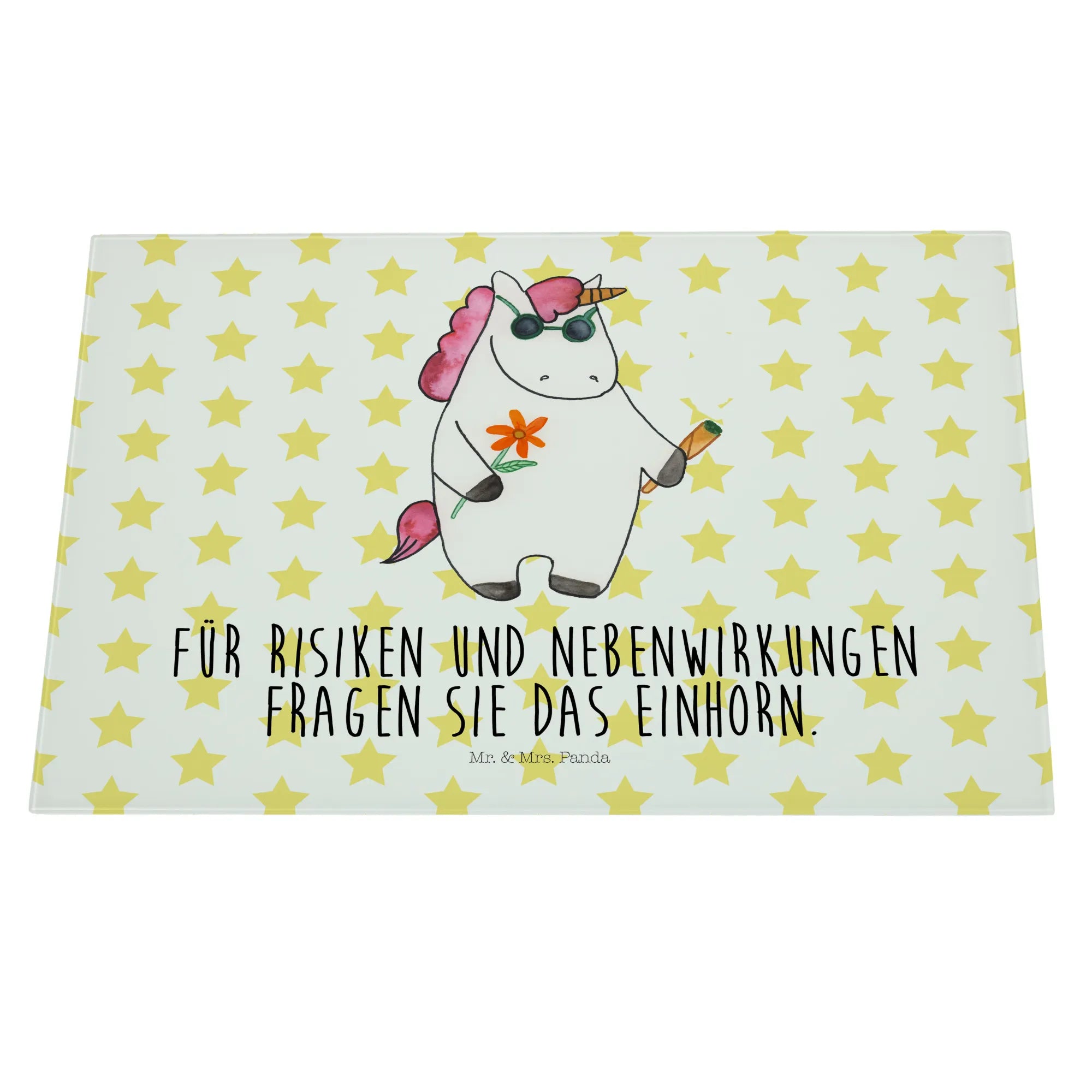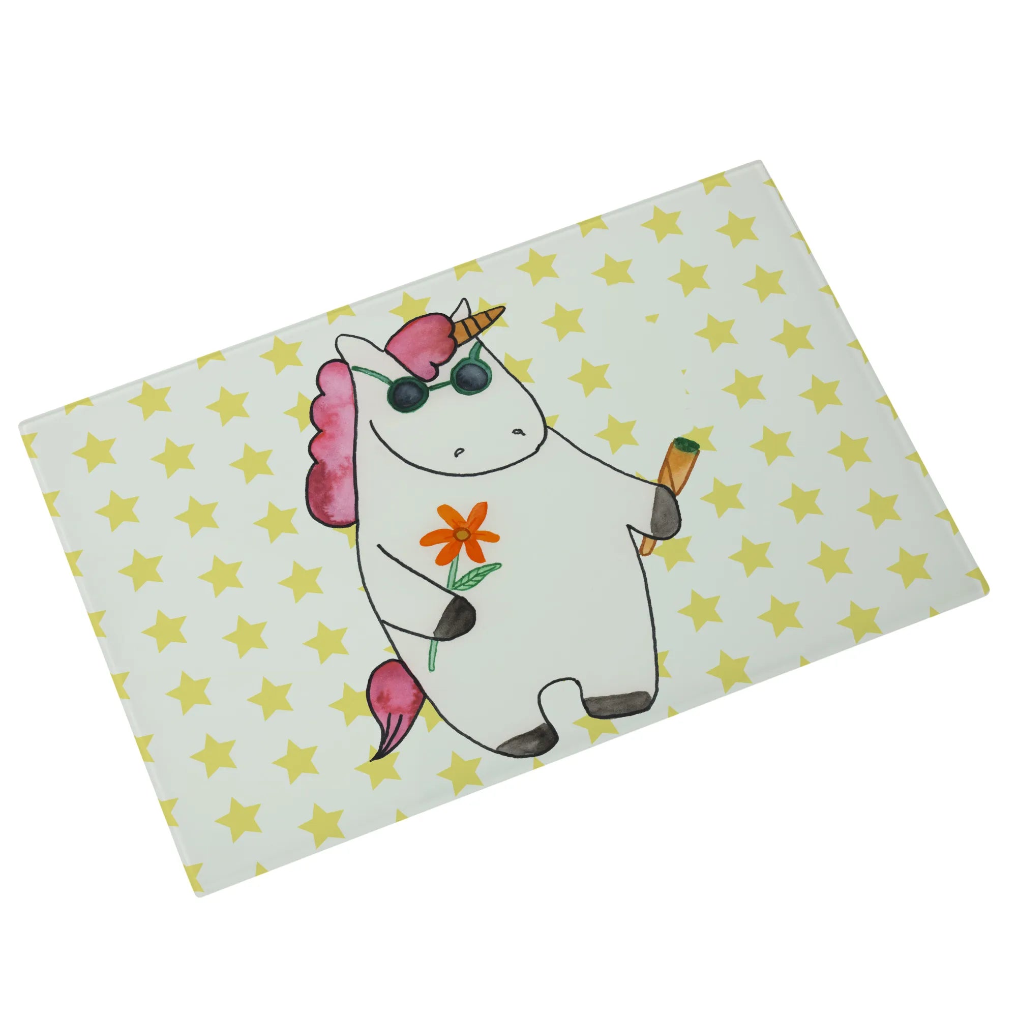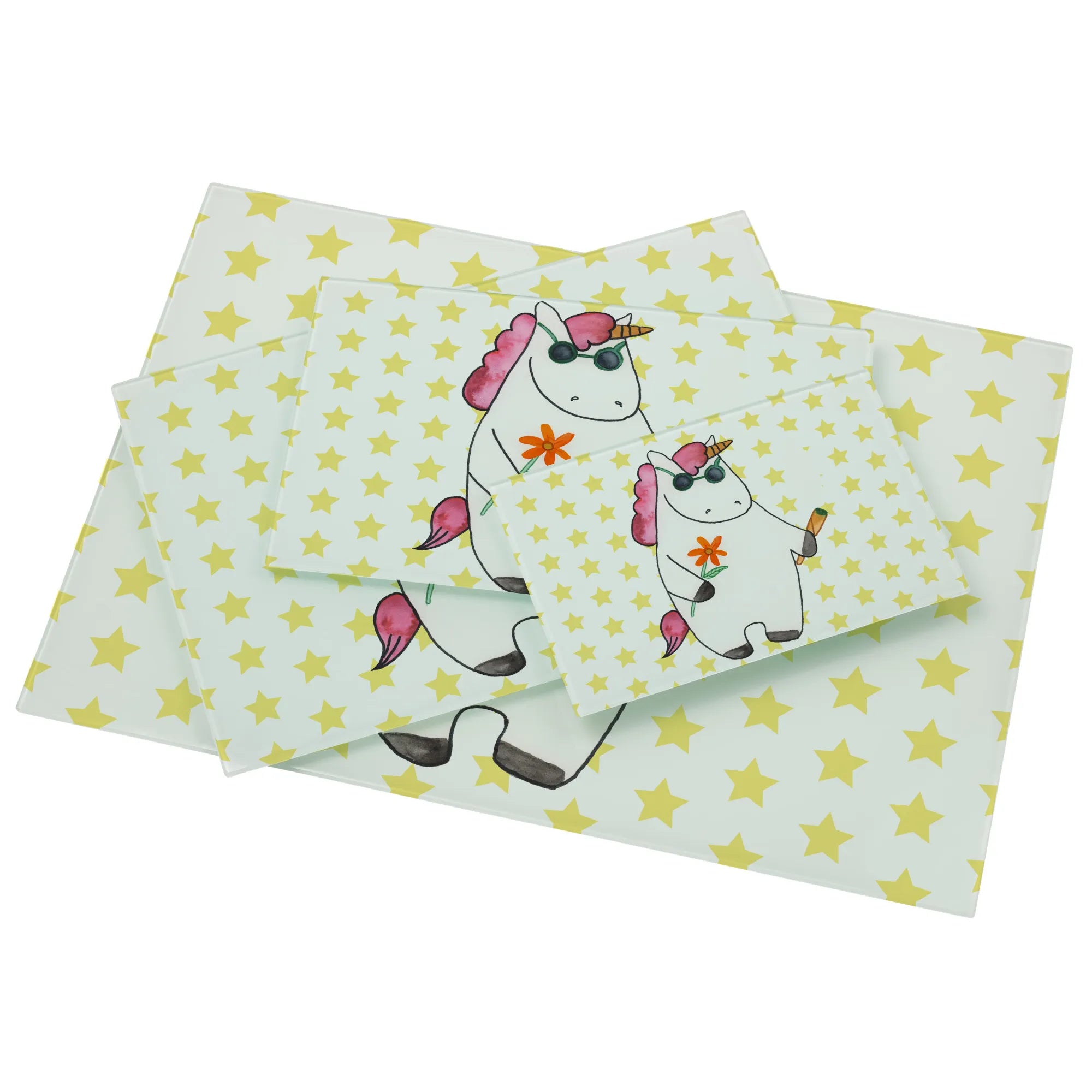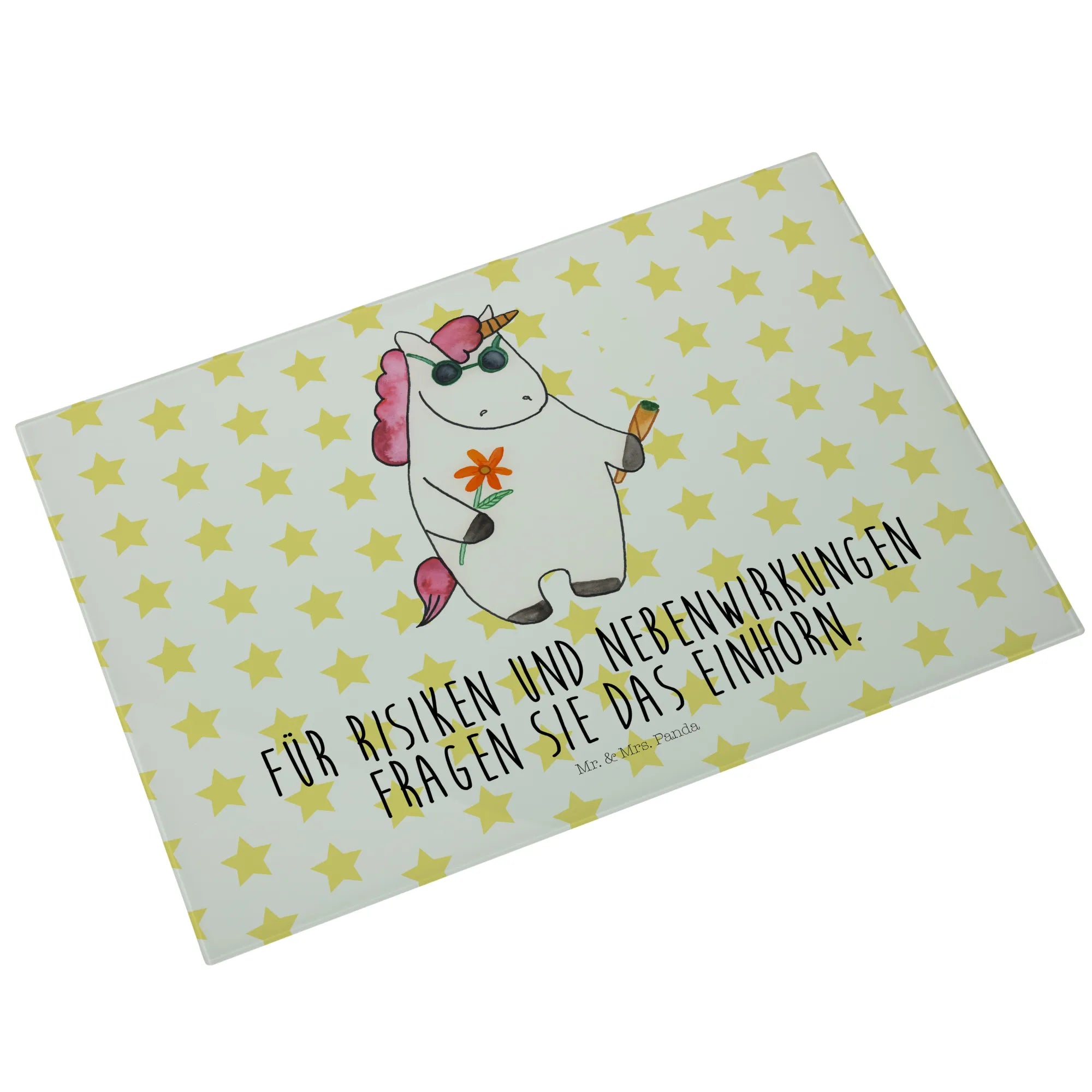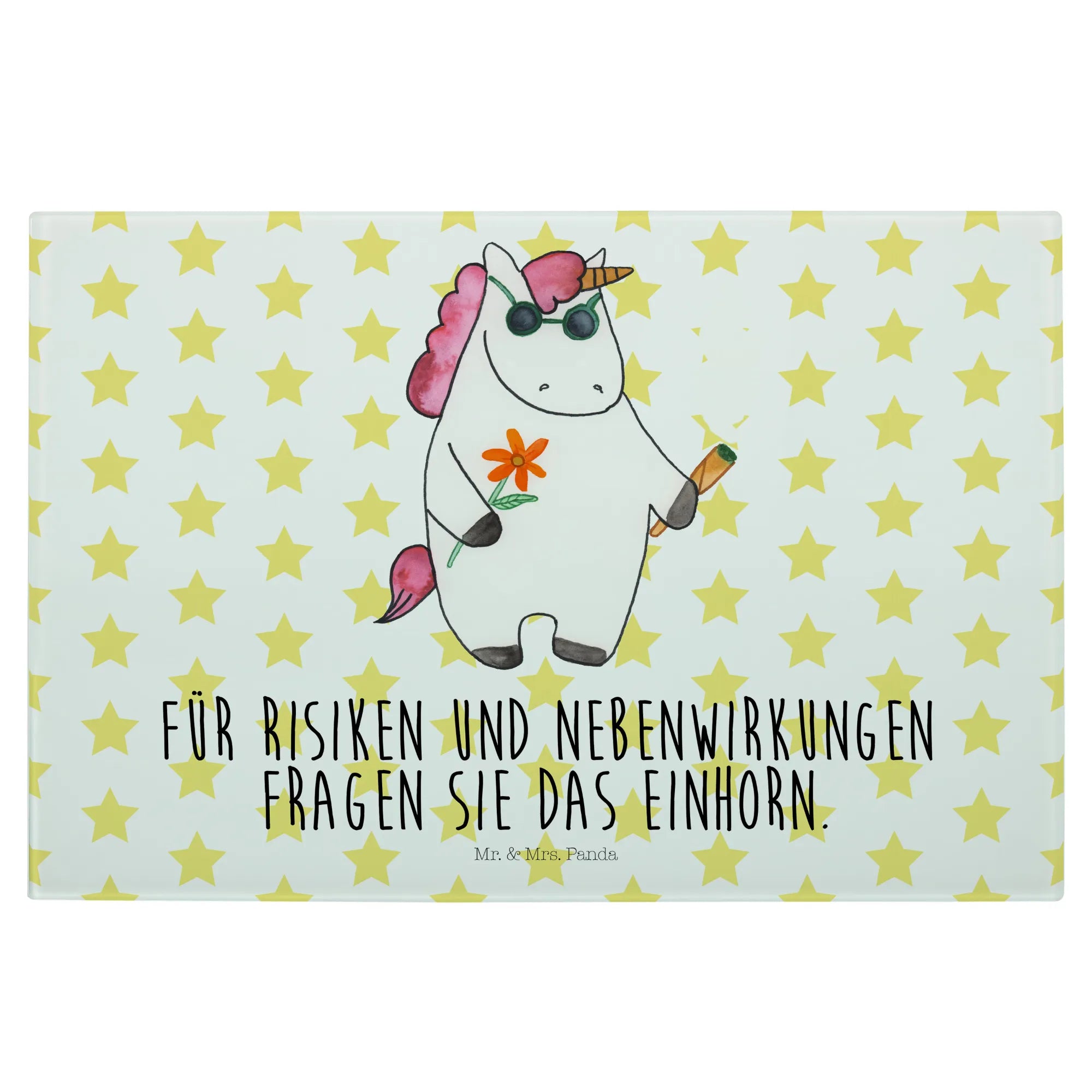 Średnia szklana deska do krojenia Jednorożec Woodstock - Medium Glas Schneidbrett - z napisem - Biały