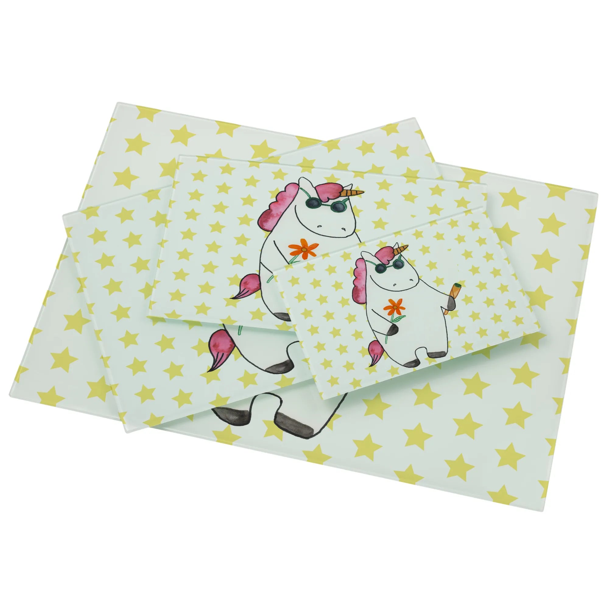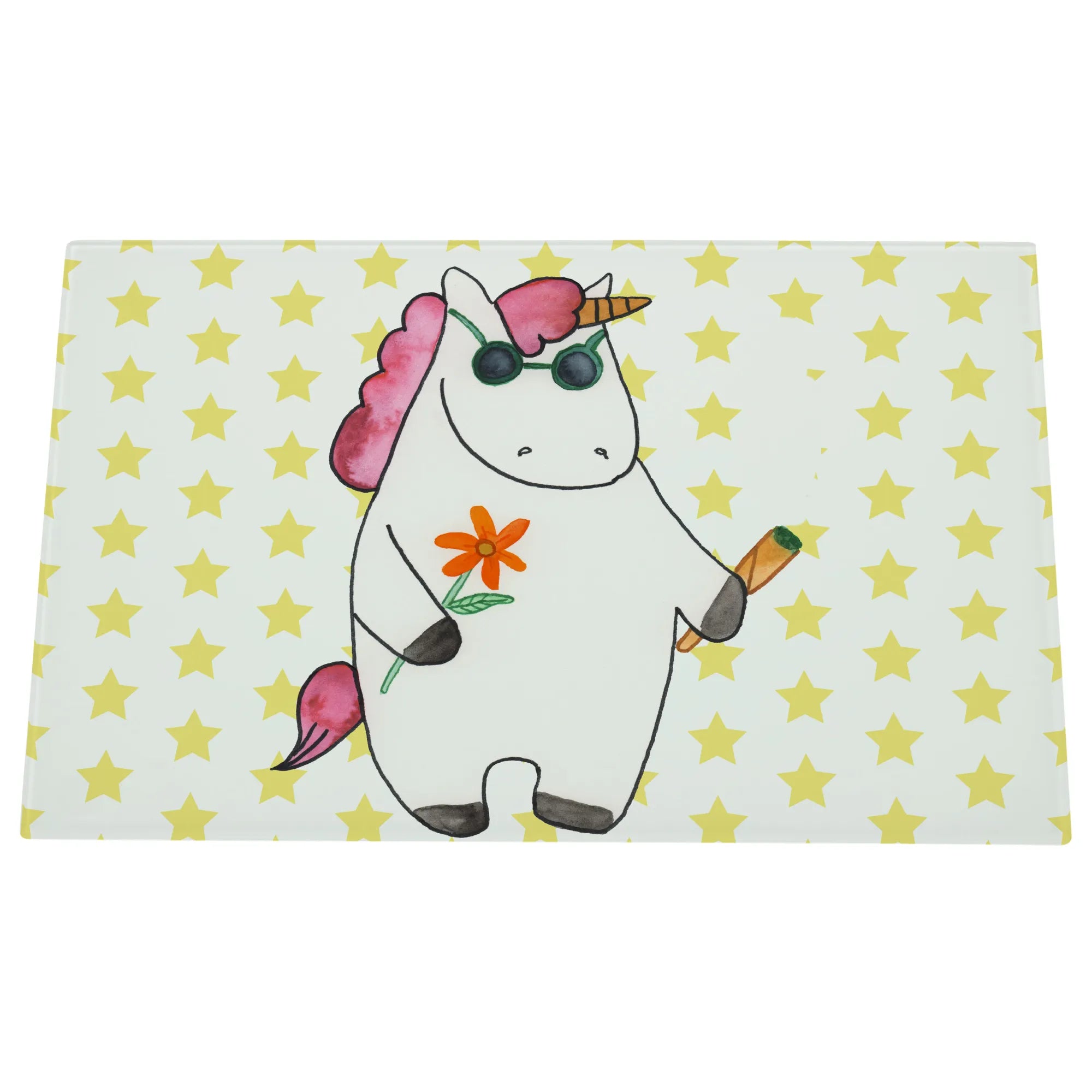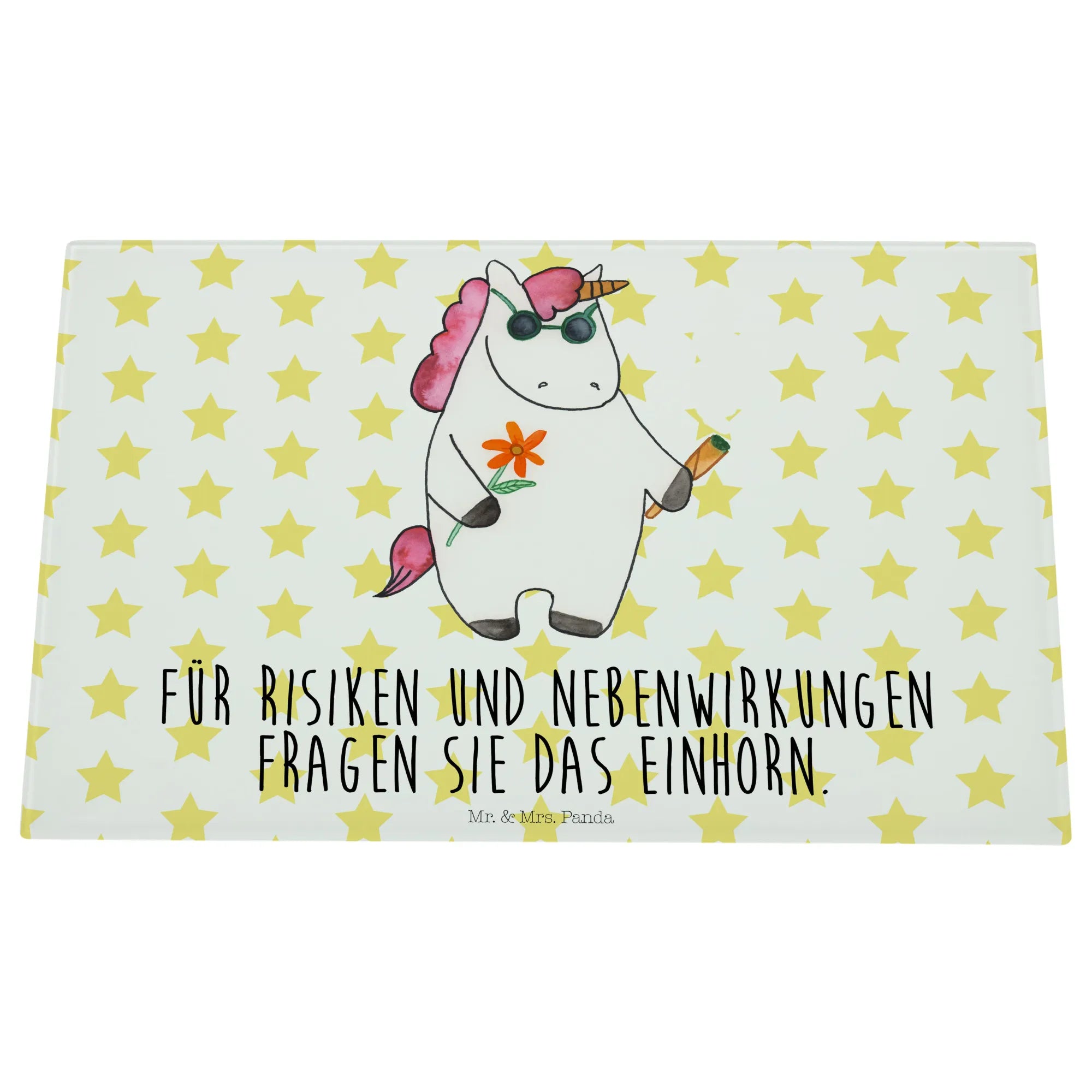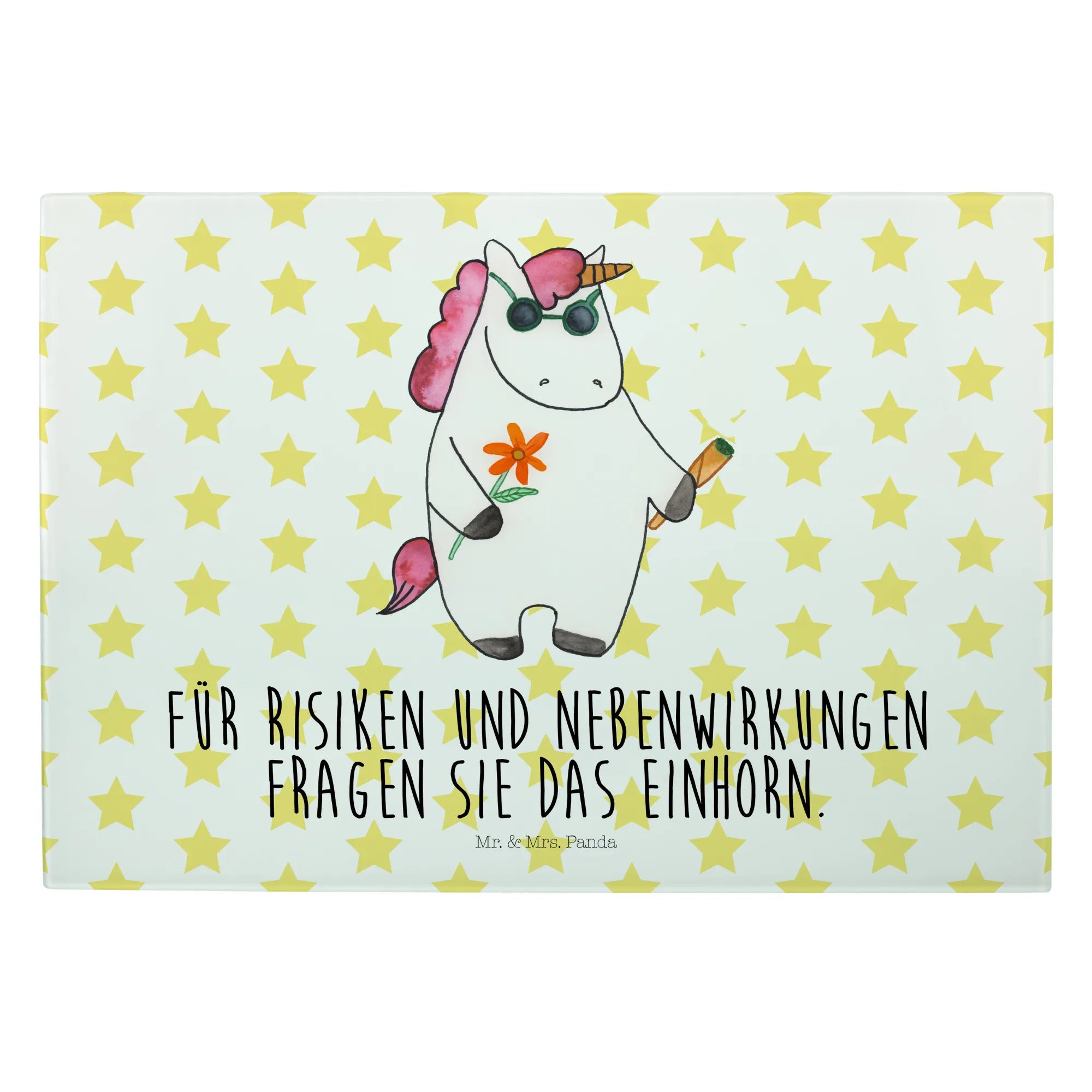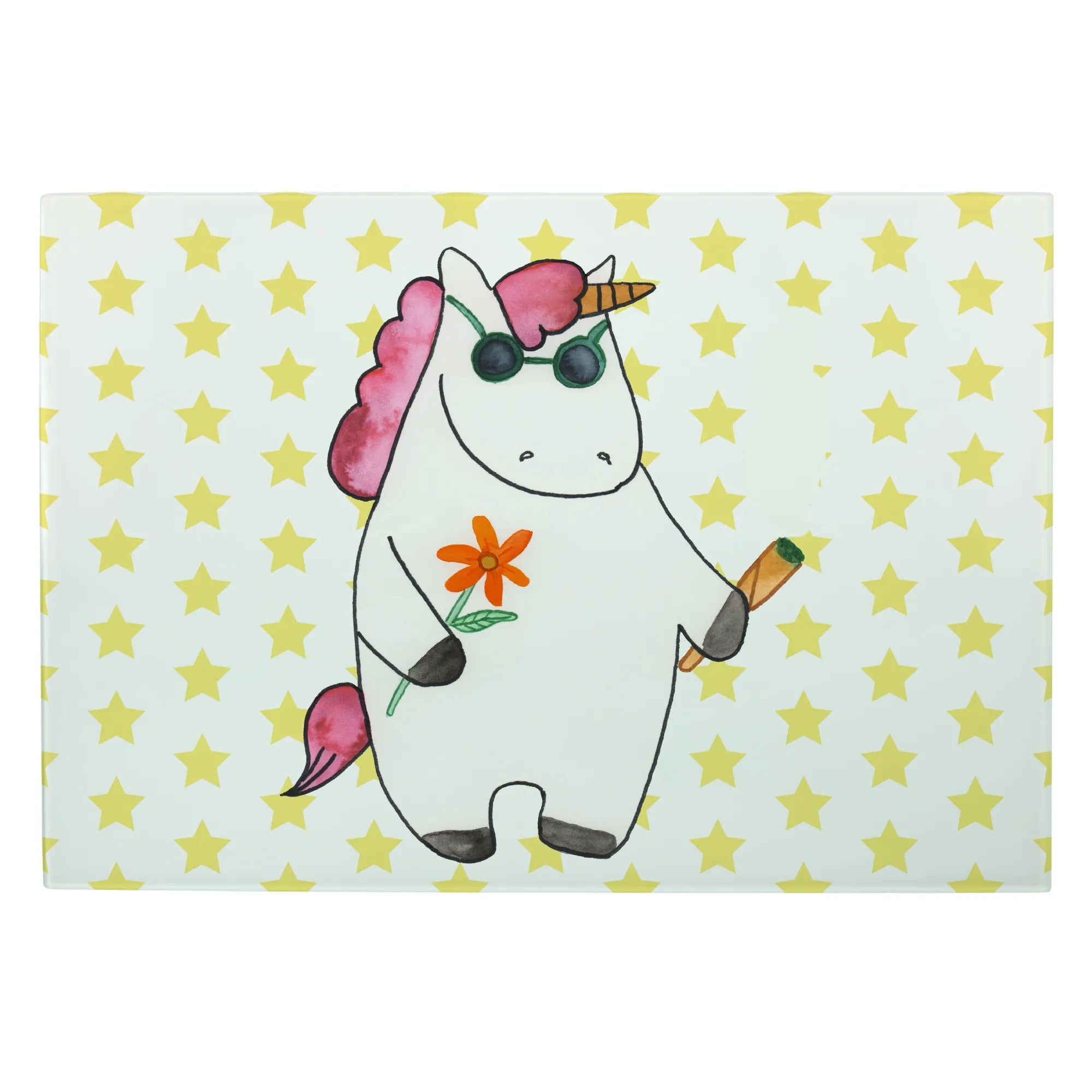Średnia szklana deska do krojenia Jednorożec Woodstock - Medium Glas Schneidbrett - z napisem - Biały