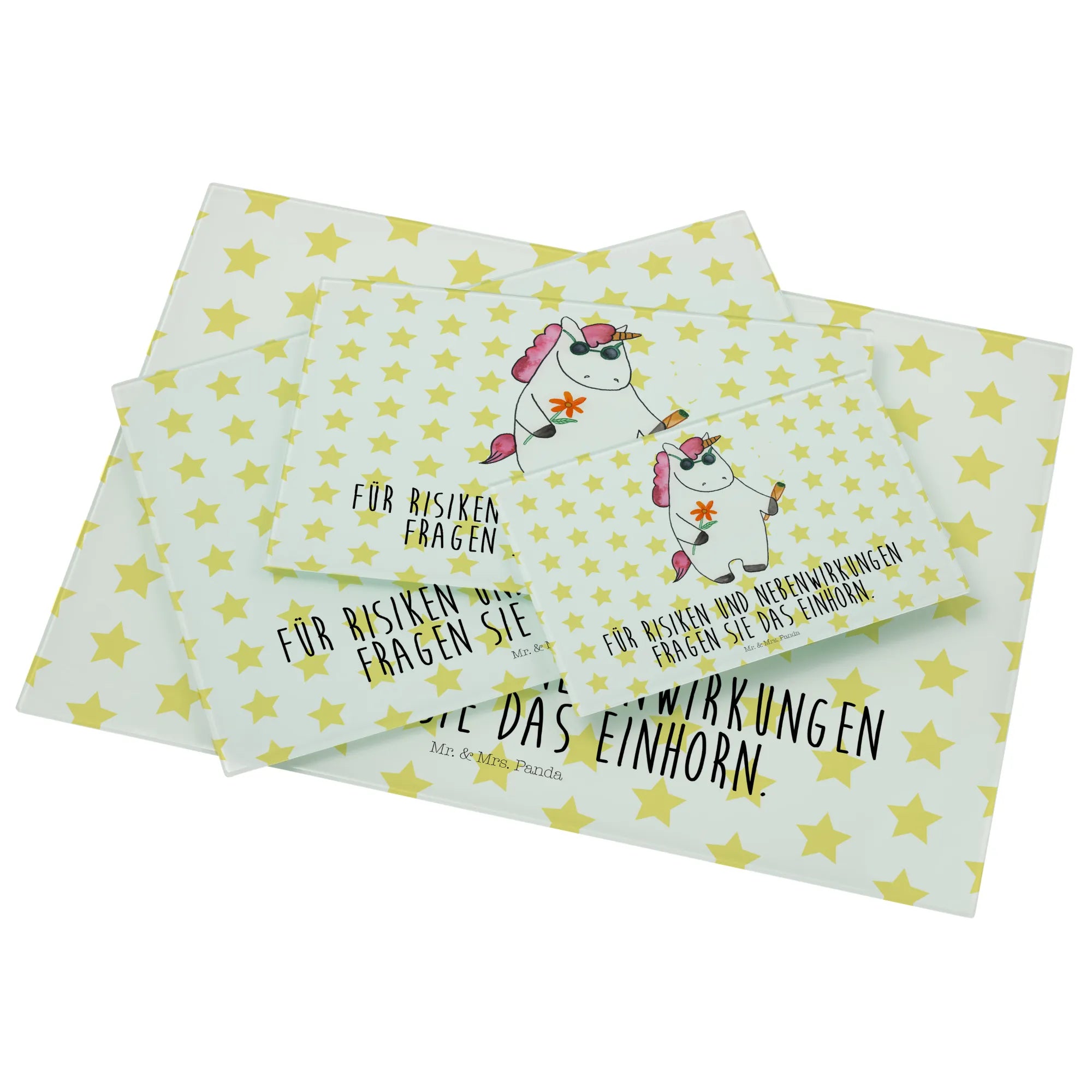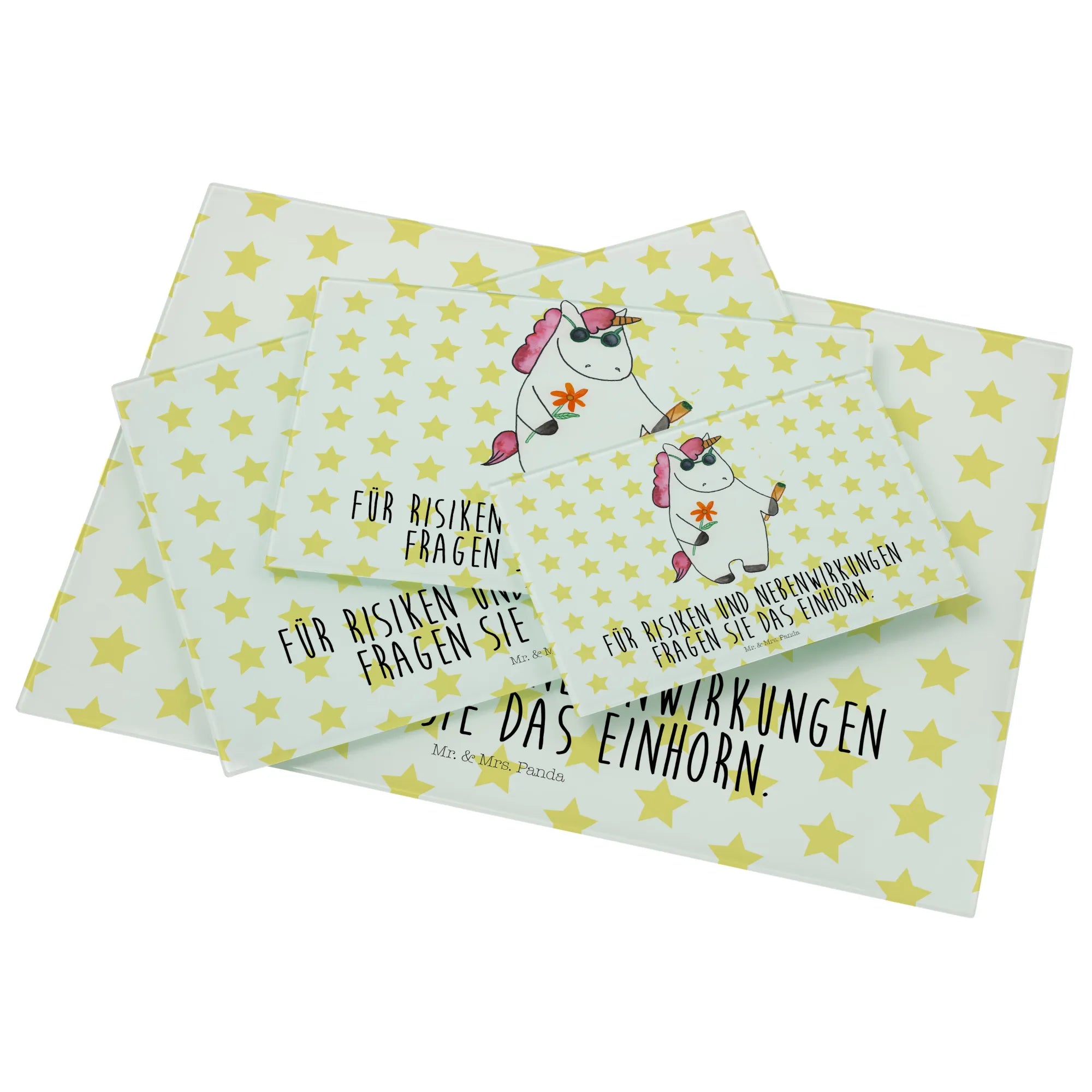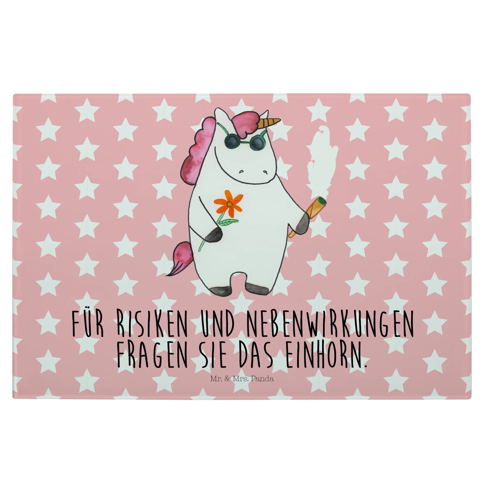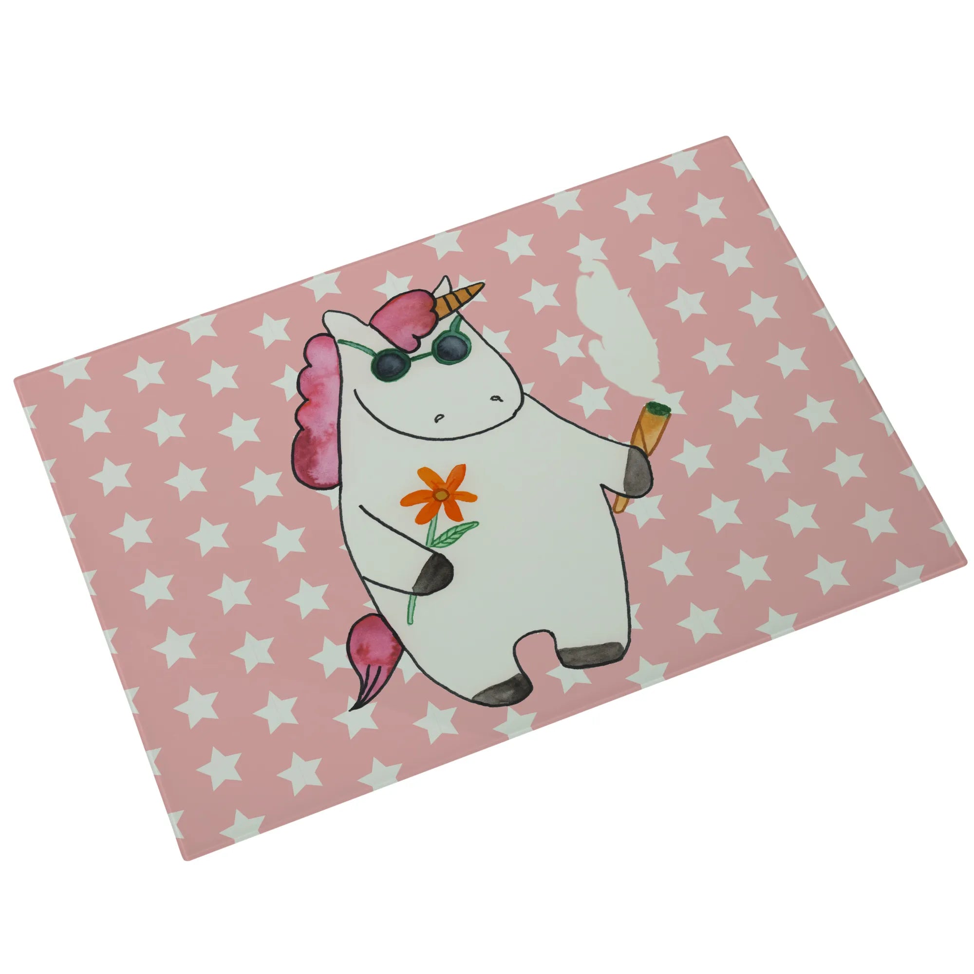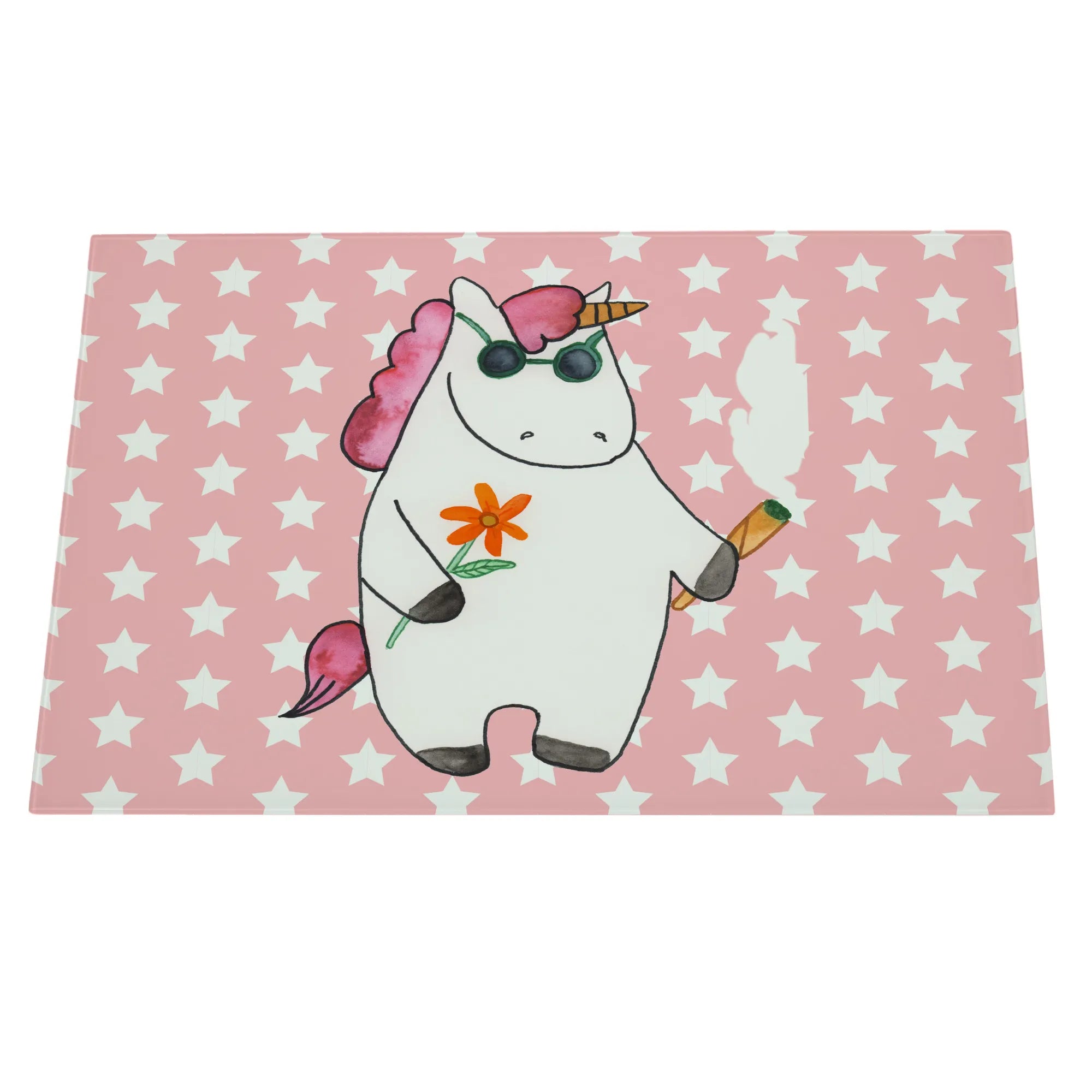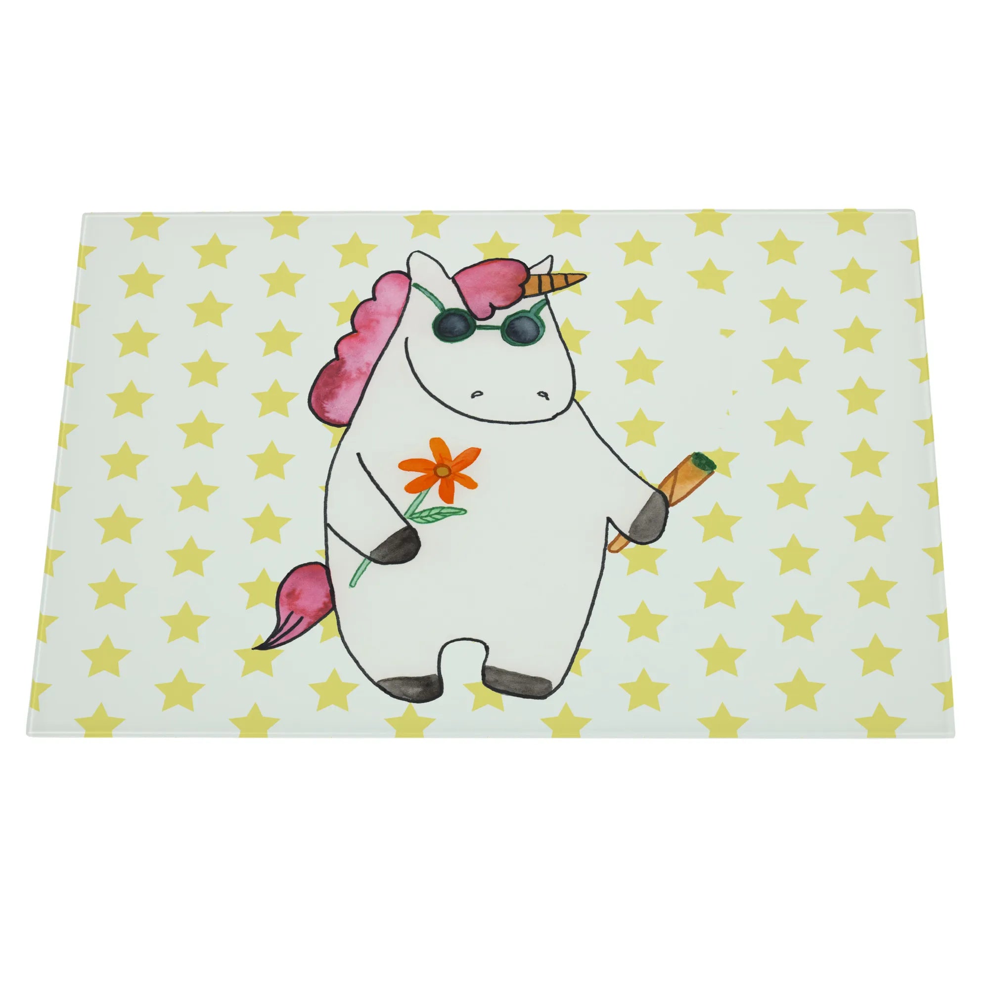 Średnia szklana deska do krojenia Jednorożec Woodstock - Medium Glas Schneidbrett - z napisem - Biały