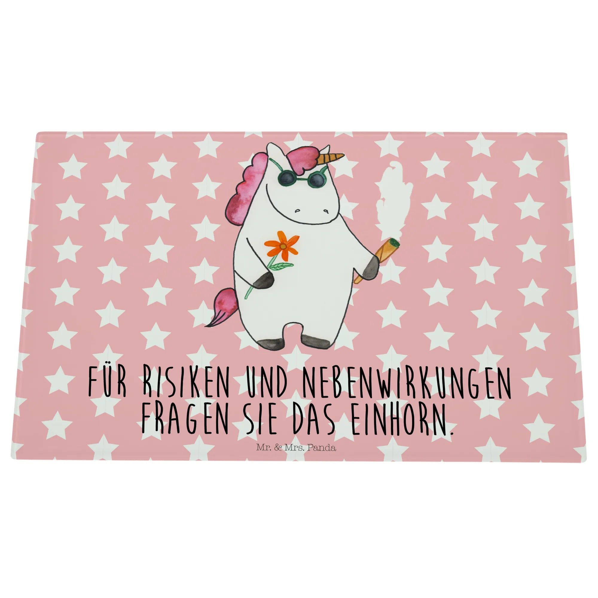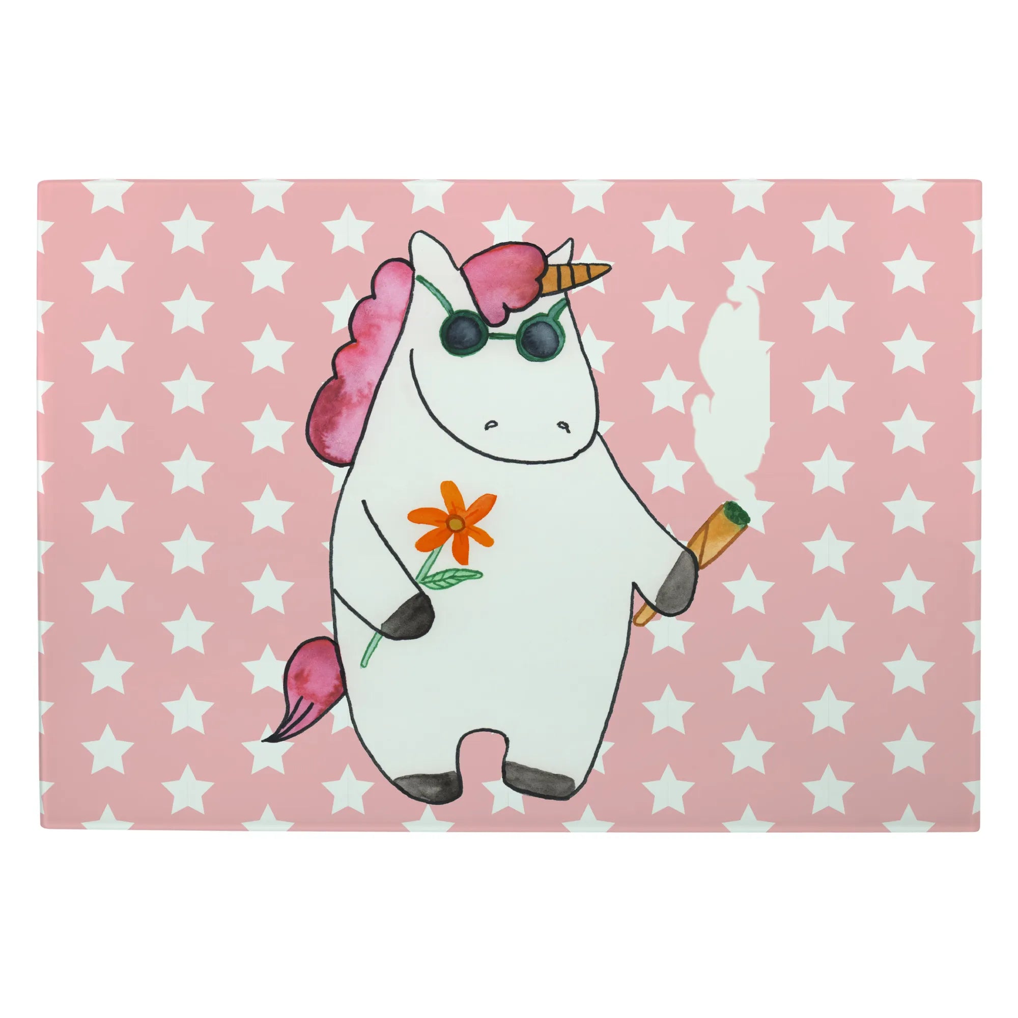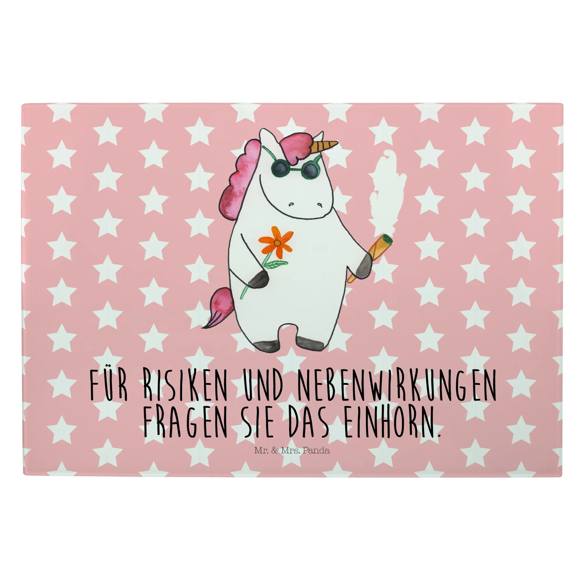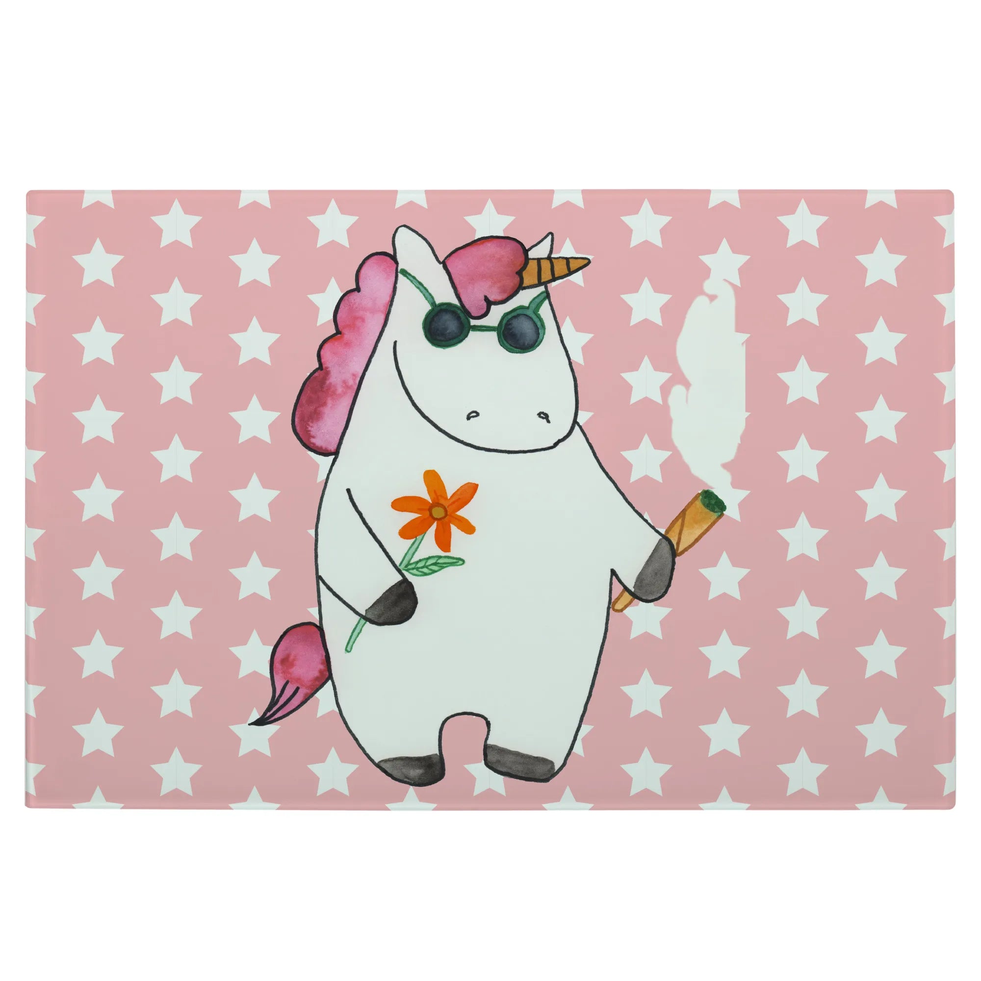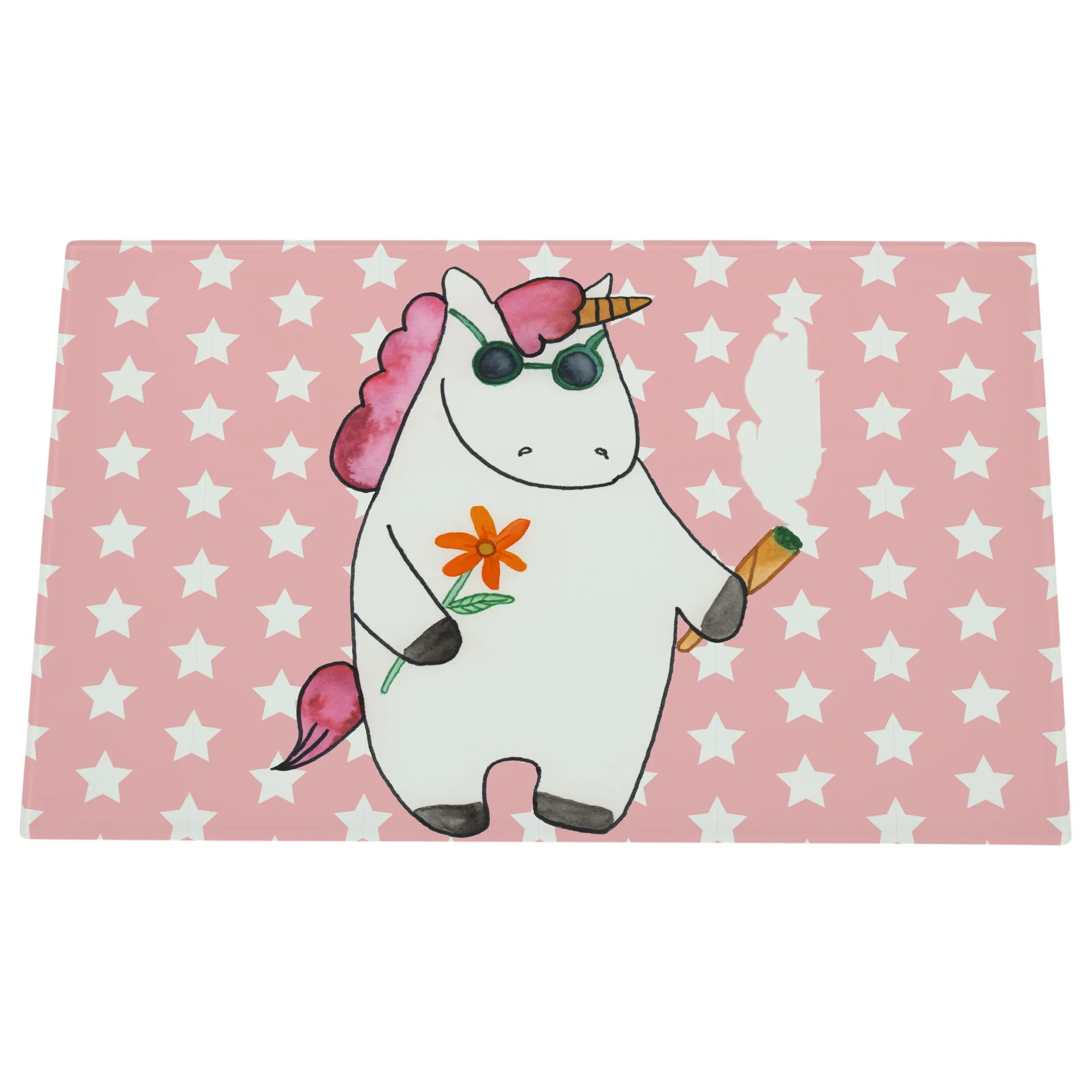 Średnia szklana deska do krojenia Jednorożec Woodstock - Medium Glas Schneidbrett - z napisem - Biały
