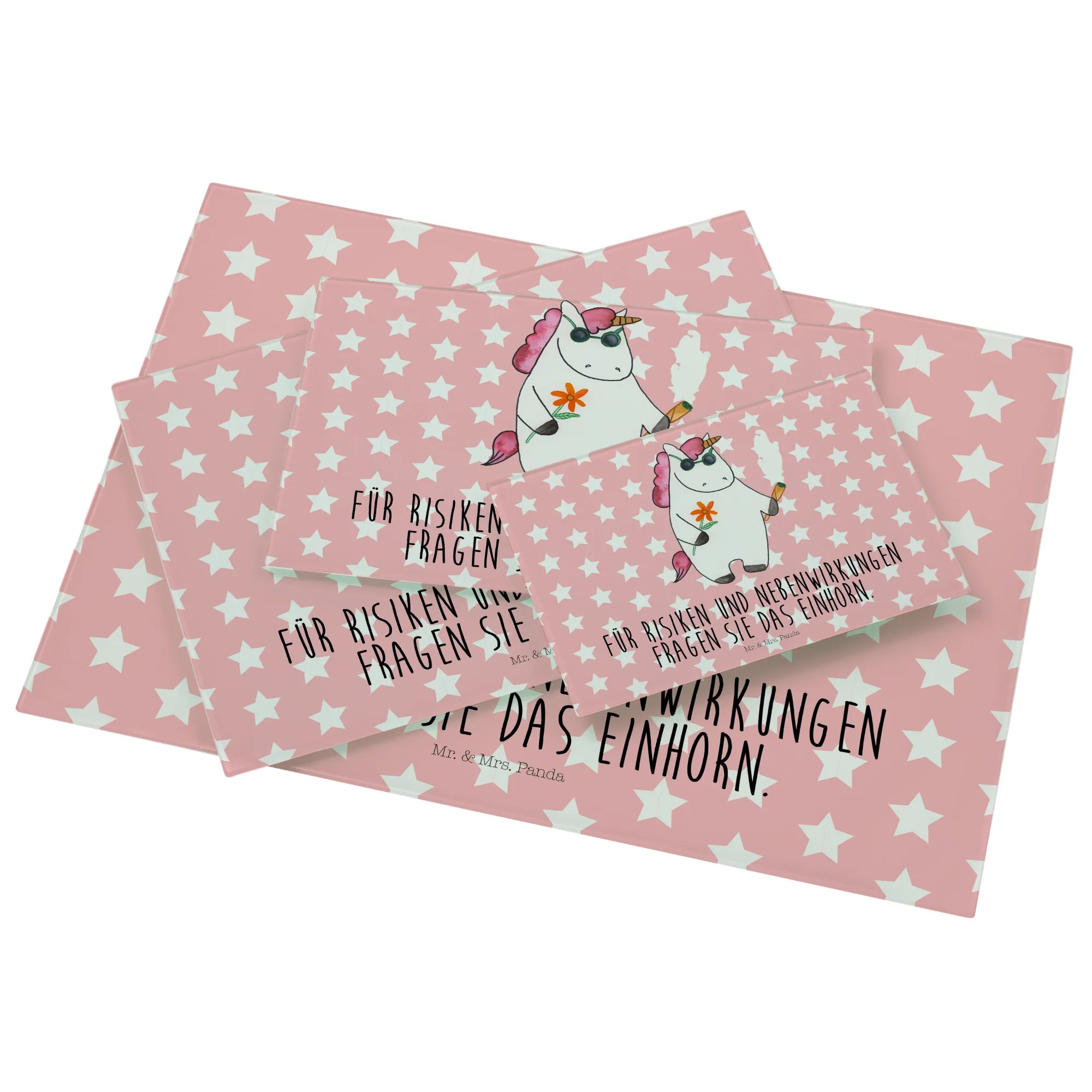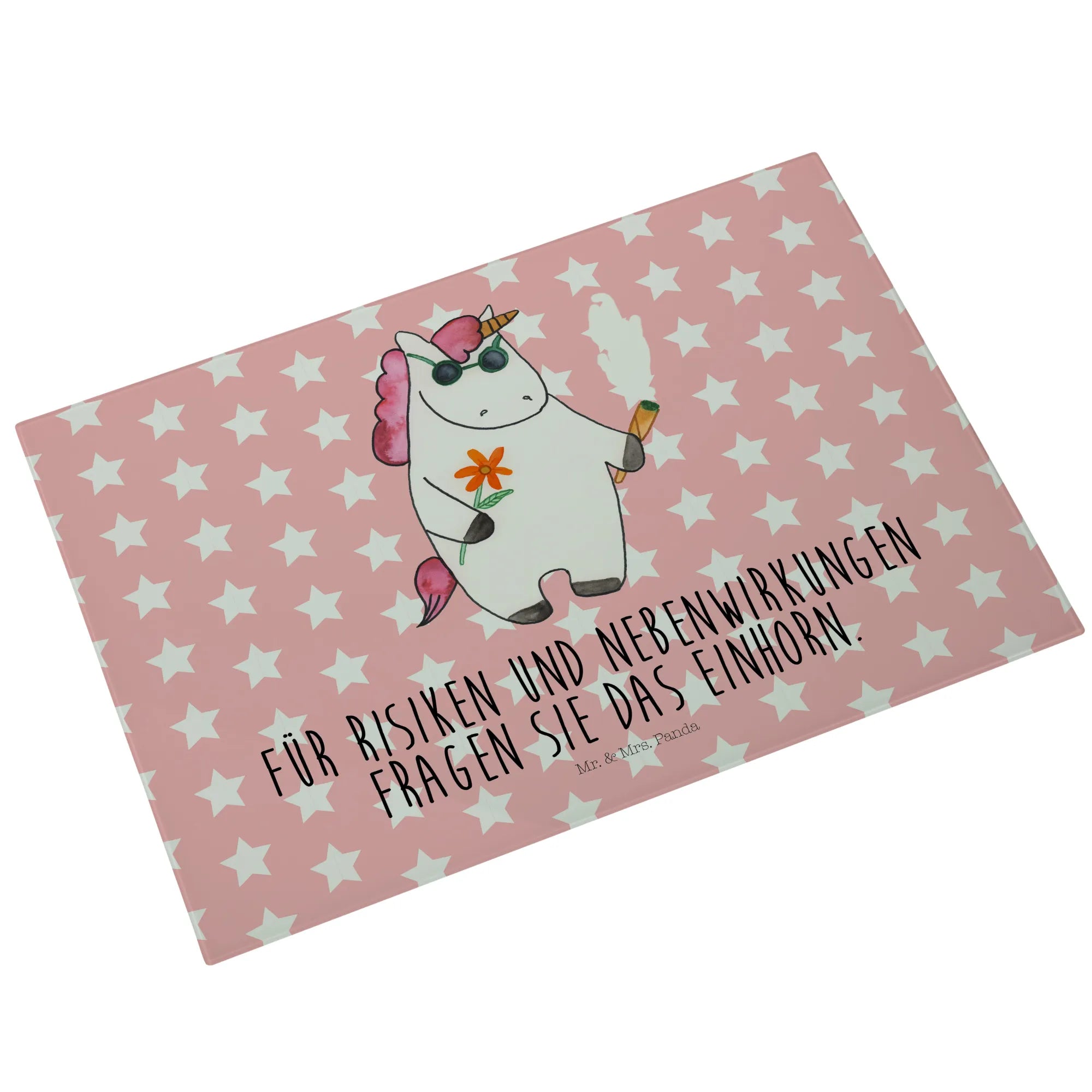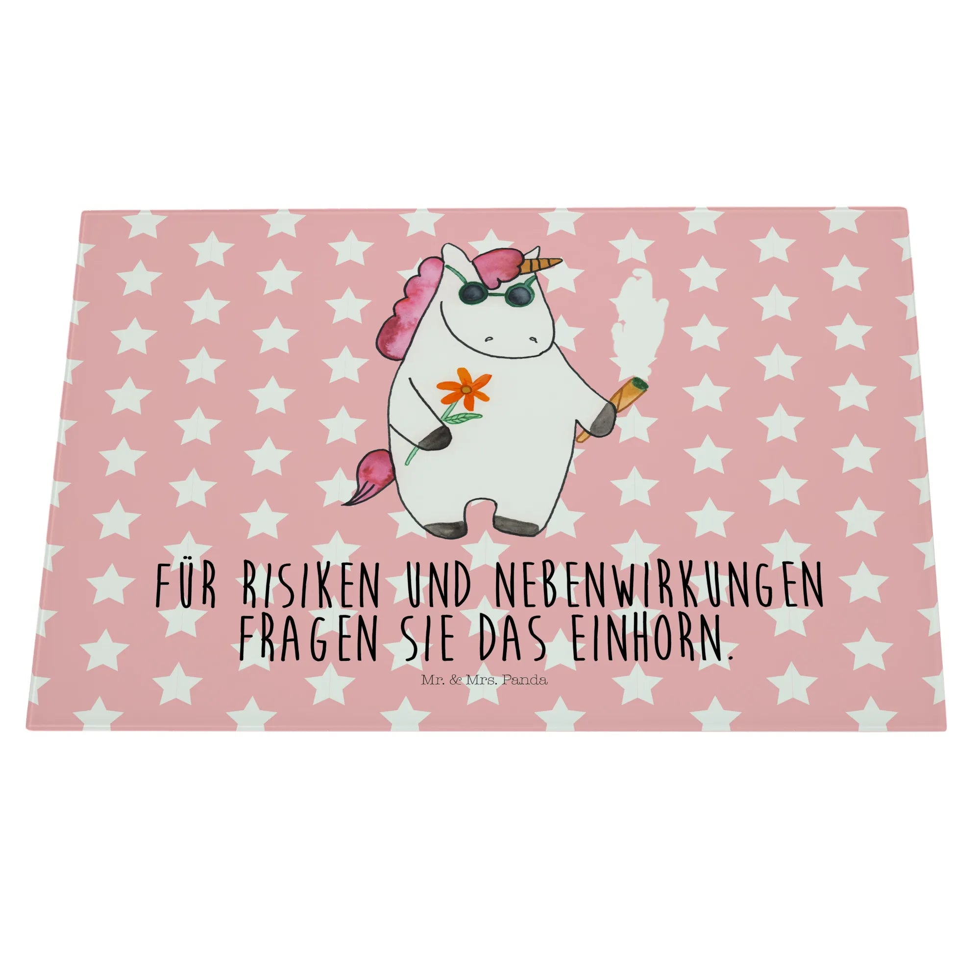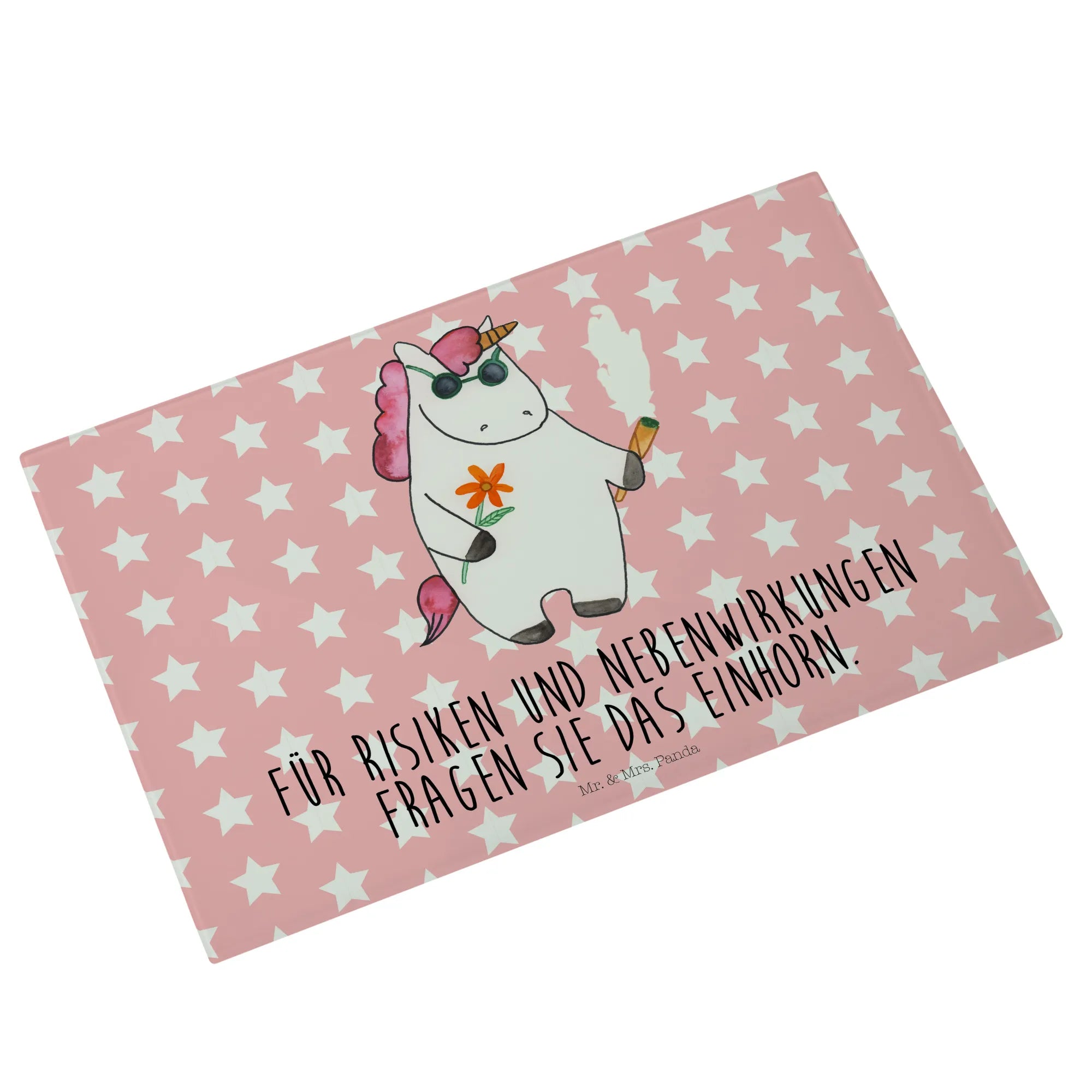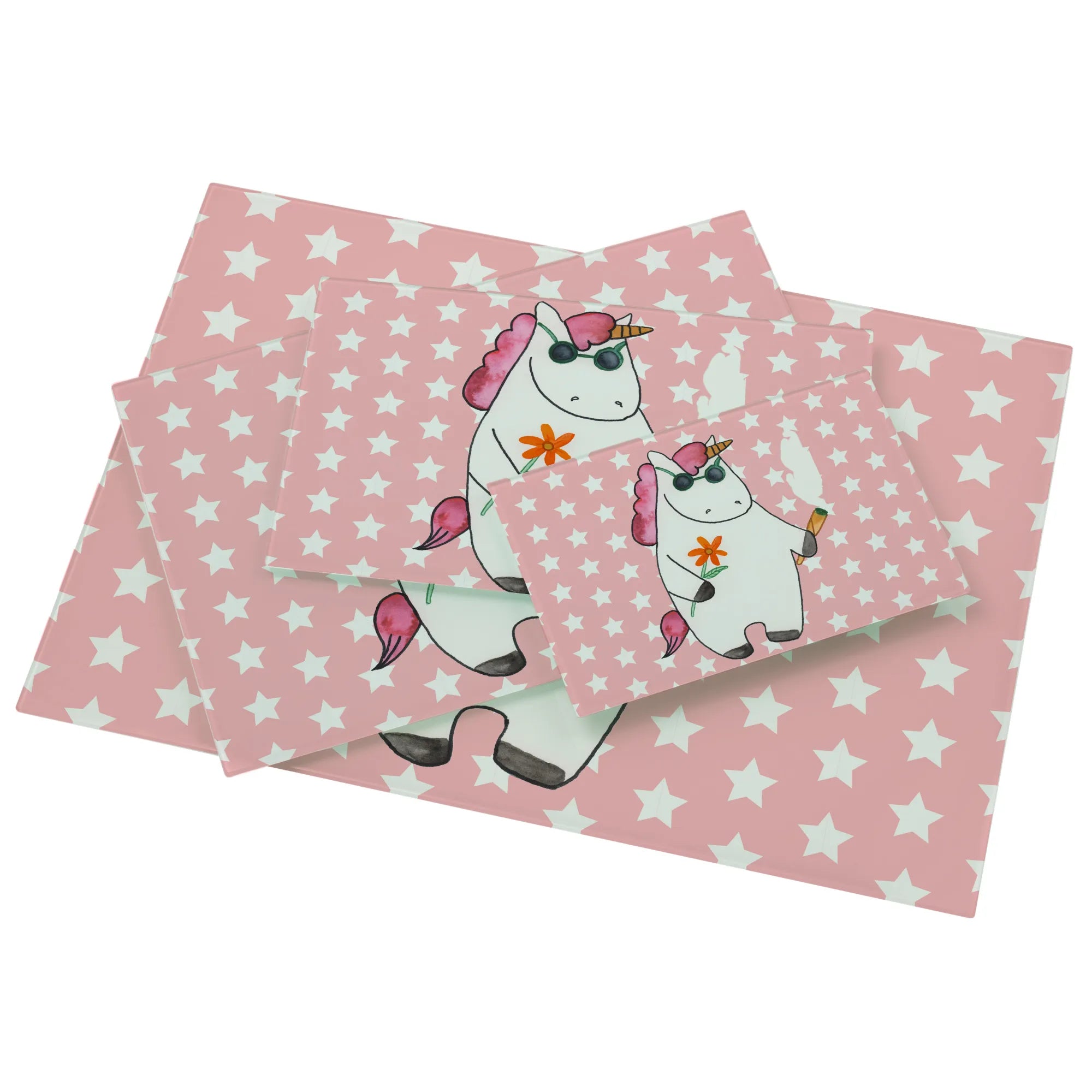 Średnia szklana deska do krojenia Jednorożec Woodstock - Medium Glas Schneidbrett - z napisem - Biały