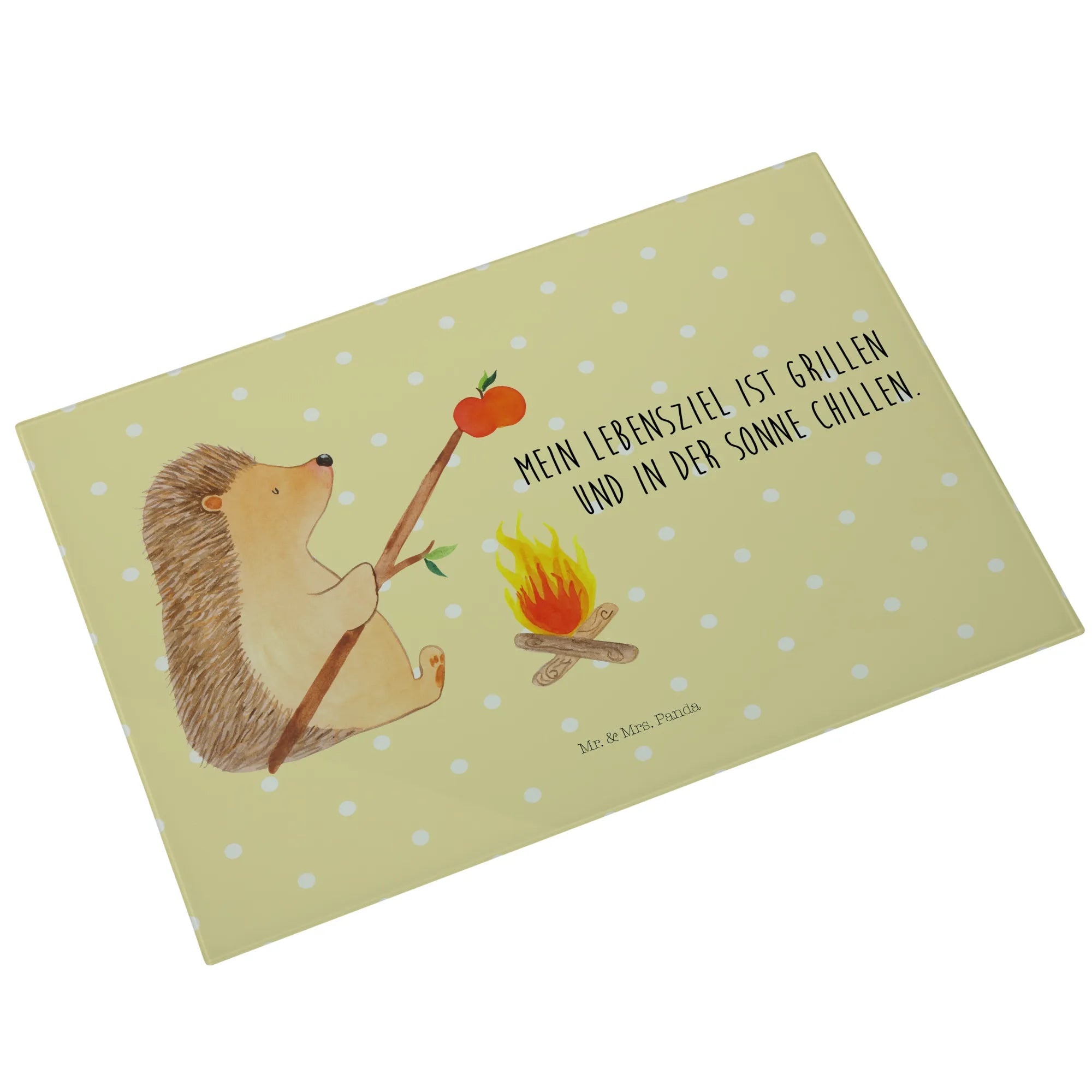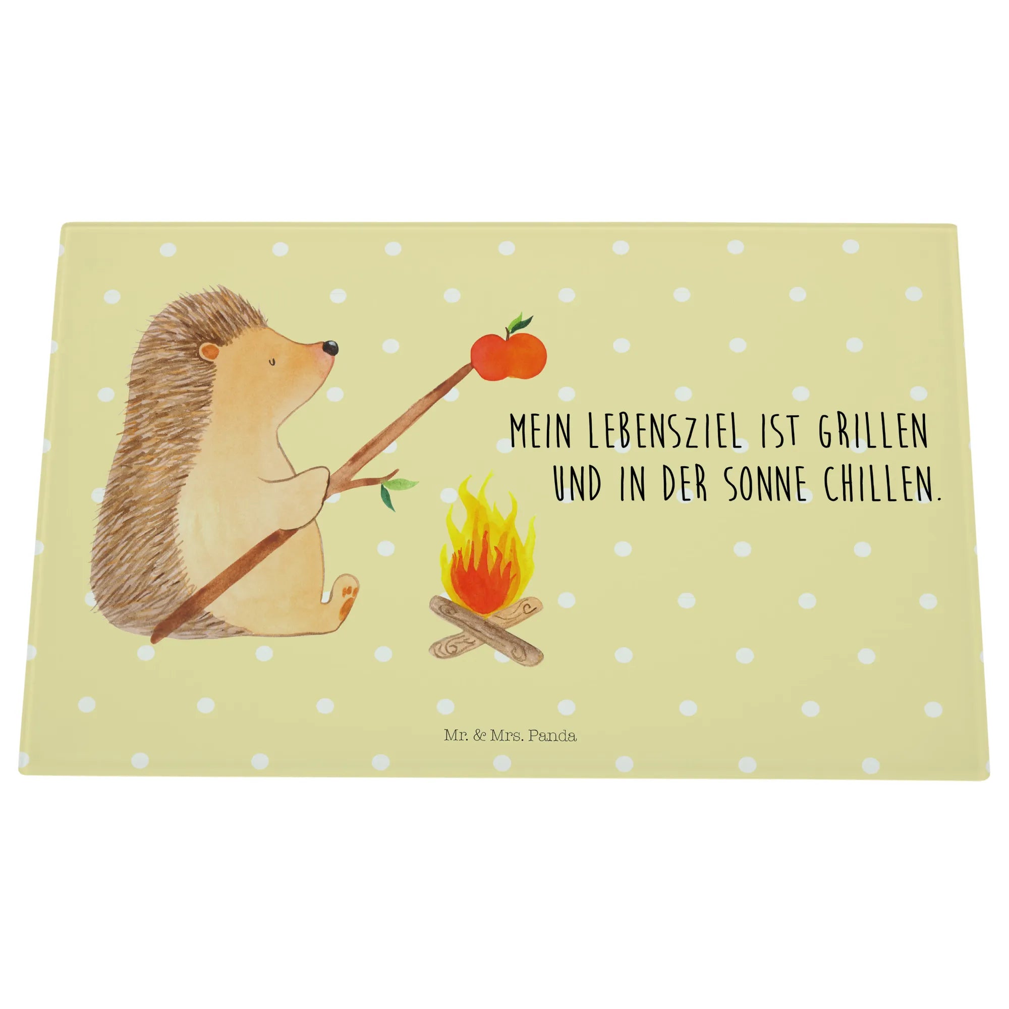 Średnia szklana deska do krojenia jeż Grillowanie - Medium Glas Schneidbrett - z napisem - biały