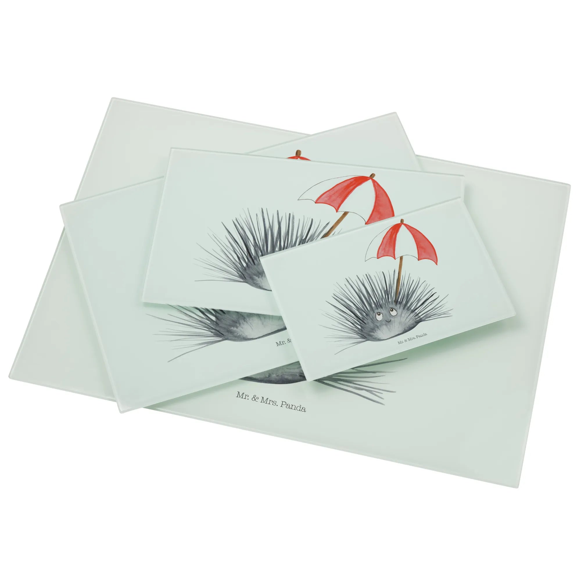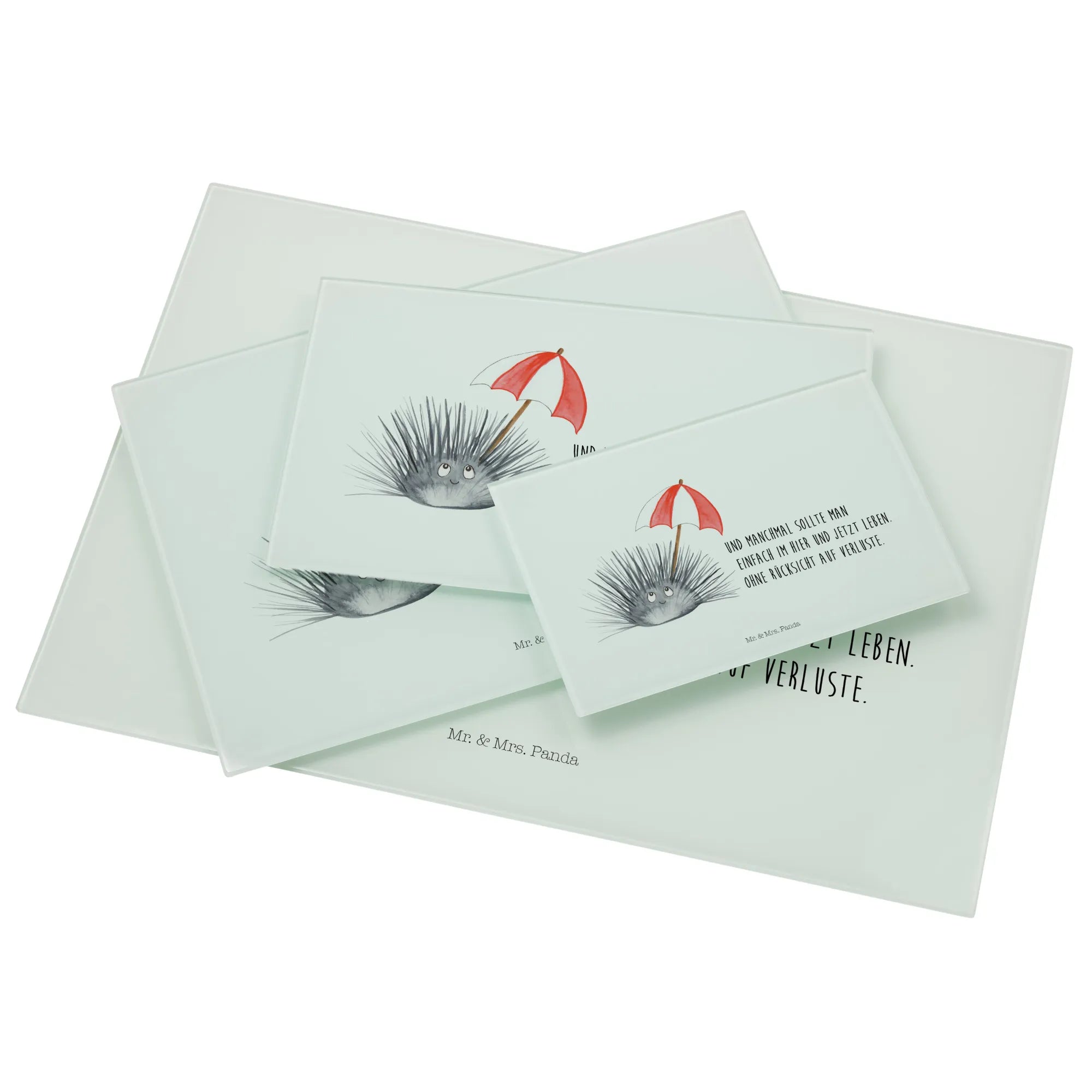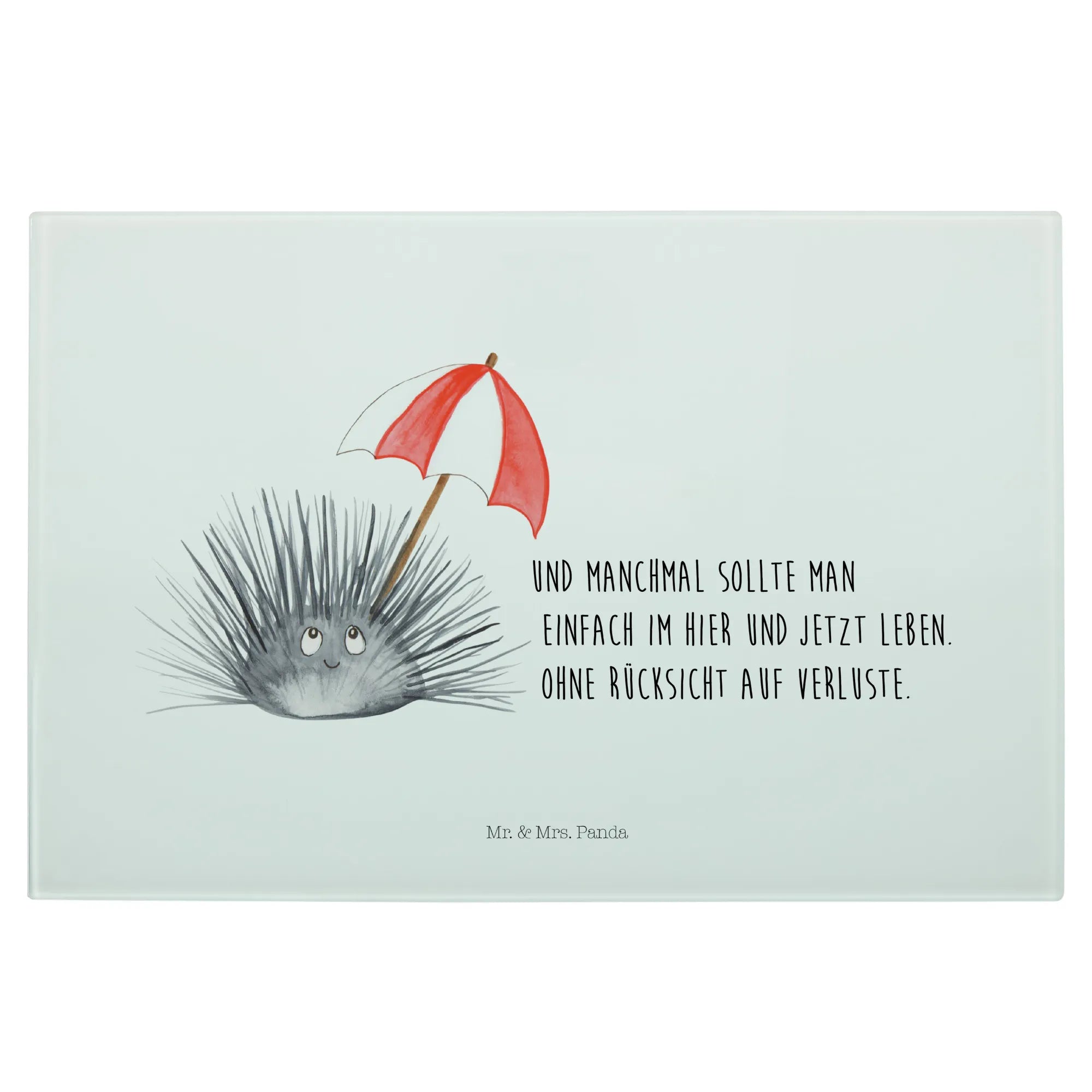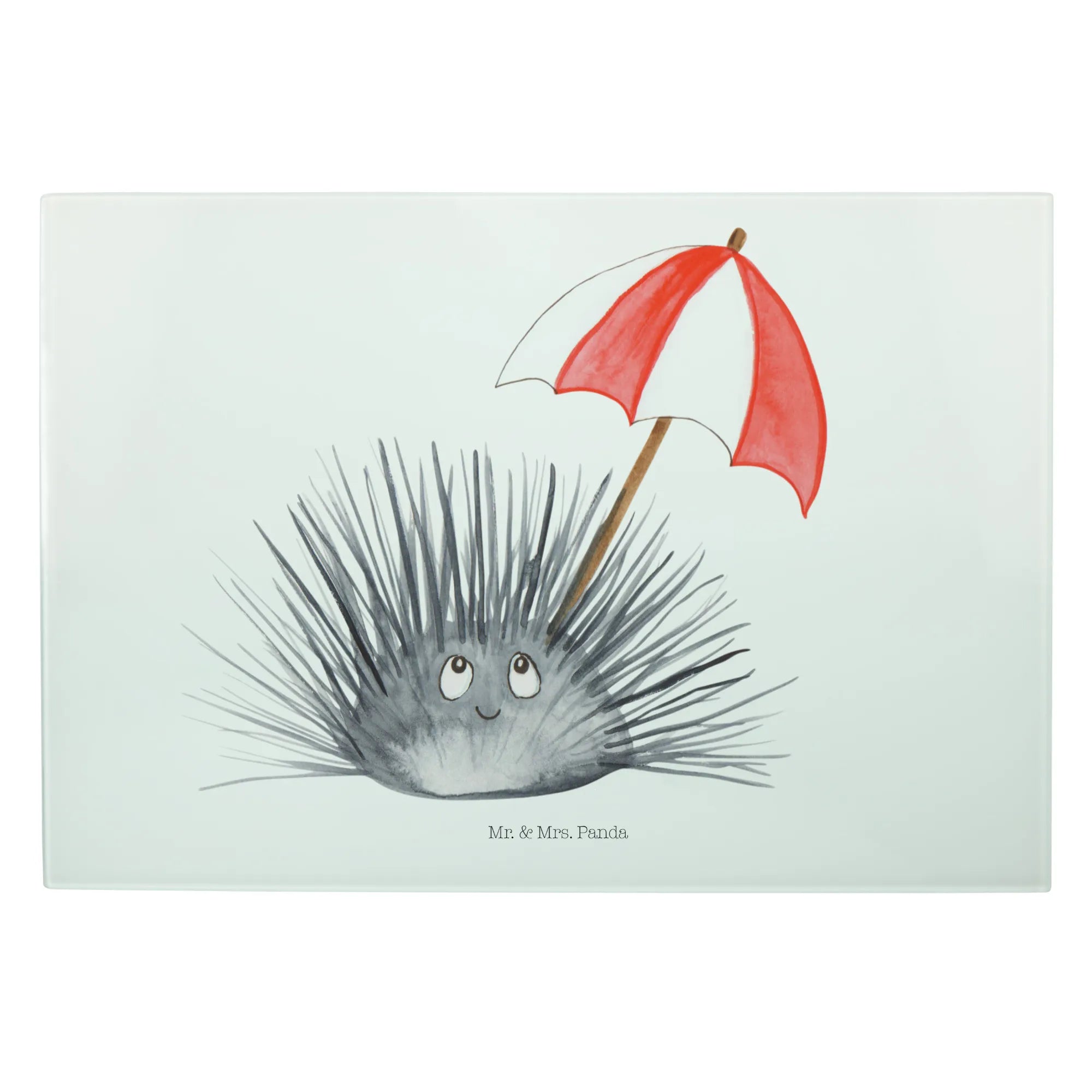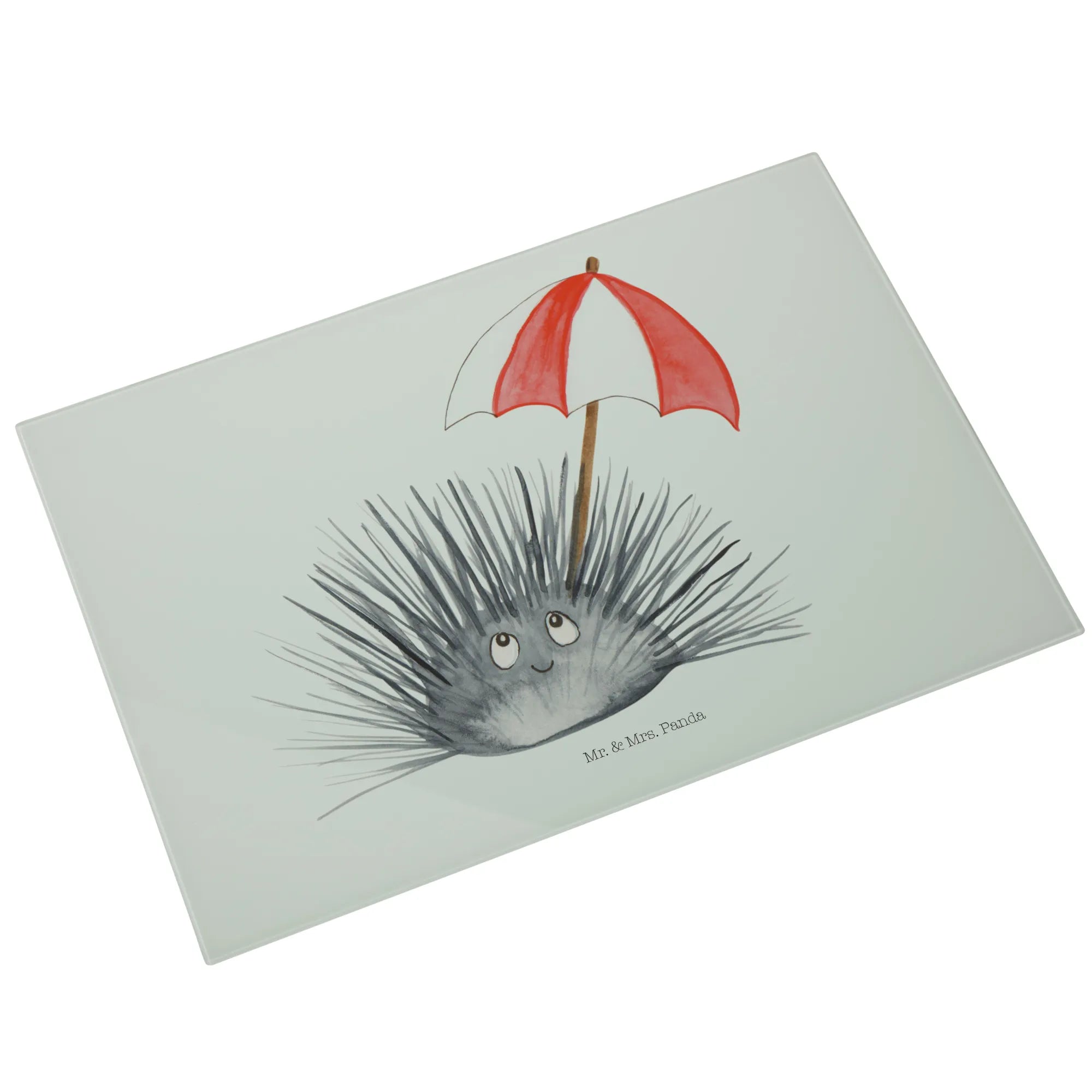 Średnia szklana deska do krojenia Jeżowiec - Medium Glas Schneidbrett - z napisem - biały
