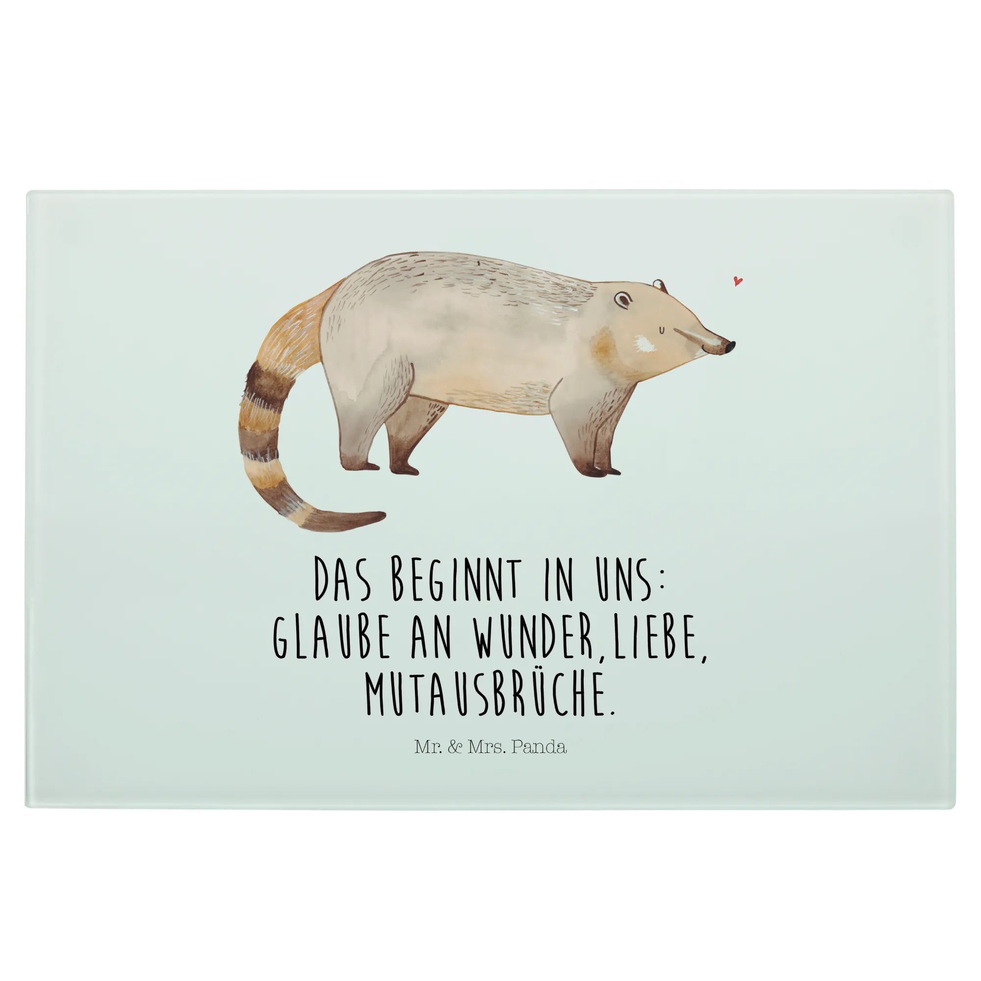 Średnia szklana deska do krojenia Nosacz - Medium Glas Schneidbrett - z napisem - biały