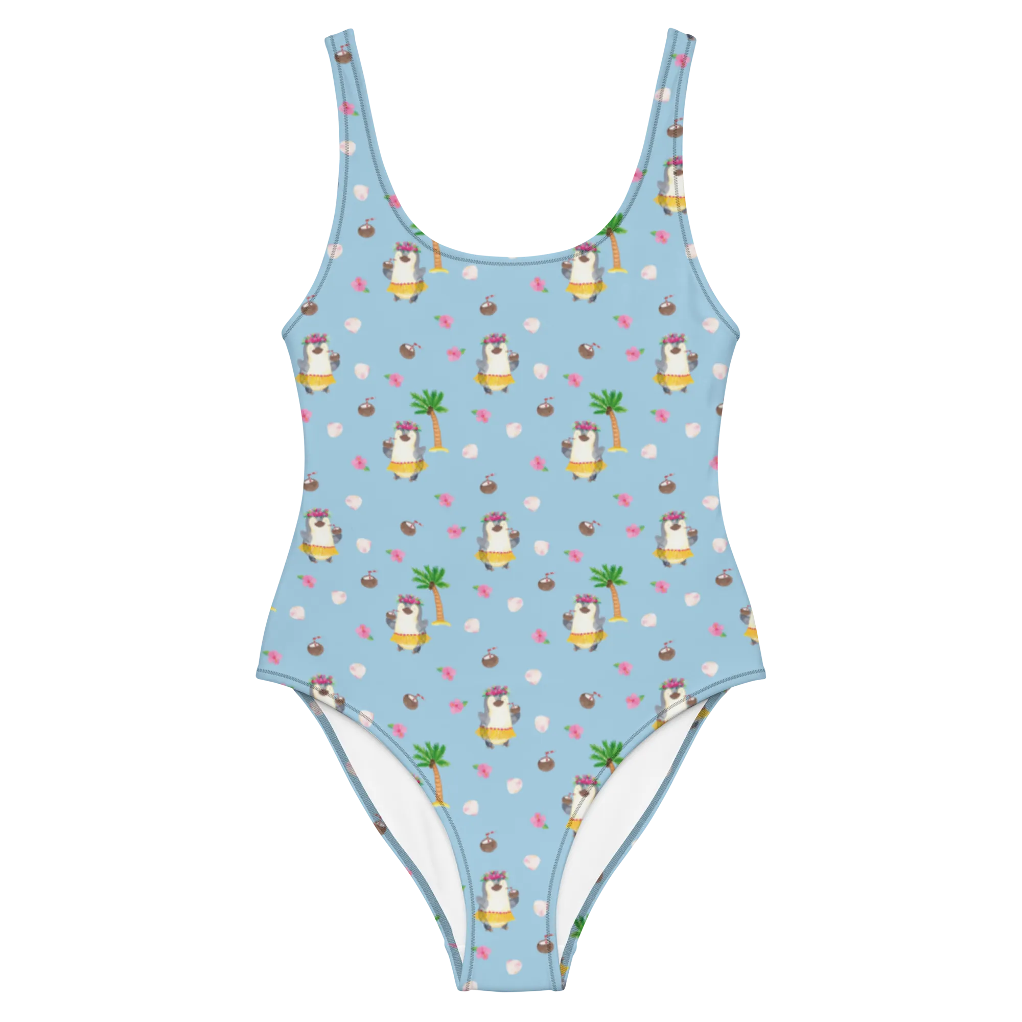 Unser bezaubernder Badeanzug mit dem fröhlichen Pinguin Kokosnuss-Motiv aus der Pinguin - Kollektion ist das perfekte Geschenk für alle, die Sonne, Strand und Spaß lieben!