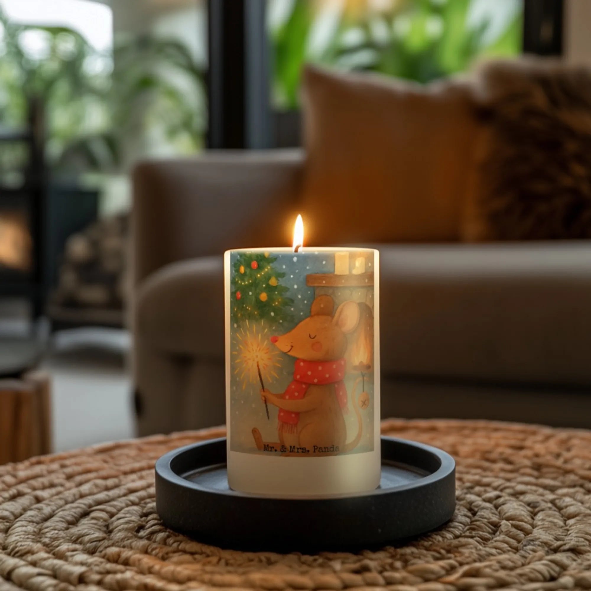 Die Kerze stammt aus unserer liebevoll gestalteten Winter Kollektion, in der jedes Motiv von Mrs. Panda in Aquarell handgezeichnet wurde. Das Motiv Weihnachtsmaus verzaubert mit feinen Details und einer warmen Farbgestaltung und ist perfekt als Weihnachtskerze, Adventskerze oder hübsche Weihnachtsdeko.