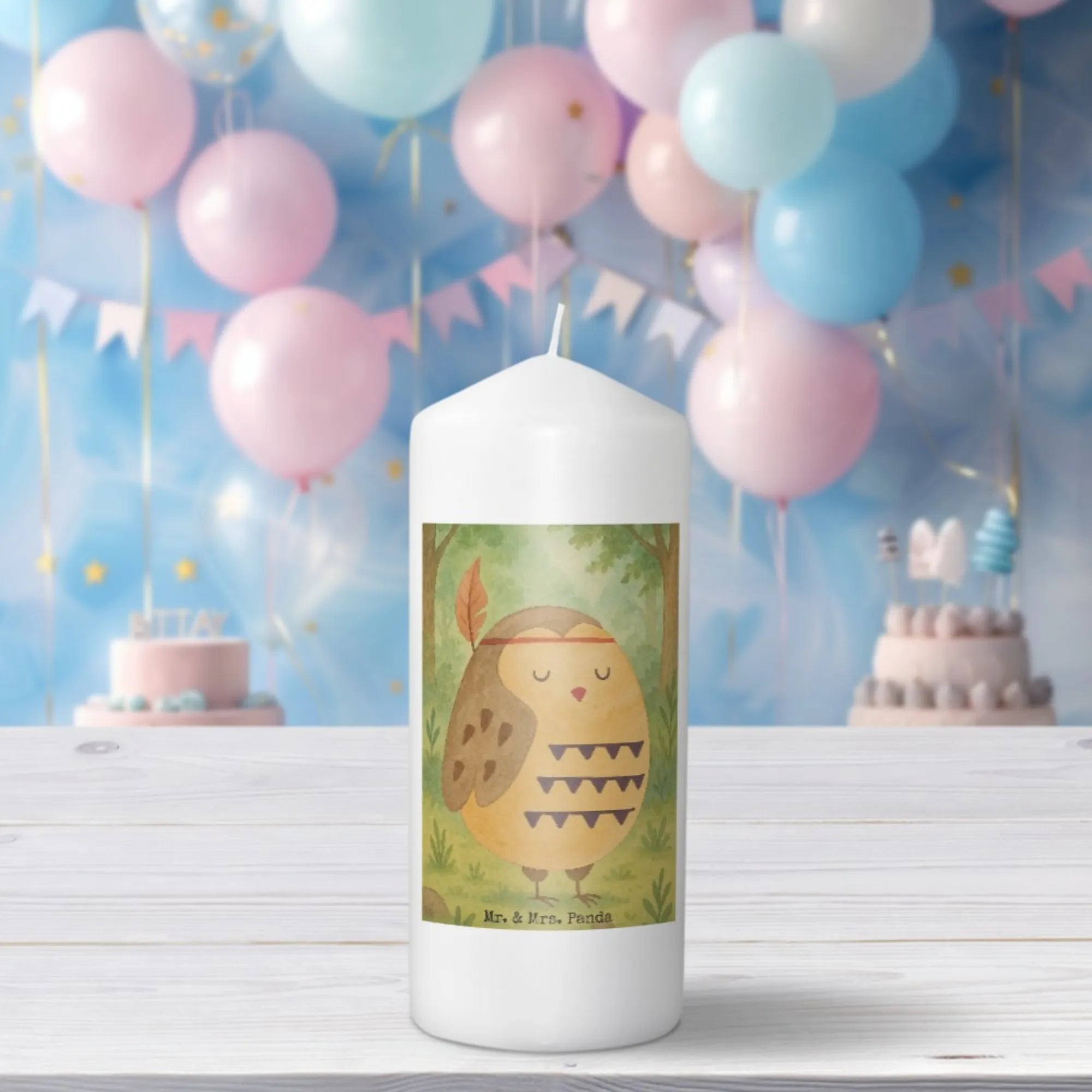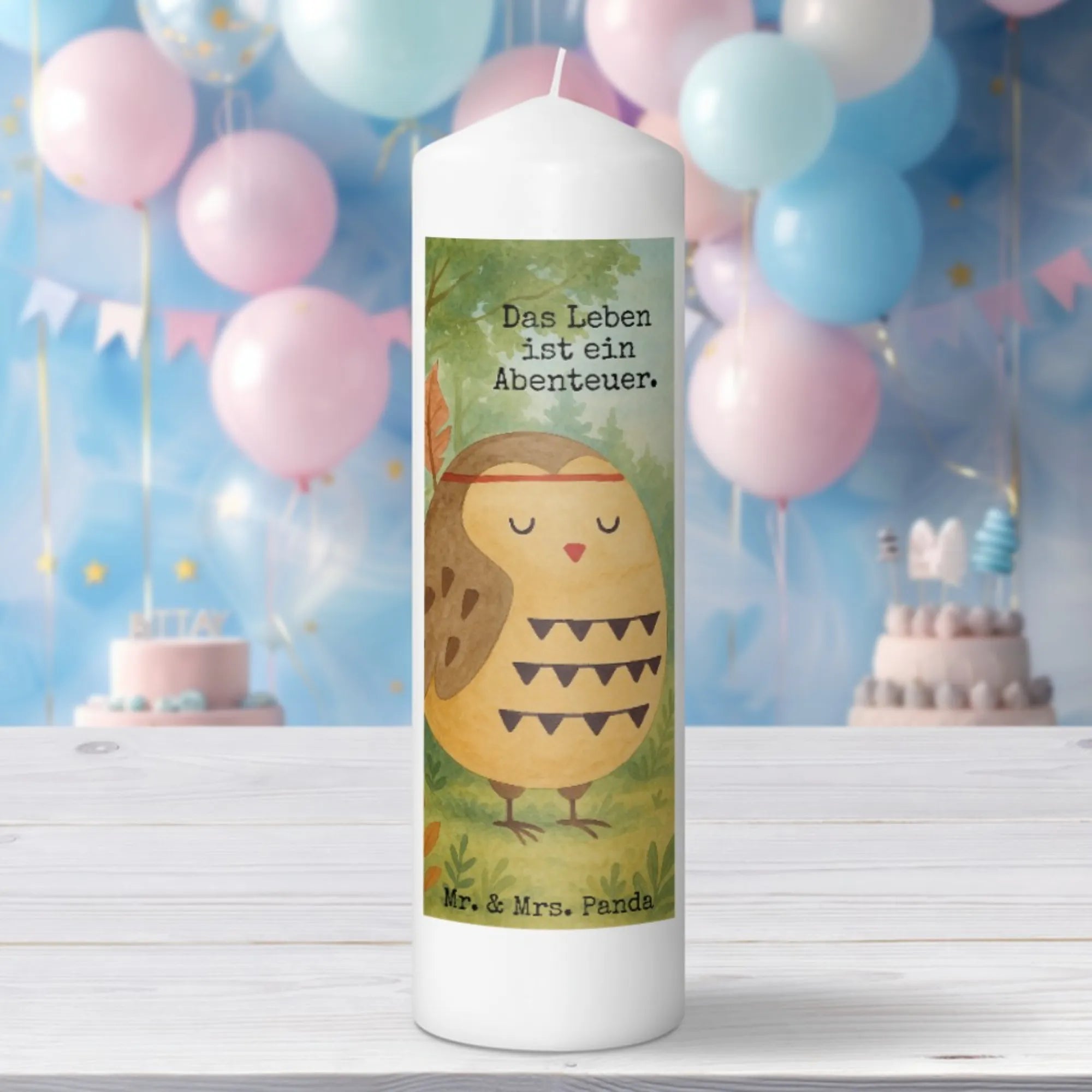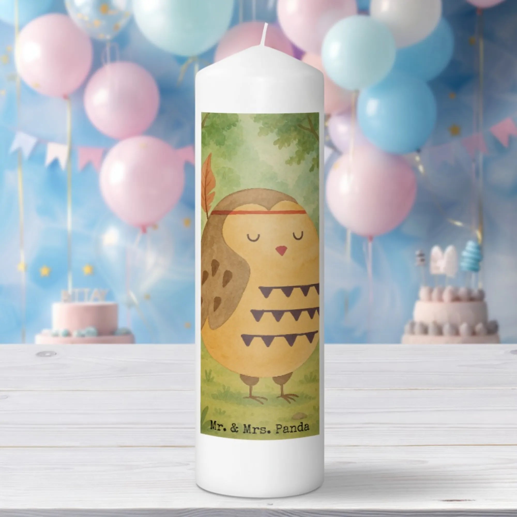 świeca sowa Ozdoba z piór Design - 29 x 8 cm XL - z napisem