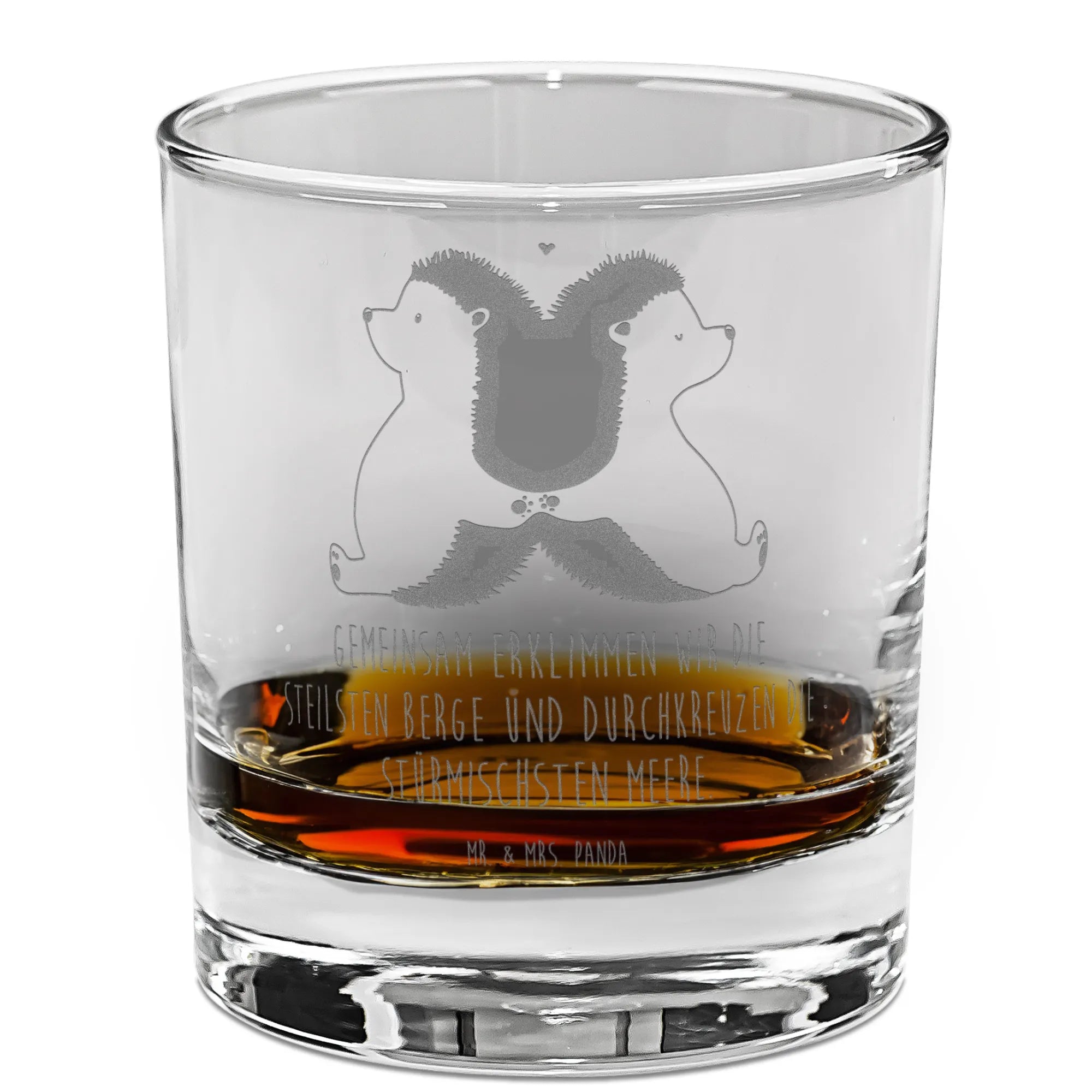 Das wunderschöne Whiskey Glas mit dem händchenhaltenden Igel-Motiv von Mr. & Mrs. Panda ist das perfekte Geschenk für alle Liebenden! Egal ob zum Jahrestag, zur Verlobung oder zur Hochzeit, dieses Glas strahlt pure Liebe und Zuneigung aus.