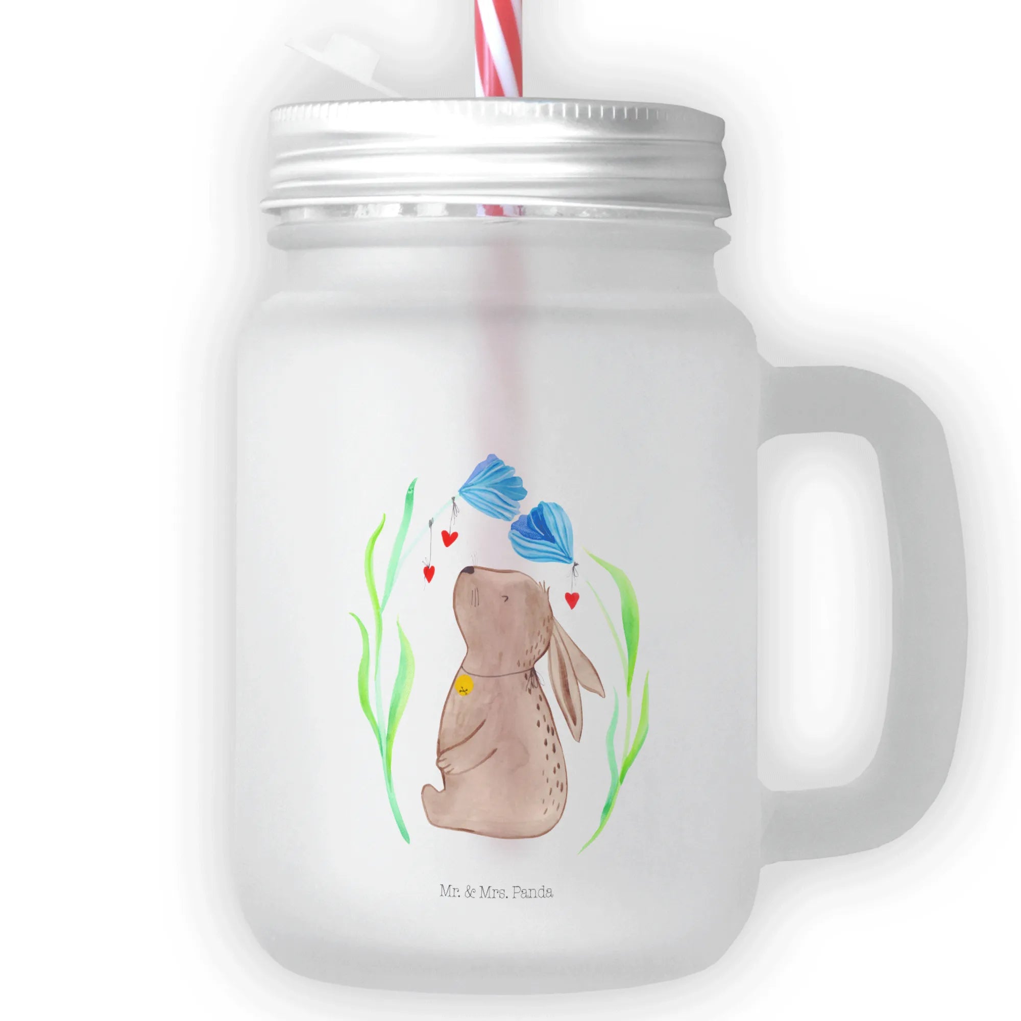 Szklanka Mason Jar królik kwiat - z napisem
