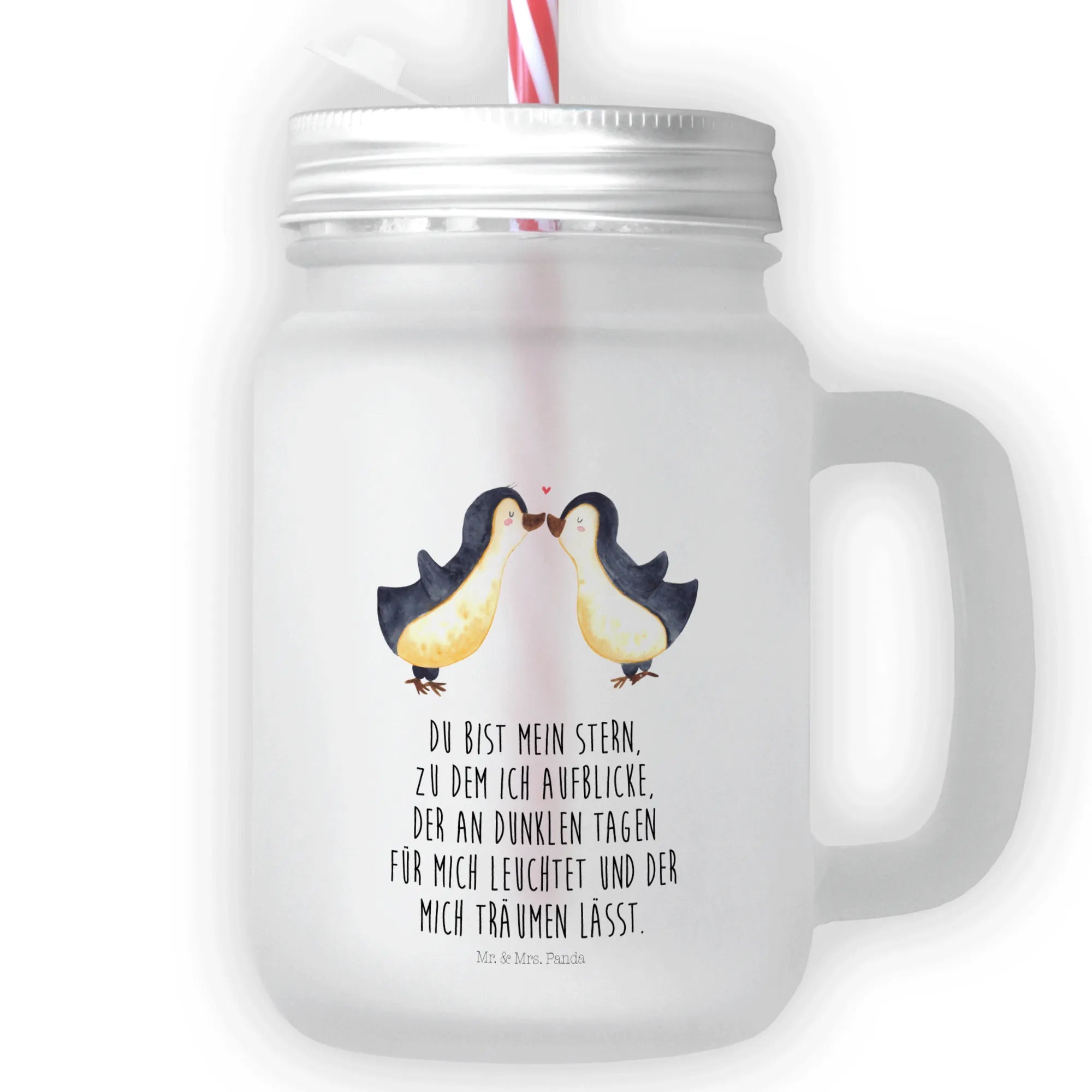 Szklanka Mason Jar Pingwin Miłość - z napisem