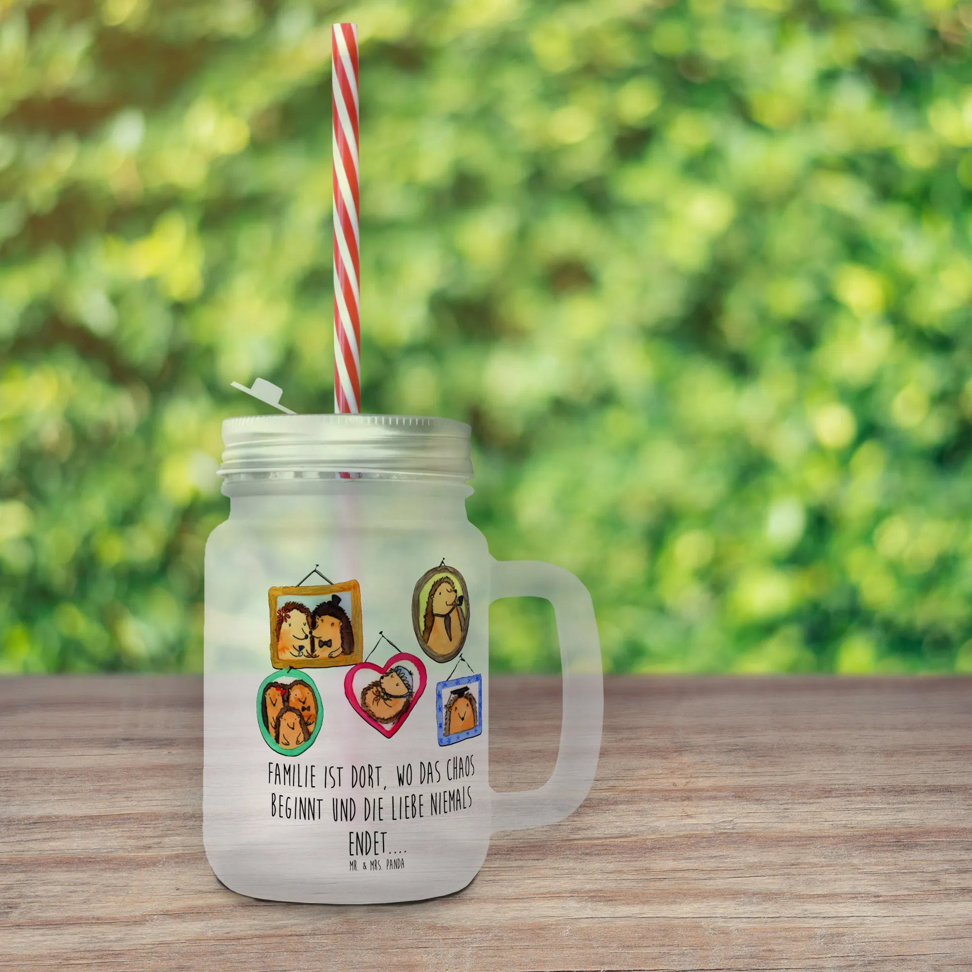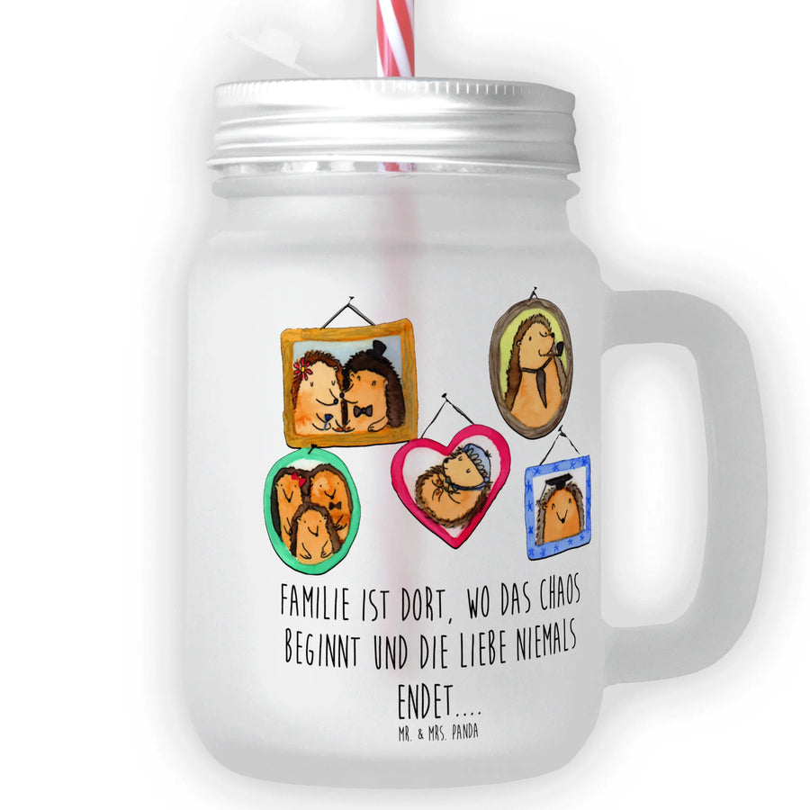 Szklanka Mason Jar Rodzina jeży - z napisem