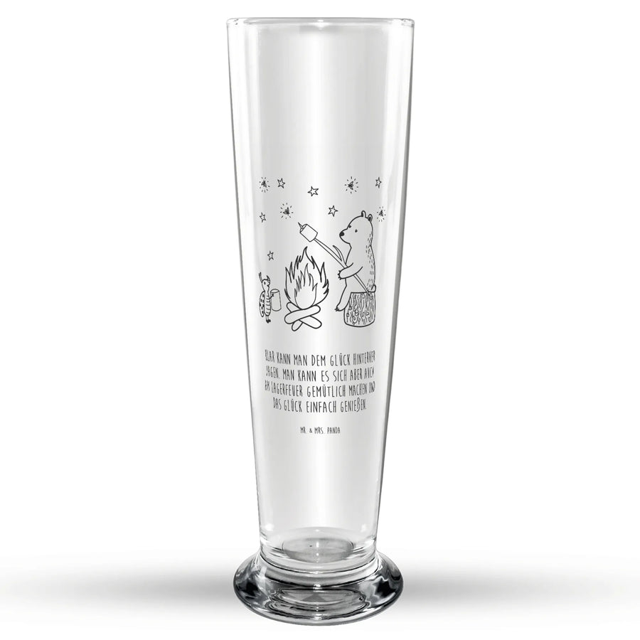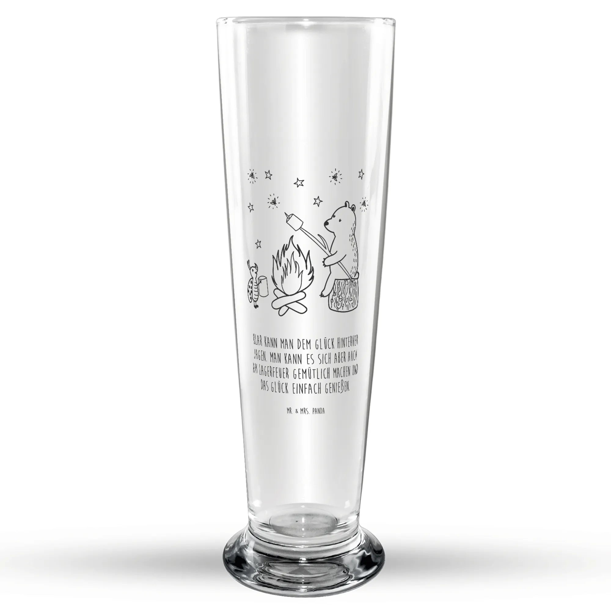 Das bezaubernde Design zeigt einen fröhlichen Bären, der auf einem Baumstumpf sitzt und ein Marshmallow über dem Lagerfeuer röstet, während ein Marienkäfer neben ihm auf einem Eimer lehnt. Dazu der Slogan: "Klar kann man dem Glück hinterher jagen. Man kann es sich aber auch am Lagerfeuer gemütlich machen und das Glück einfach genießen." Diese Botschaft macht das Bierglas besonders und lädt dazu ein, die einfachen Freuden des Lebens zu genießen.