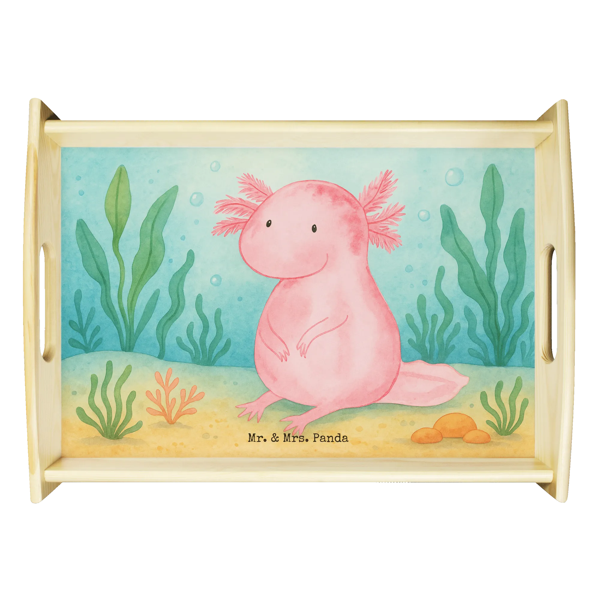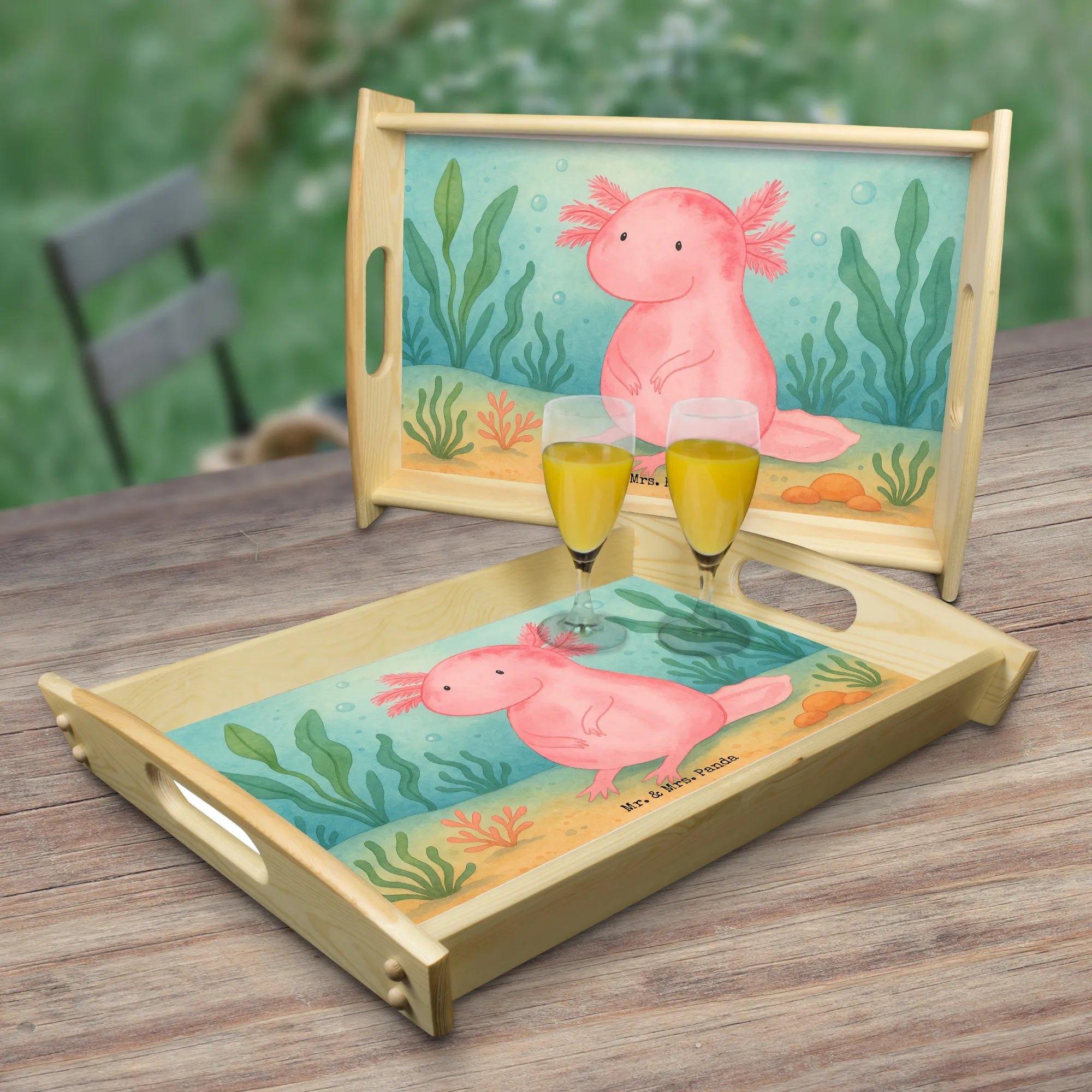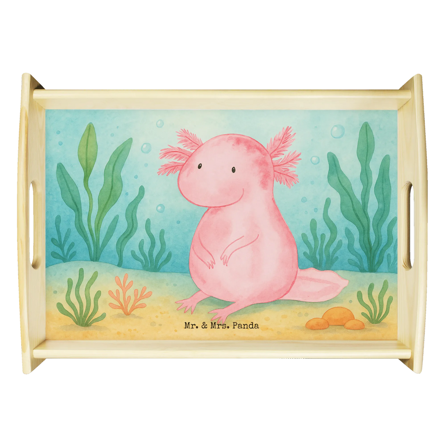 Taca serwisowa aksolotl null Design Serviertablett, Tablett, Holztablett, Küchentablett, Dekotablett, Frühstückstablett, Axolotl, Molch, Axolot, vergnügt, fröhlich, zufrieden, Lebensstil, Weisheit, Lebensweisheit, Liebe, Freundin