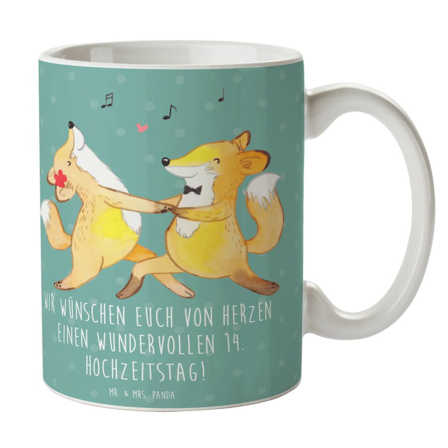 Wenn du auf der Suche nach einem besonderen Geschenk zur Hochzeit oder einem Jahrestag bist, muss die Tasse zum 14. Hochzeitstag von Mr. & Mrs. Panda ganz oben auf deiner Liste stehen! Kaffeetasse, Kaffeebecher, Teetasse – egal wie du sie nennst, eines ist sicher: Sie bringt Freude und Liebe in jeden Haushalt.