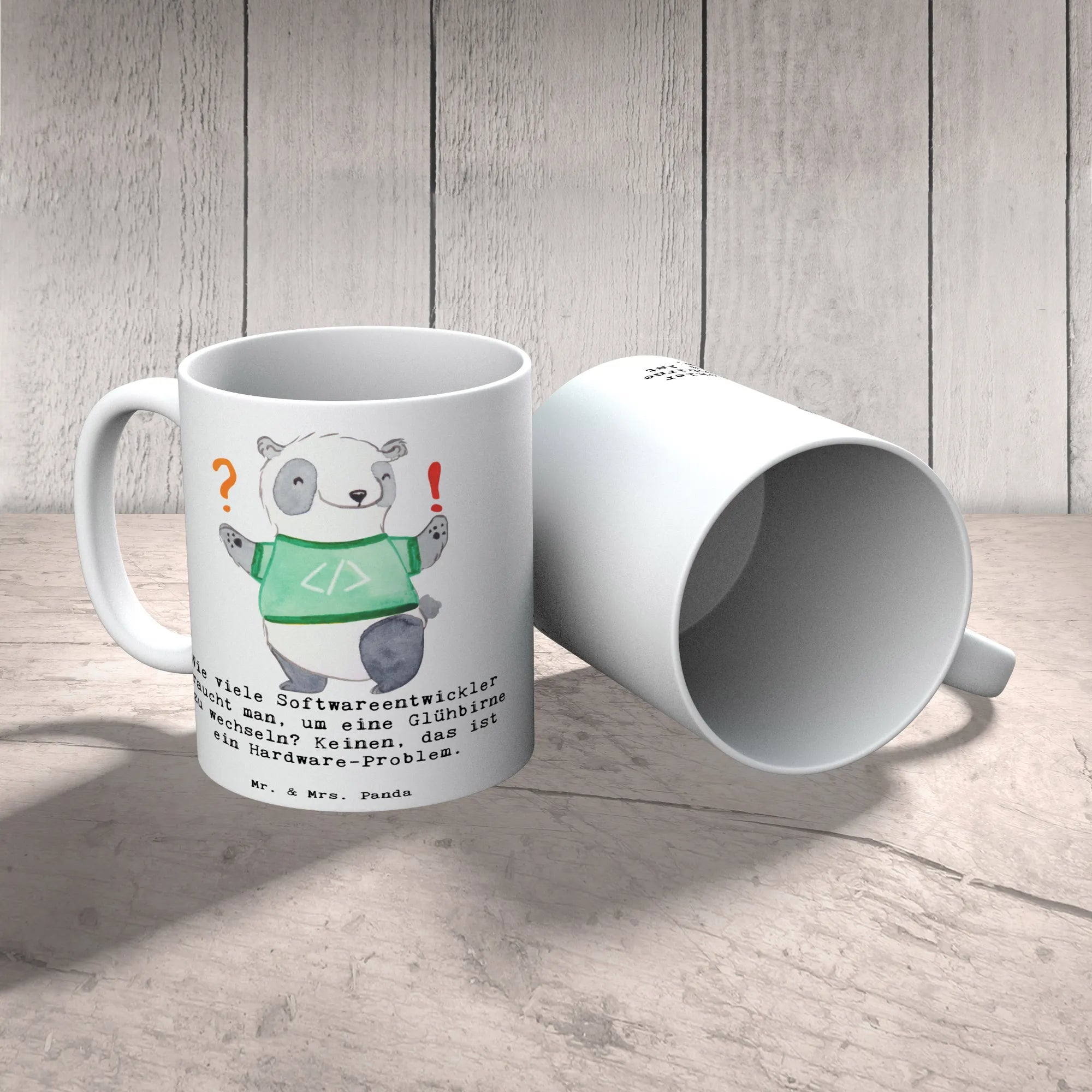 Du bist auf der Suche nach dem perfekten Geschenk für einen Softwareentwickler? Dann ist die bezaubernde Tasse von Mr. & Mrs. Panda genau das Richtige! Diese wunderschöne, spülmaschinenfeste Keramiktasse ist nicht nur ein praktischer Begleiter für den Lieblingskaffee oder -tee, sondern auch ein herzlicher Ausdruck von Wertschätzung für die kreative Branche der Softwareentwicklung. Mit dem liebevollen Spruch: "Wie viele Softwareentwickler braucht man, um eine Glühbirne zu wechseln? Keinen, das ist ein Hardware-Problem." bringt diese Tasse garantiert ein Lächeln auf dein Gesicht und das deiner Kollegen.