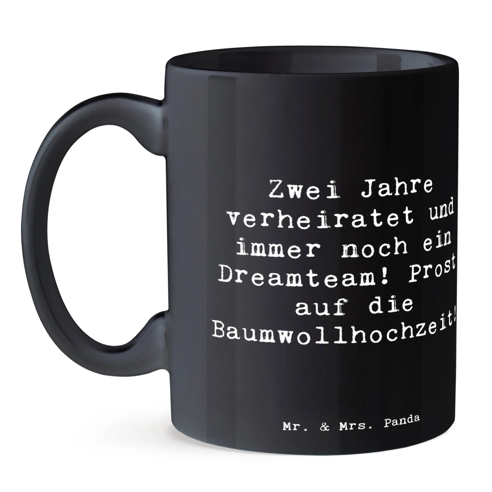 Entdecke die perfekte Tasse für den 2. Hochzeitstag! Diese wunderschöne Keramiktasse von Mr. & Mrs. Panda bringt Freude und Stil auf deinen Tisch. Mit dem herzlichen Spruch 'Zwei Jahre verheiratet und immer noch ein Dreamteam! Prost auf die Baumwollhochzeit!' ist sie das ideale Geschenk, um die Liebe und das Glück des Paares zu feiern.