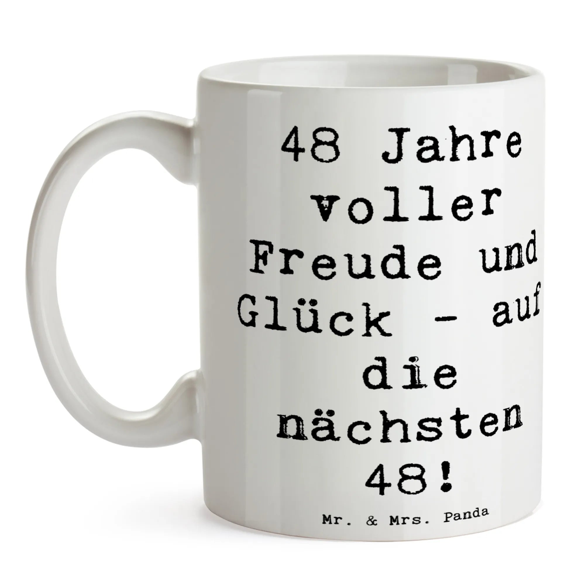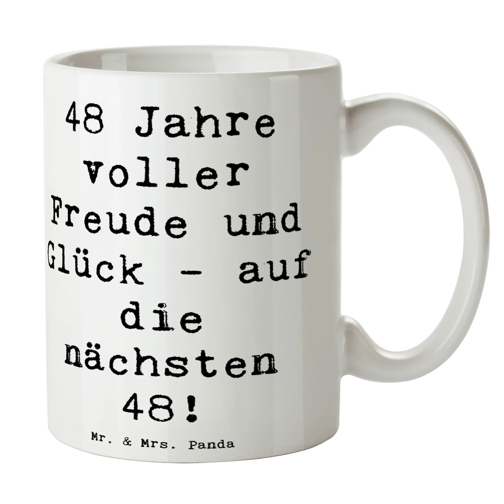 Die wunderschöne Kaffeetasse von Mr. & Mrs. Panda ist das perfekte Geschenk zum 48. Geburtstag! Egal, ob du diese Tasse für einen Freund, ein Familienmitglied oder dich selbst kaufst, sie wird garantiert ein Lächeln ins Gesicht zaubern. Mit dem liebevollen Spruch "48 Jahre voller Freude und Glück - auf die nächsten 48!" feierst du nicht nur den Anlass, sondern schaffst auch Erinnerungen, die bleiben.