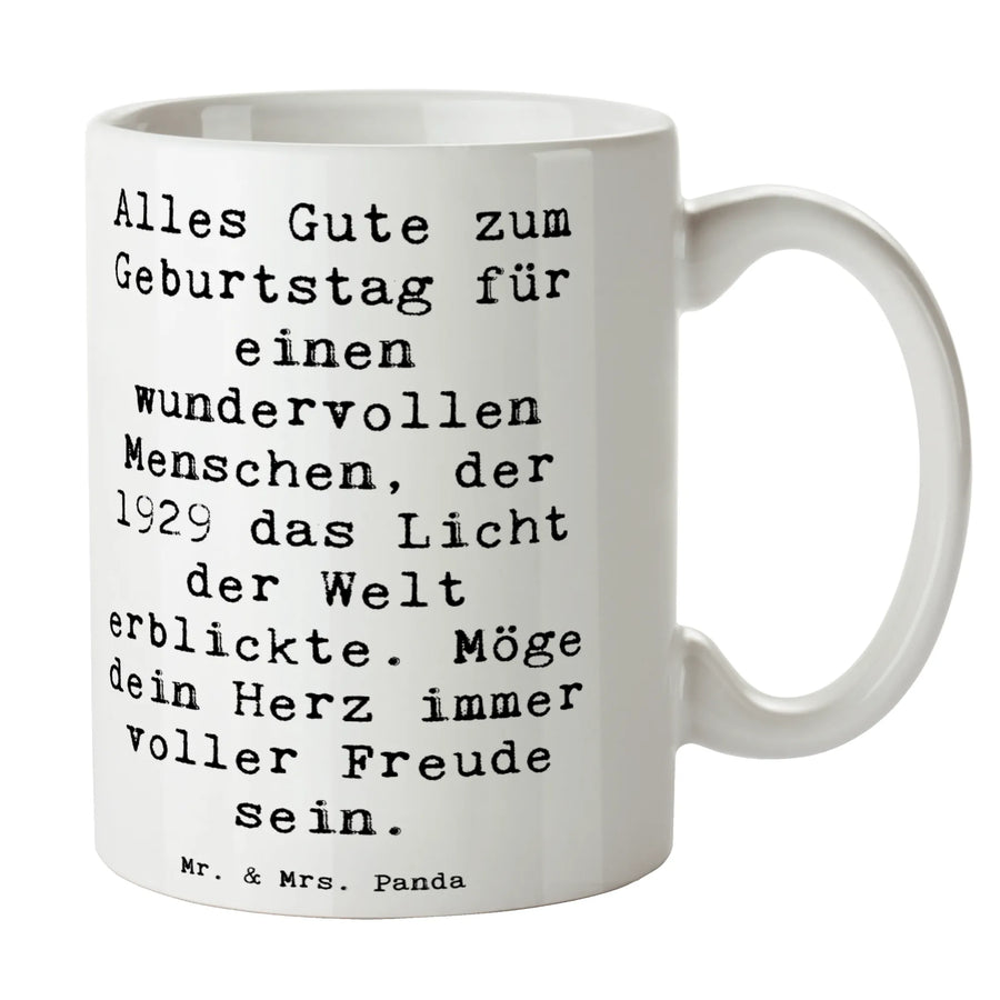 Tasse Spruch Alles Gute zum Geburtstag für einen wundervollen Menschen, der 1929 das Licht der Welt erblickte. Möge dein Herz immer voller Freude sein. Tasse, Bürotasse, Tasse mit Zitaten, Keramiktasse, Geschenktasse, Tasse mit Motiven, Kaffeetasse, Teetasse, Porzellantasse, Geburtstag, Geburtstagsgeschenk, Geschenk