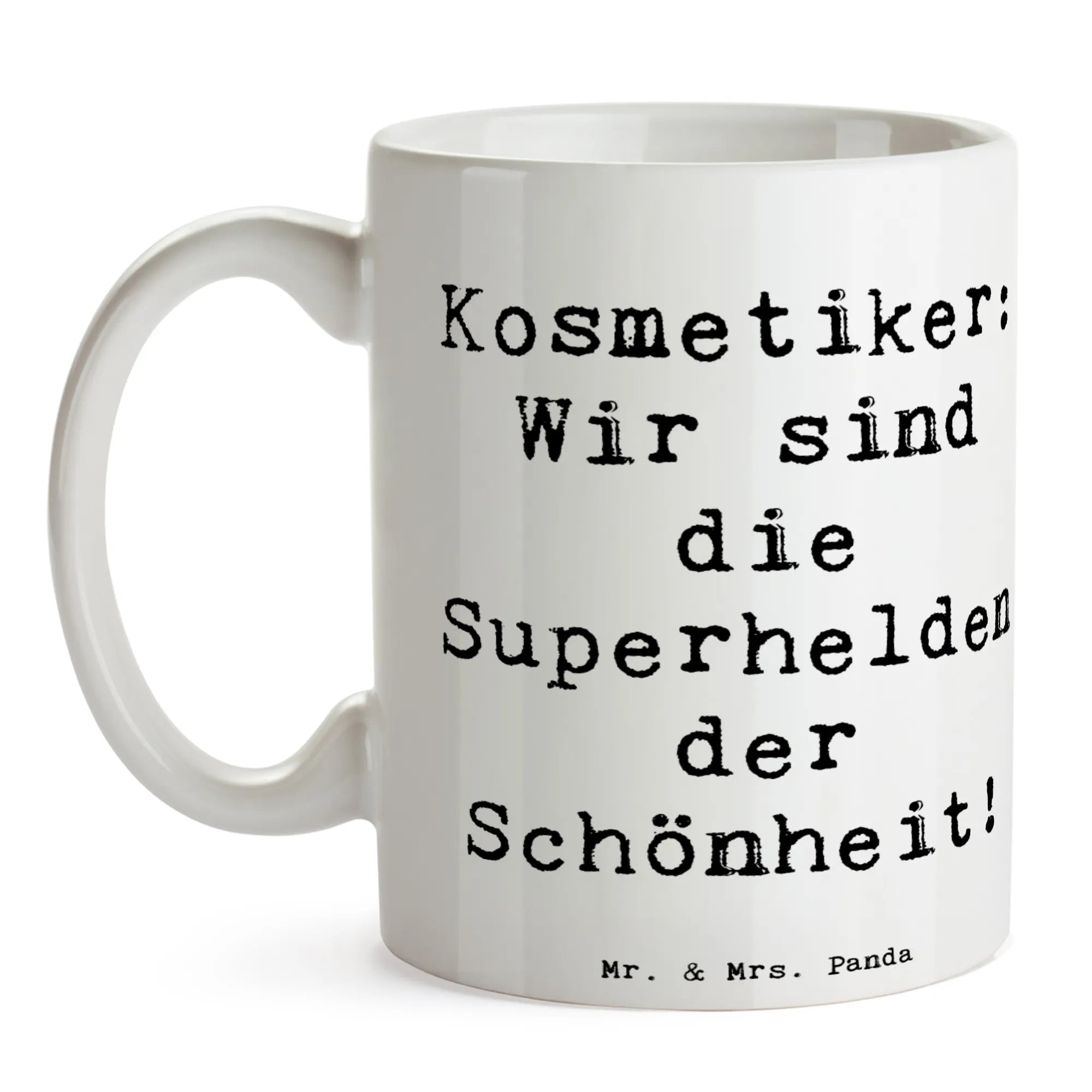 Tasse Spruch Kosmetiker: Wir sind die Superhelden der Schönheit! - Weiß