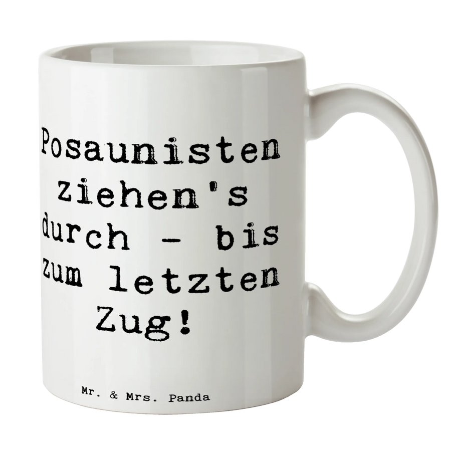 "Posaunisten ziehen's durch - bis zum letzten Zug!" Dieser Spruch auf der Tasse bringt jedem Musiker ein Lächeln ins Gesicht und erinnert daran, dass das Musizieren nicht nur ein Hobby, sondern eine Leidenschaft ist.